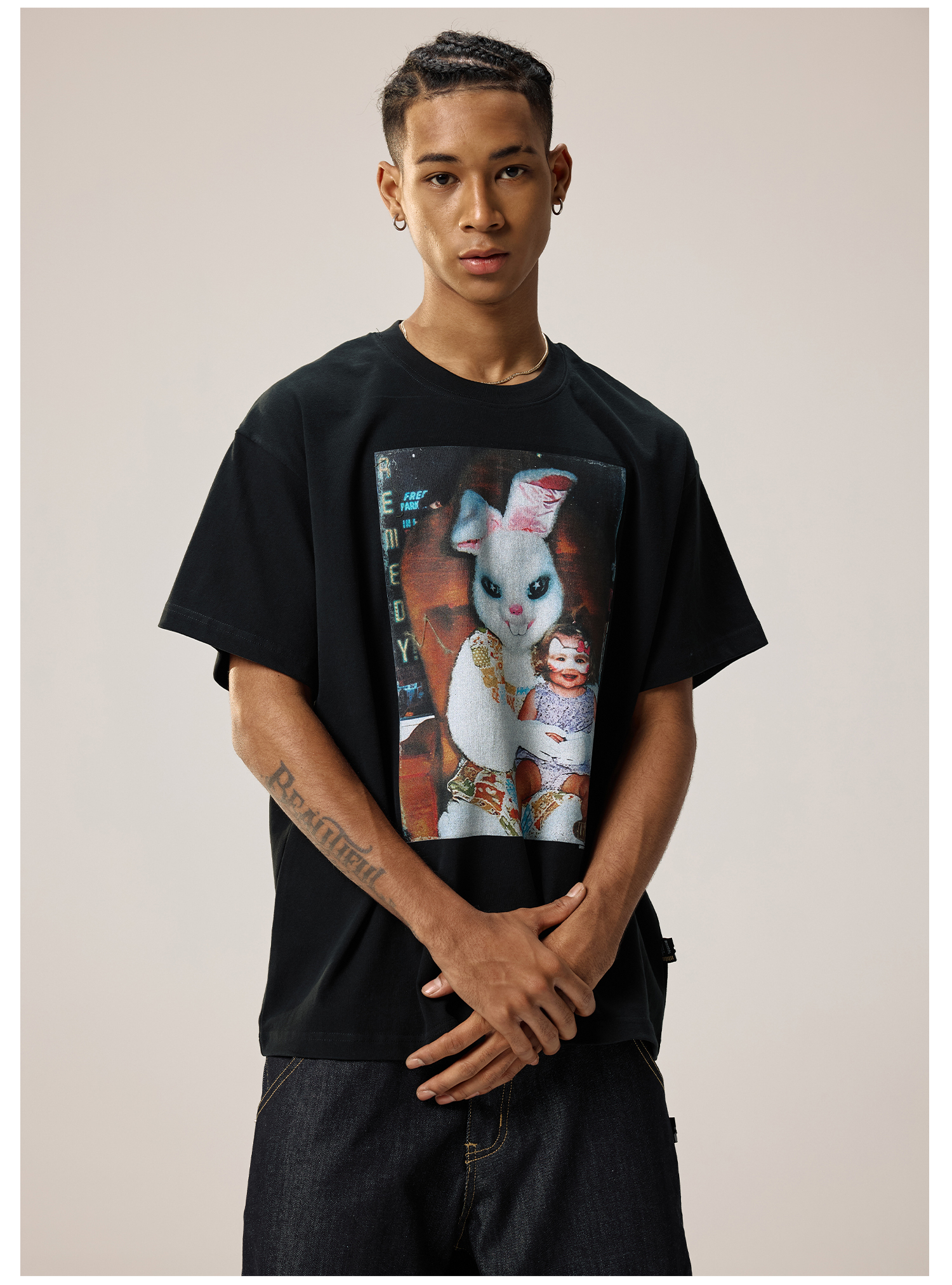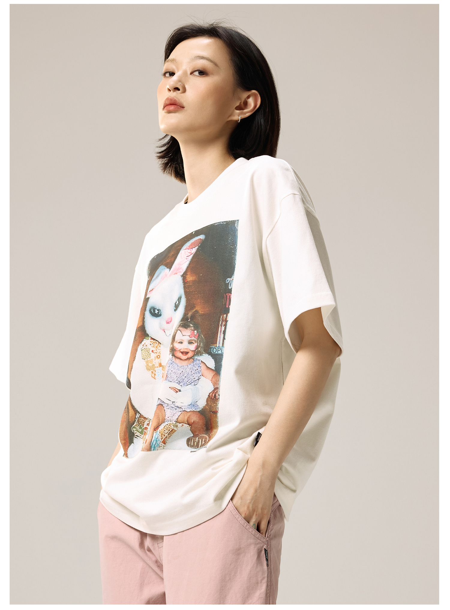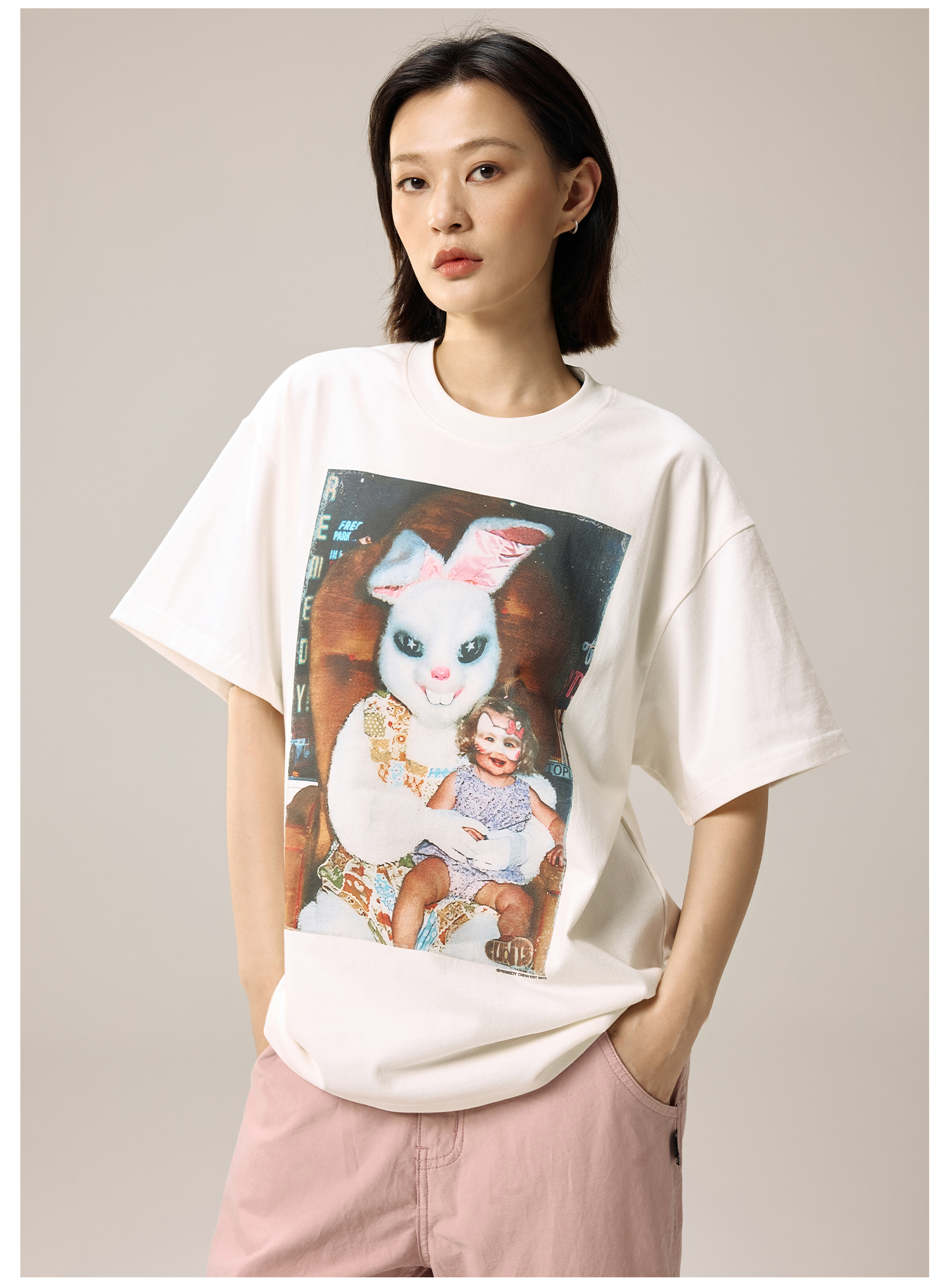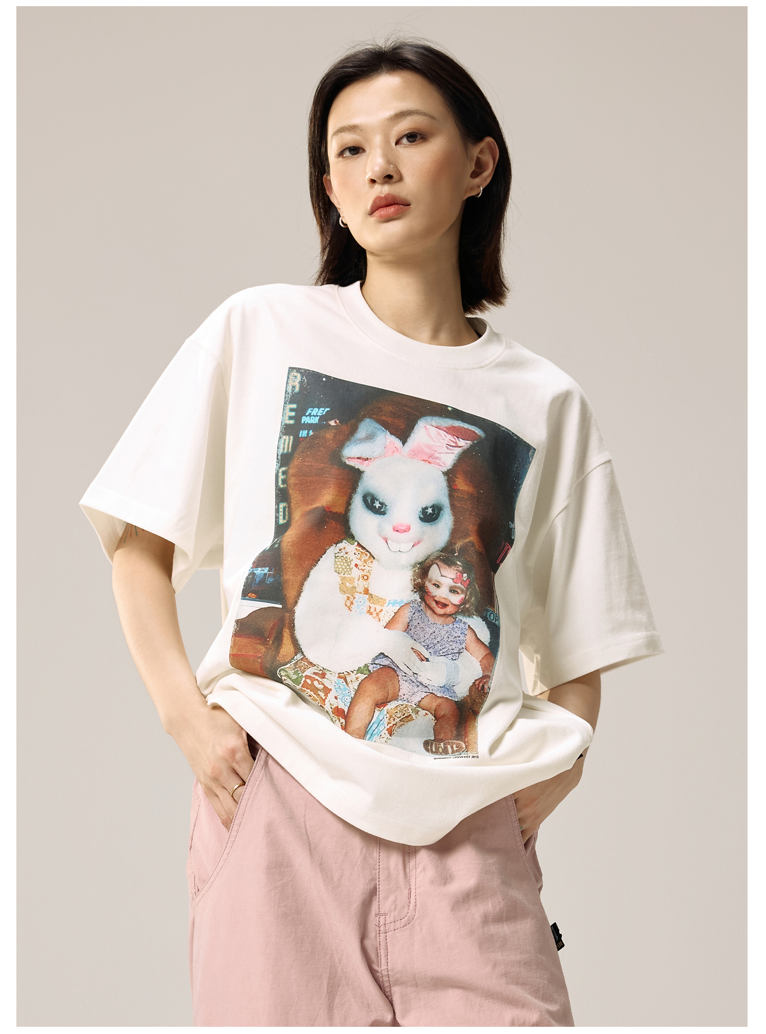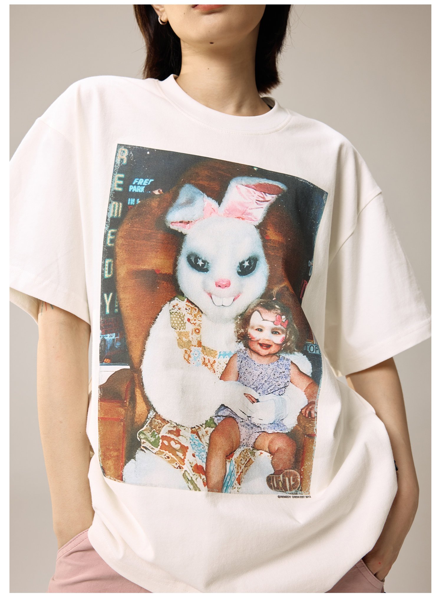 Remedy Tide Brand Rabbit Print Crew Neck Loose Short Tee