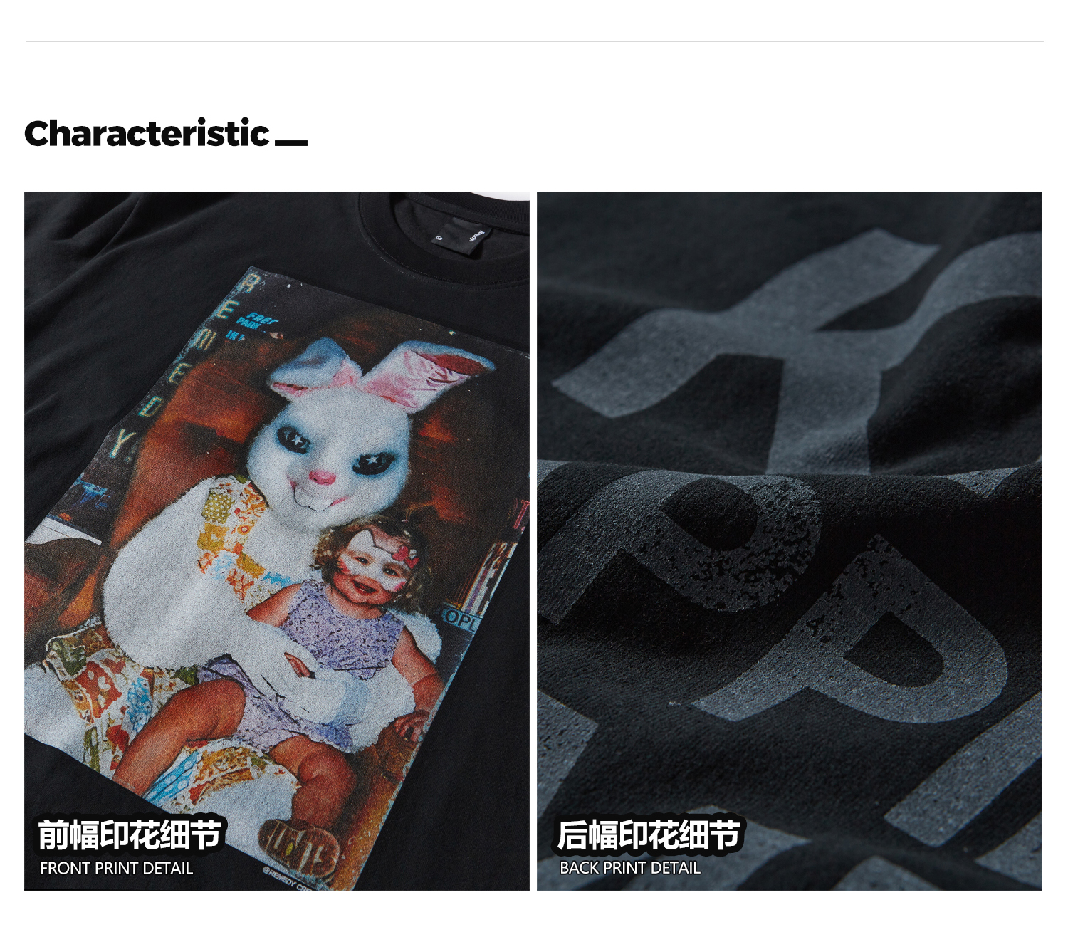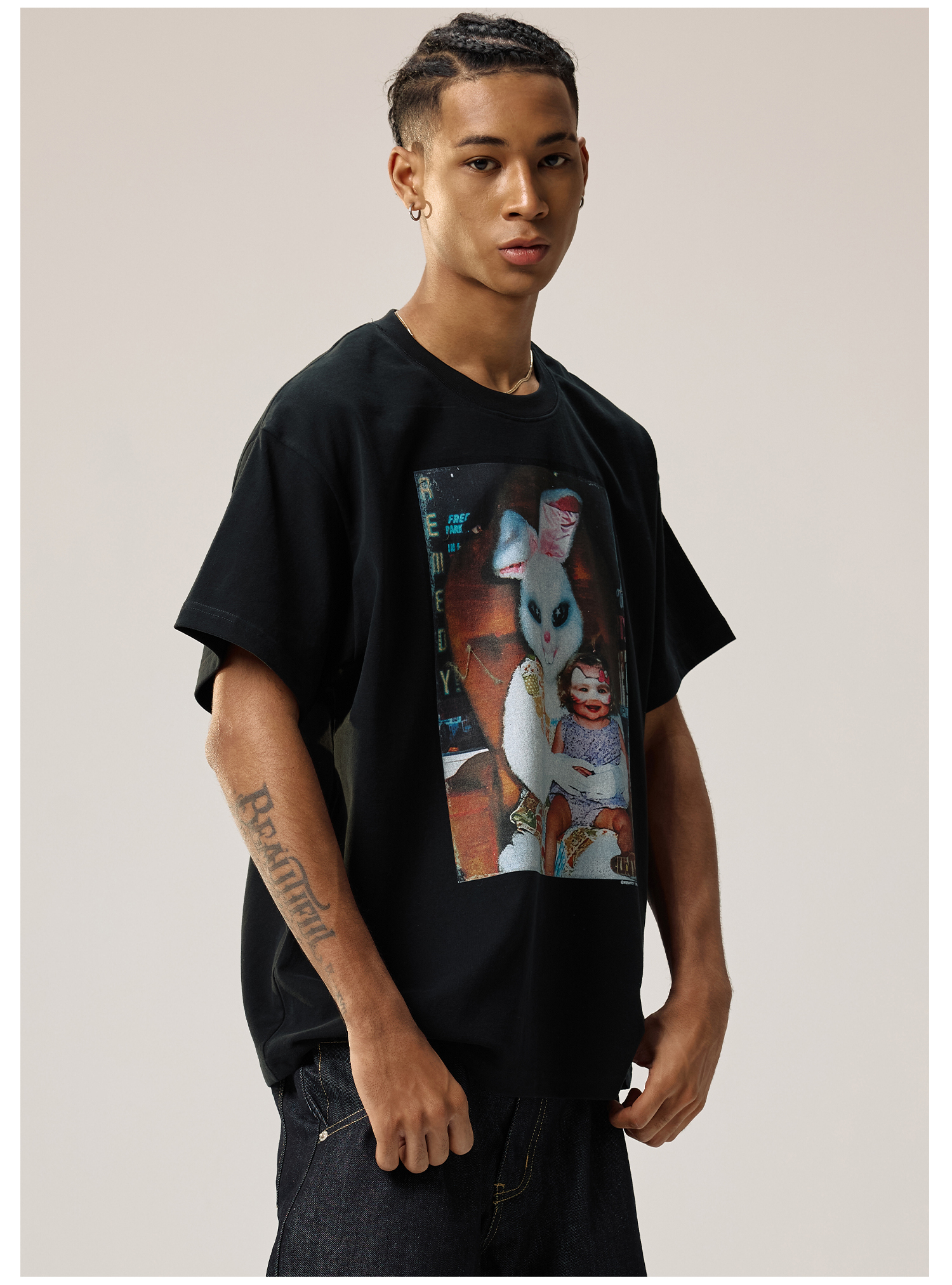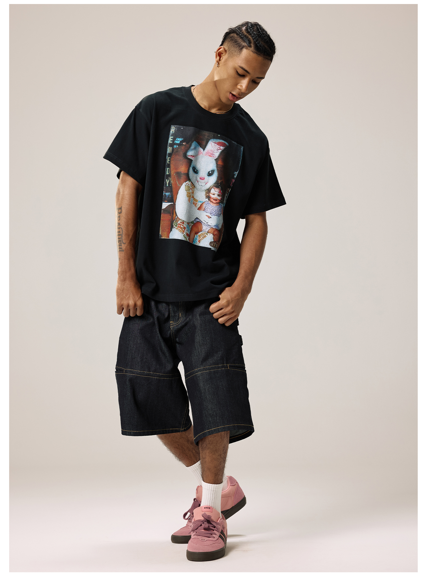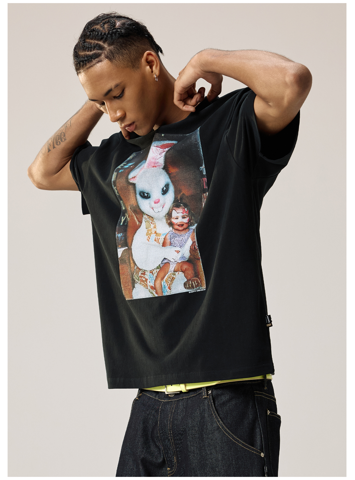 Remedy Tide Brand Rabbit Print Crew Neck Loose Short Tee