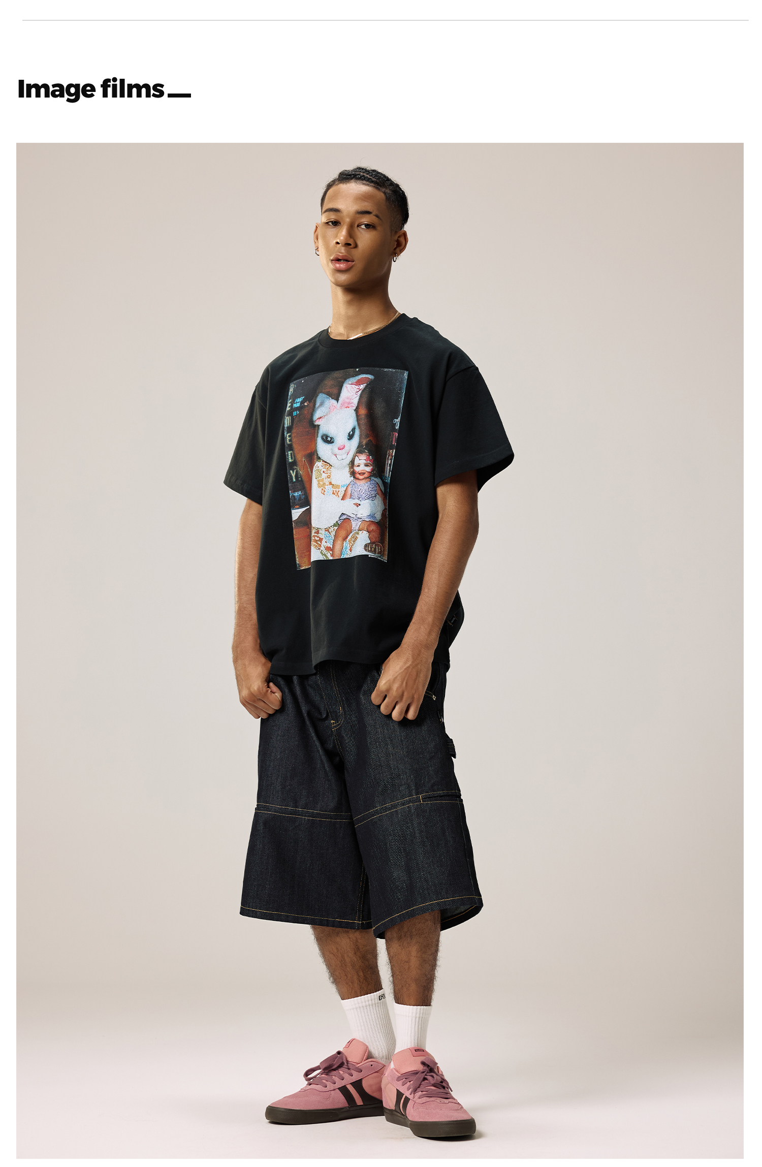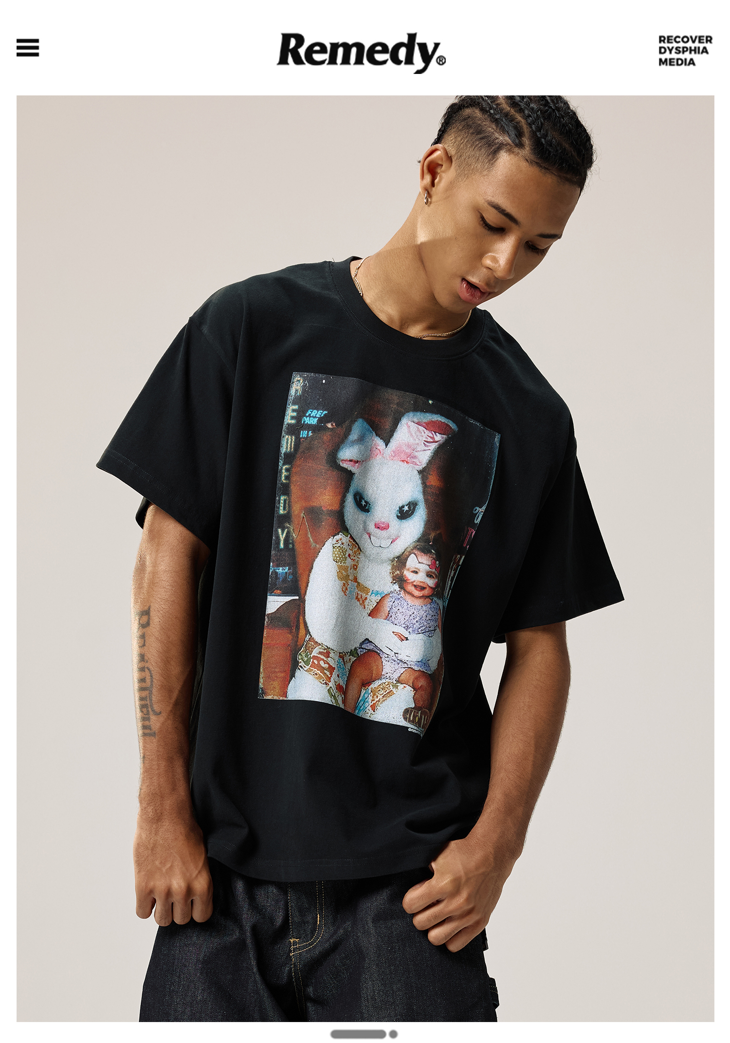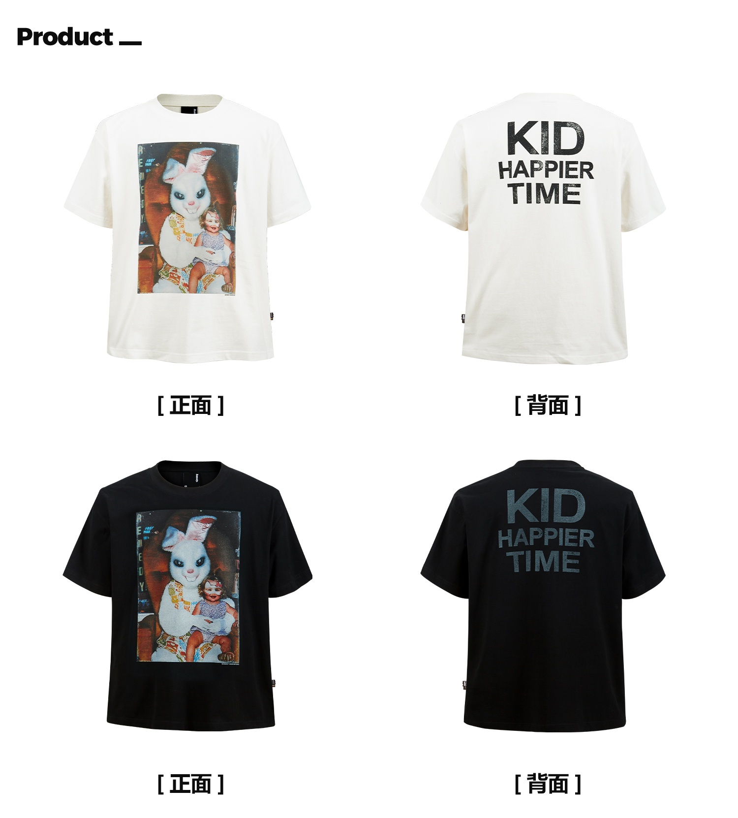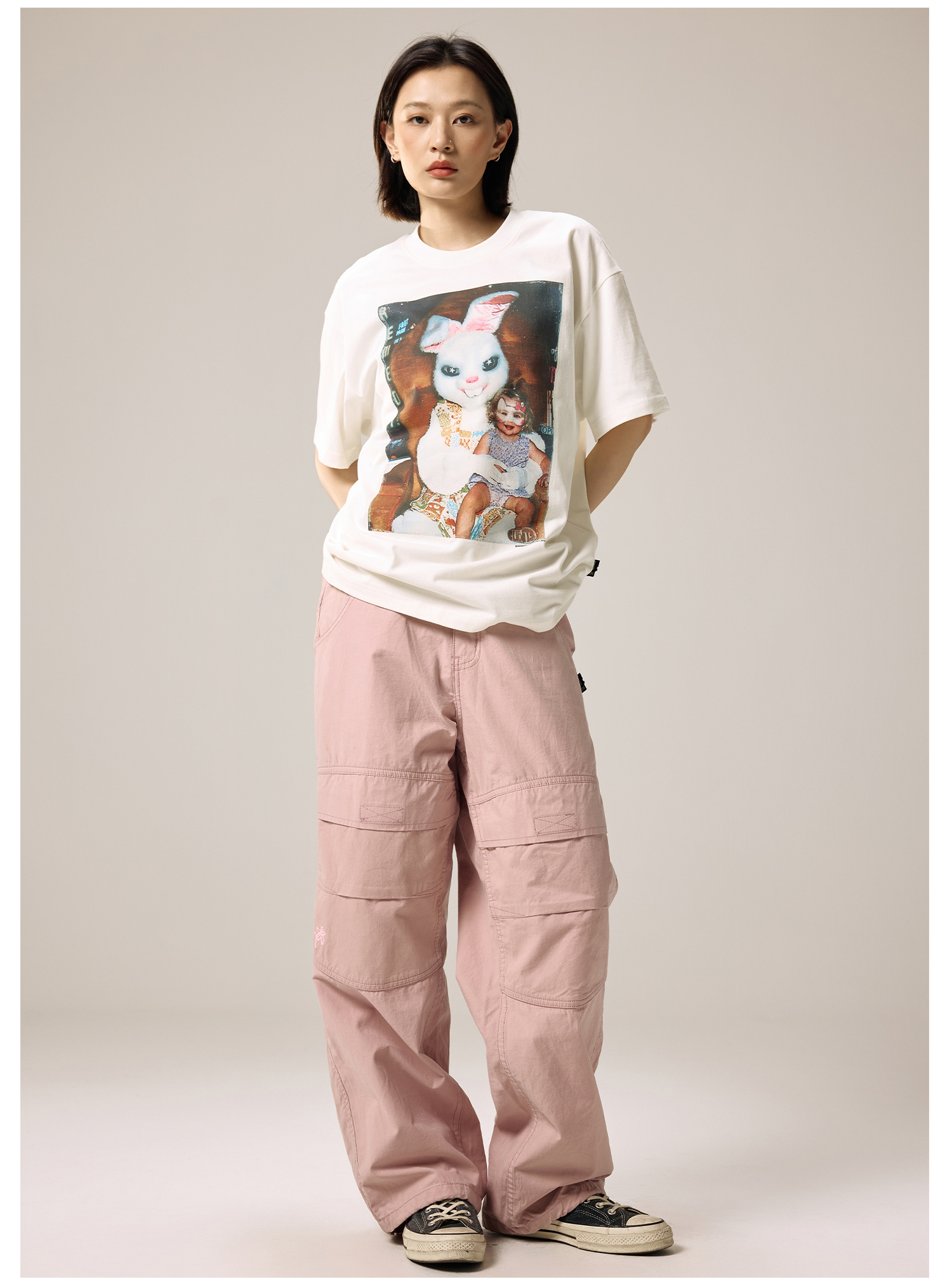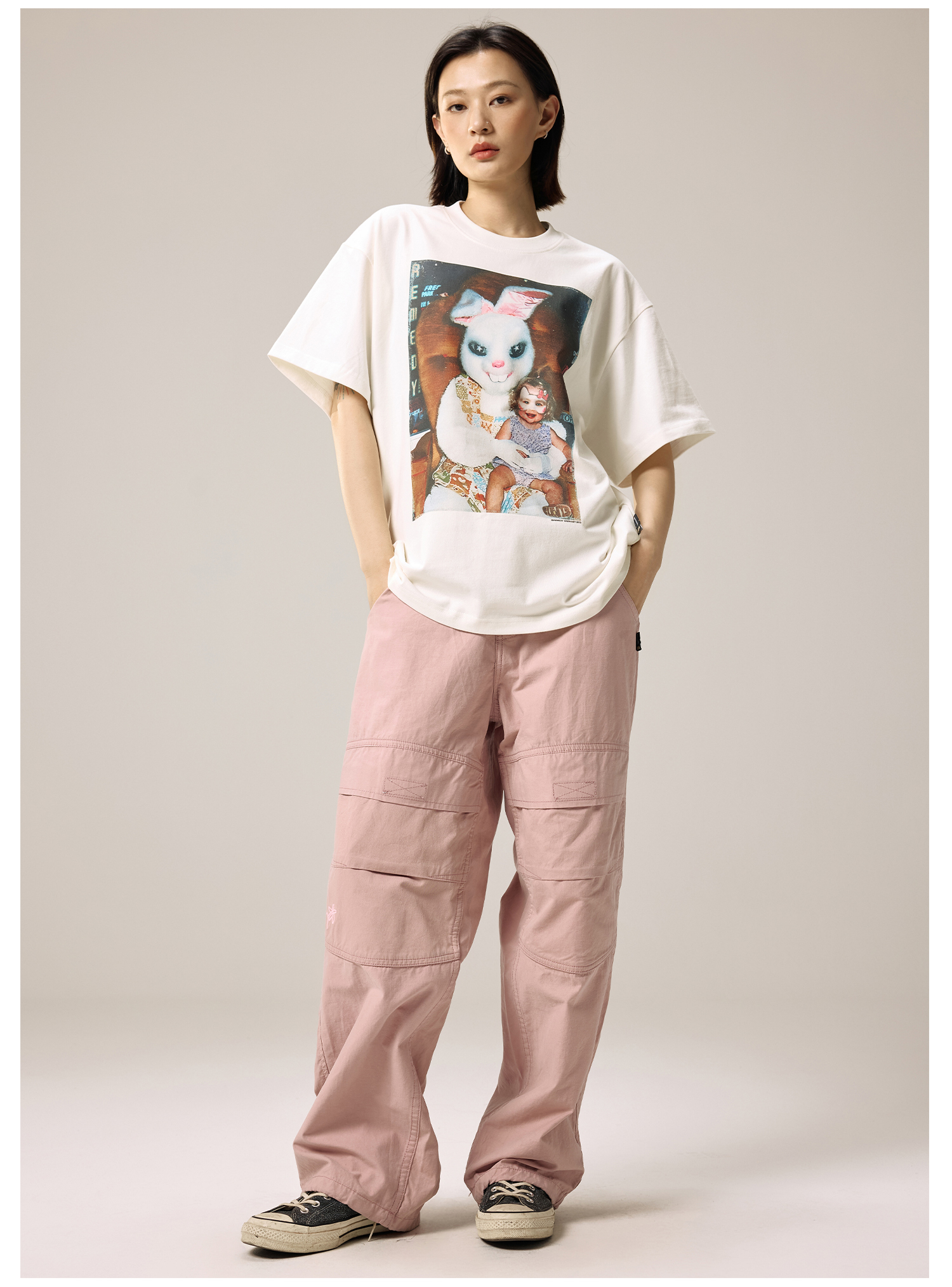 Remedy Tide Brand Rabbit Print Crew Neck Loose Short Tee