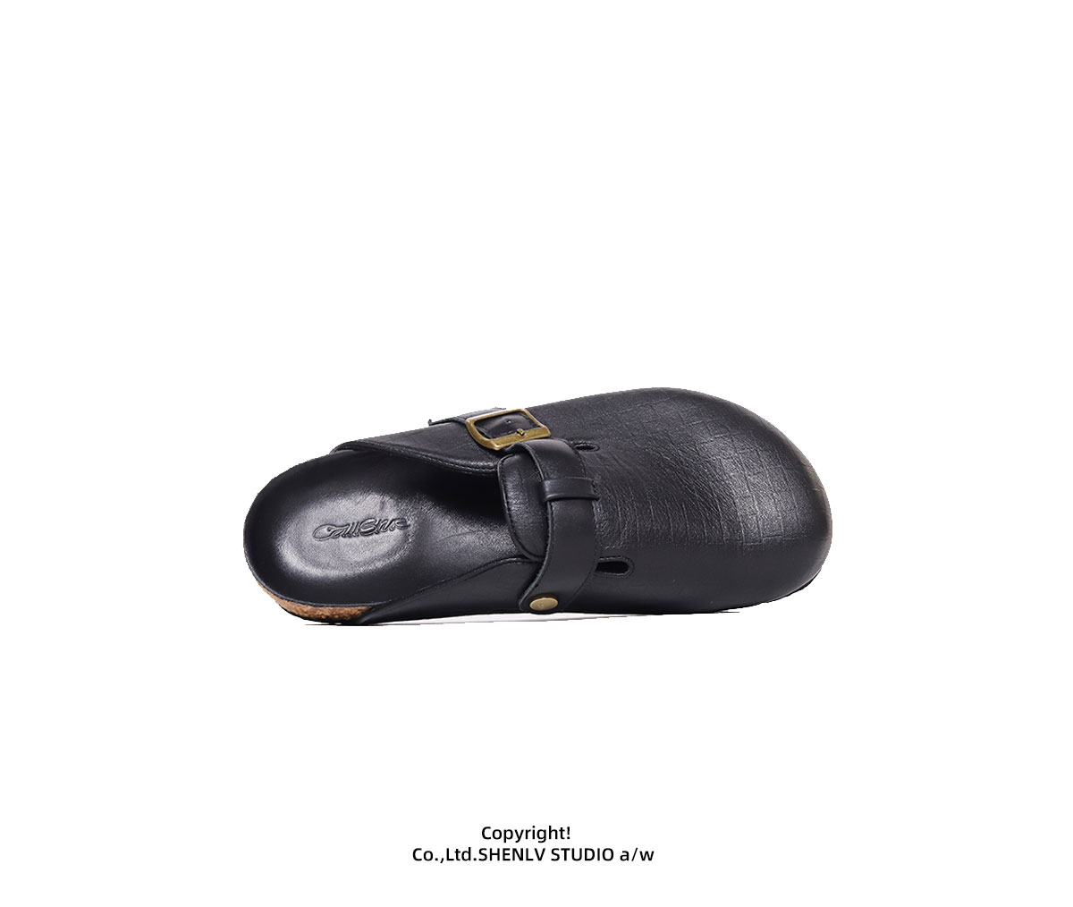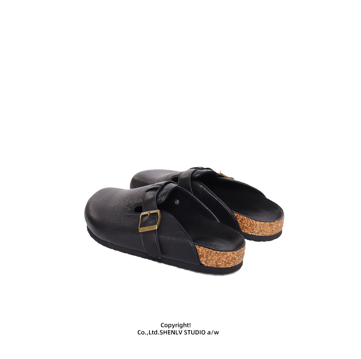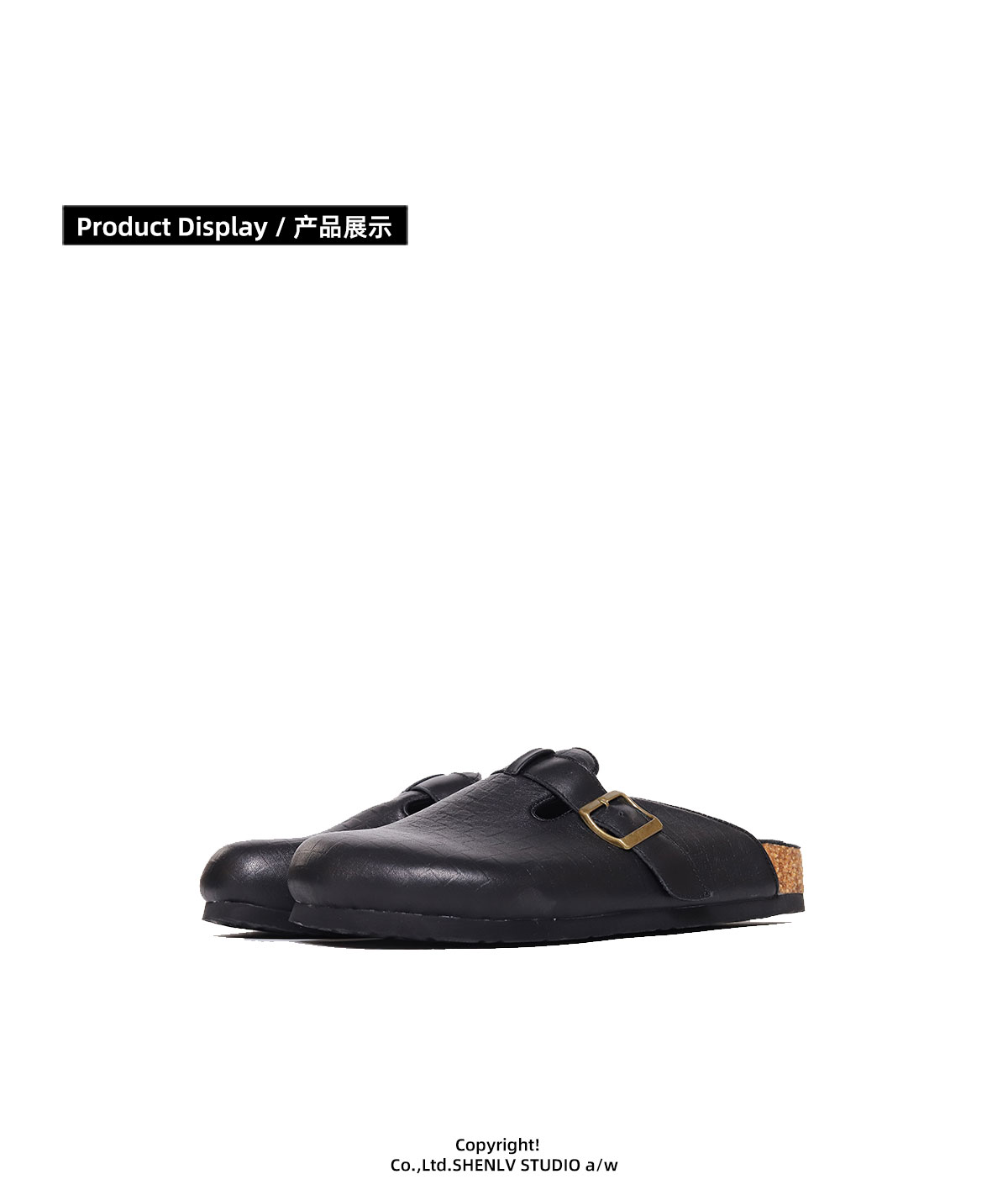 SHENLV STUDIO Baotou Half-trailer Leather Shoes Versatile Commuter Leather Slippers
