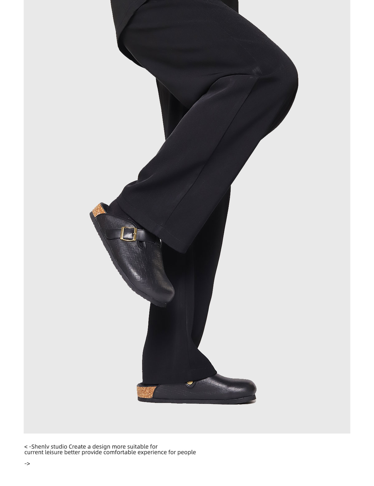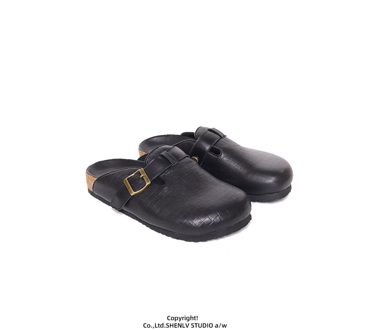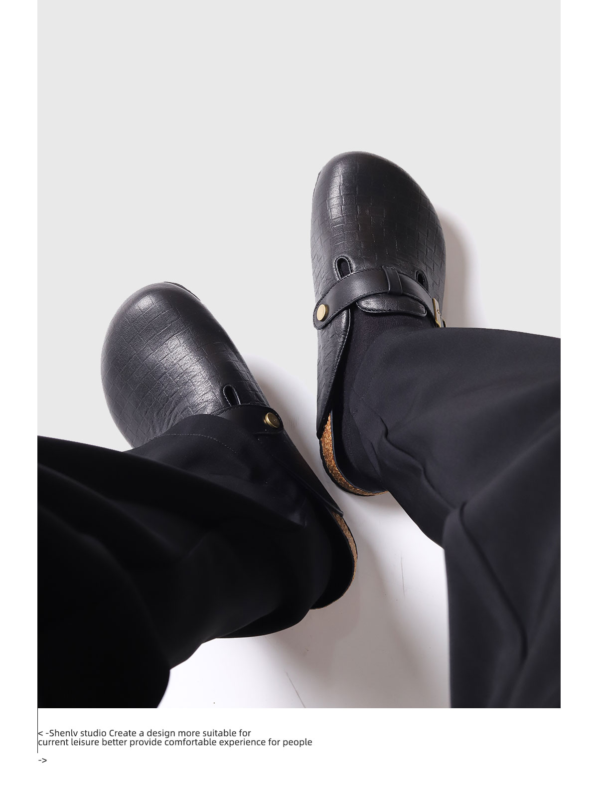 SHENLV STUDIO Baotou Half-trailer Leather Shoes Versatile Commuter Leather Slippers