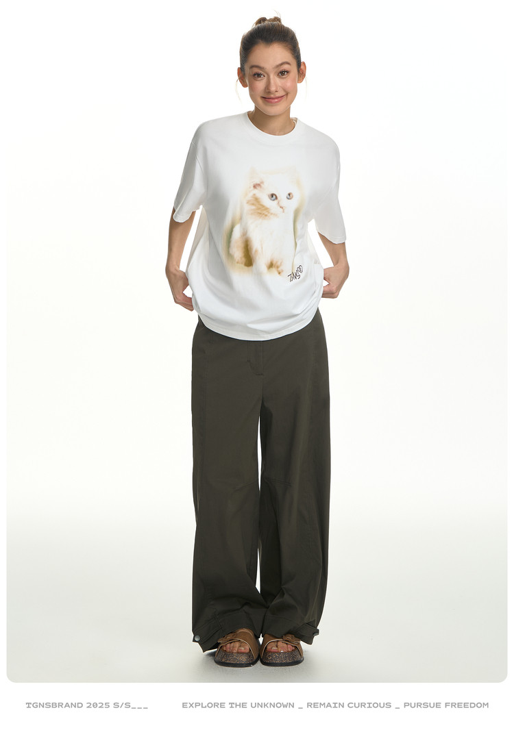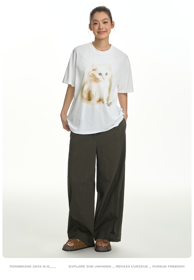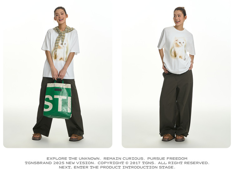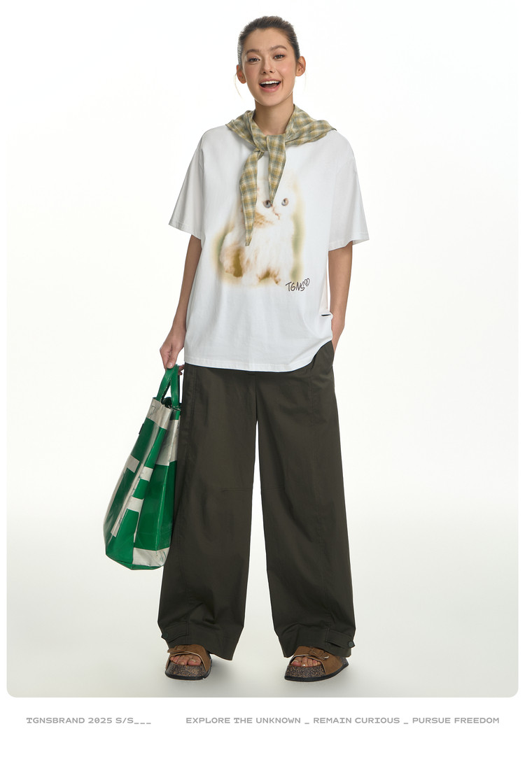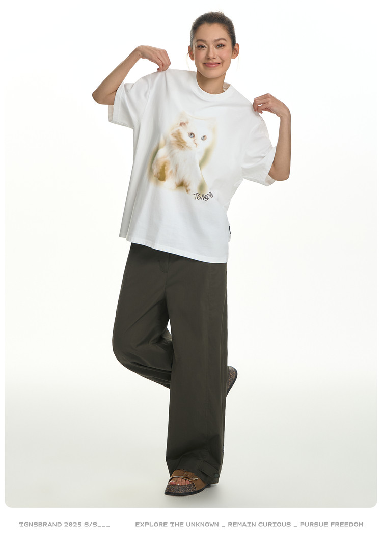 TGNS Fuzzy Cat Print Loose Versatile Tee