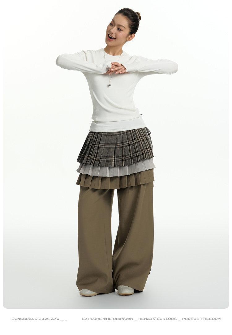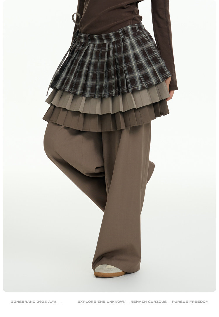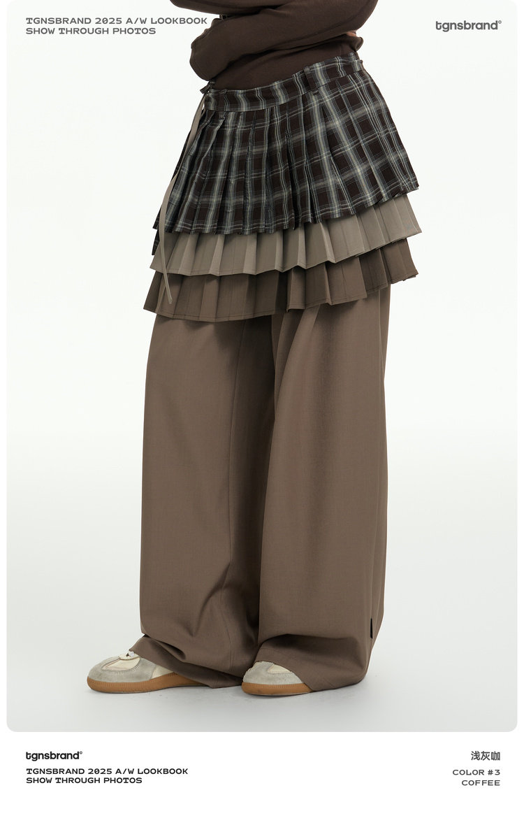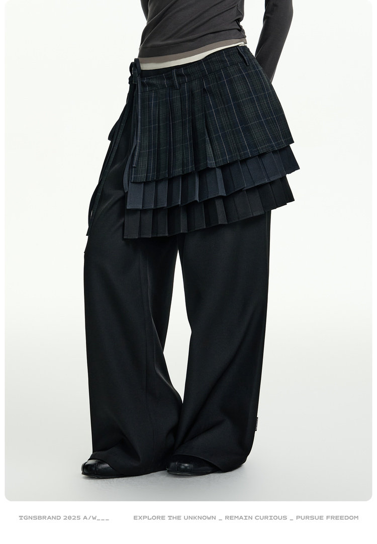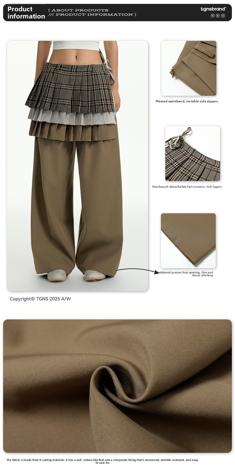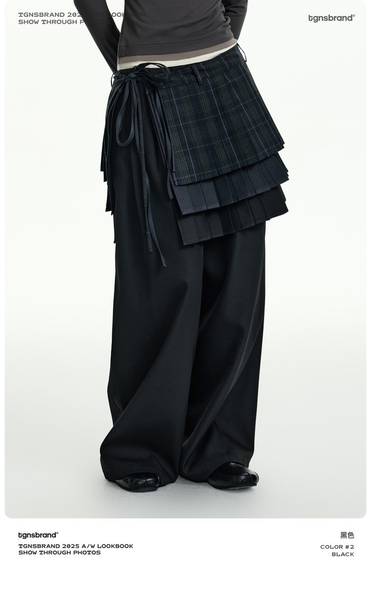 TGNS Three-layer Pleated Skirt Fart Curtain Splicing Pants
