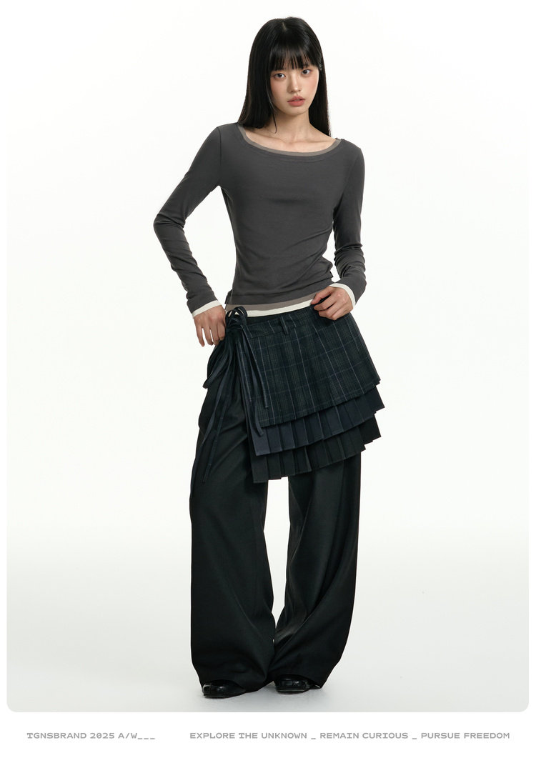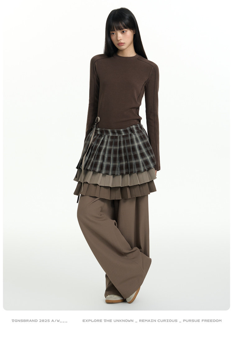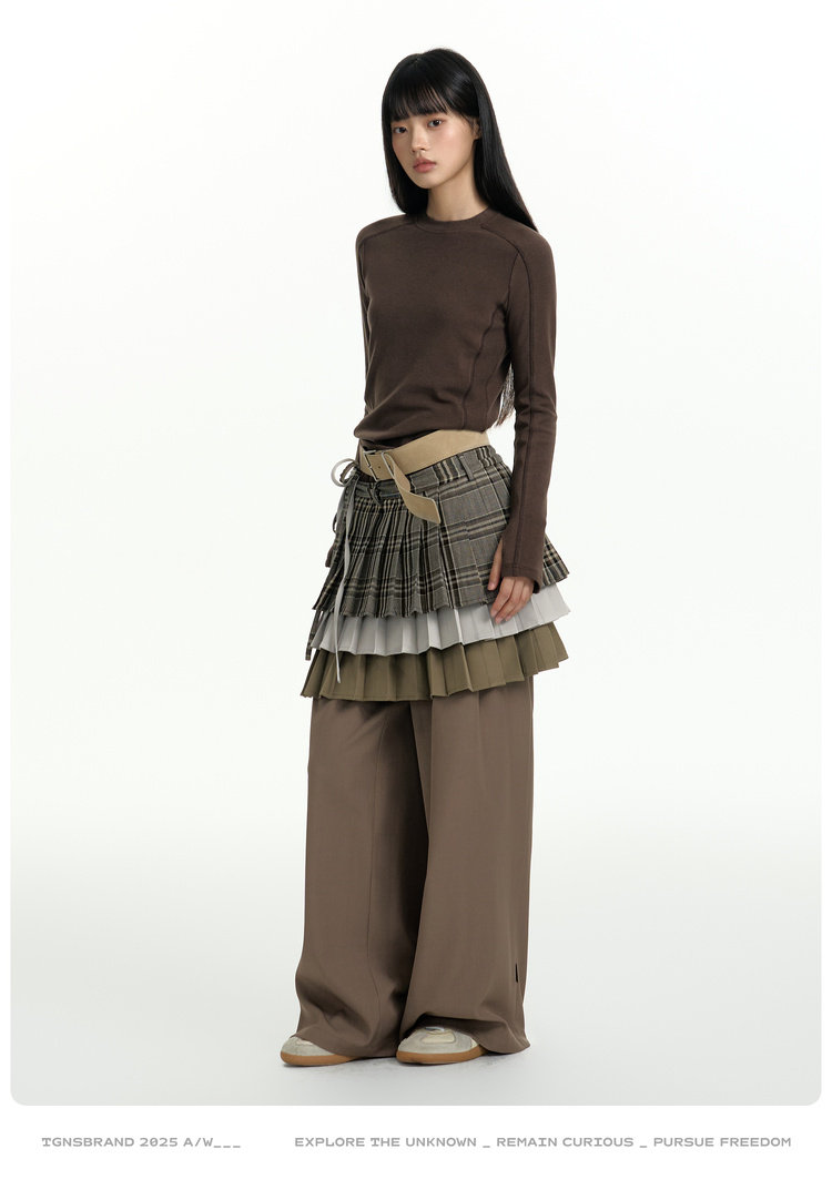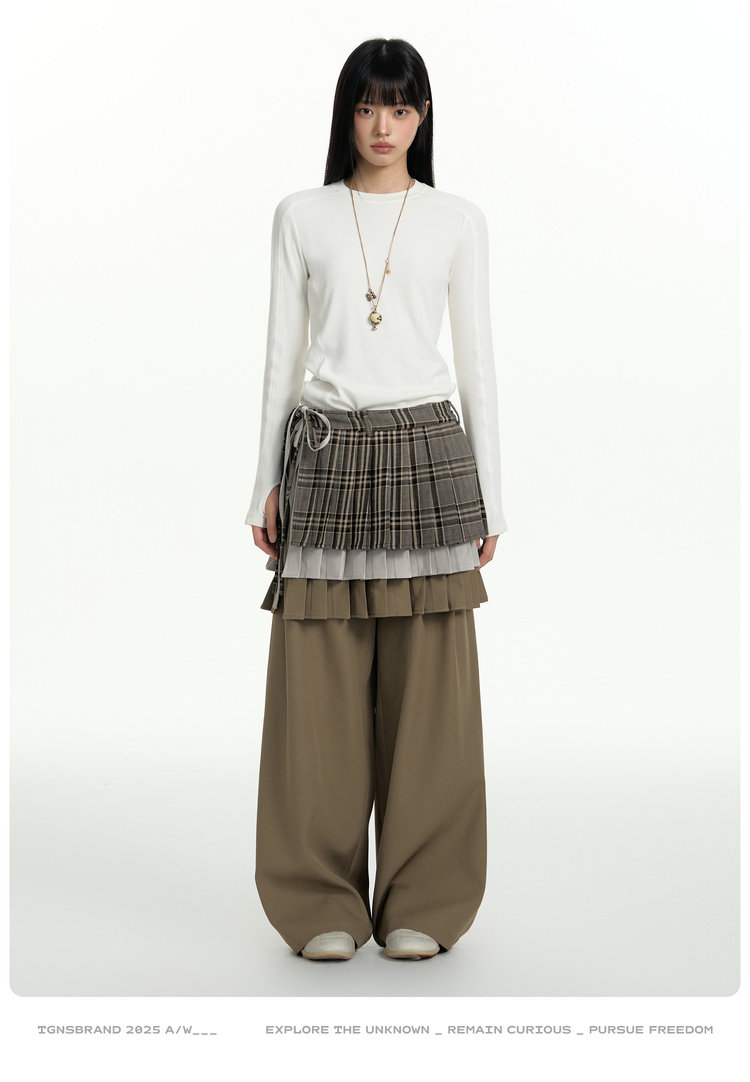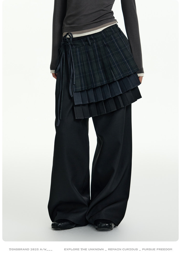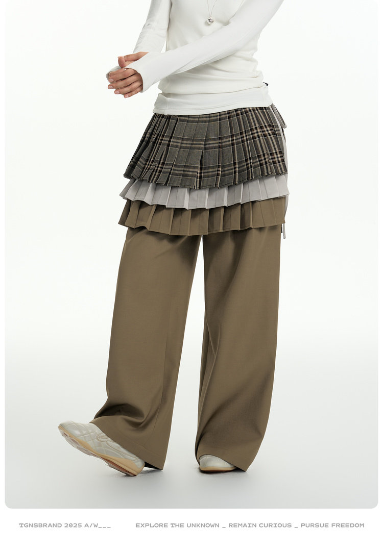 TGNS Three-layer Pleated Skirt Fart Curtain Splicing Pants