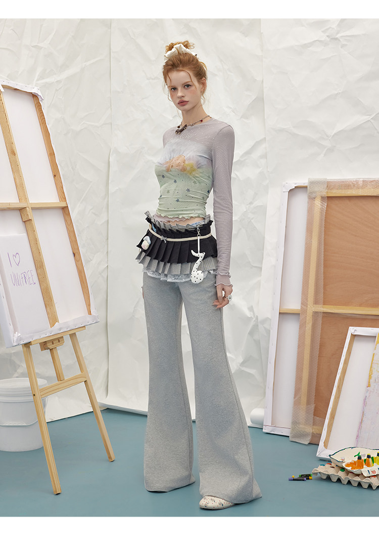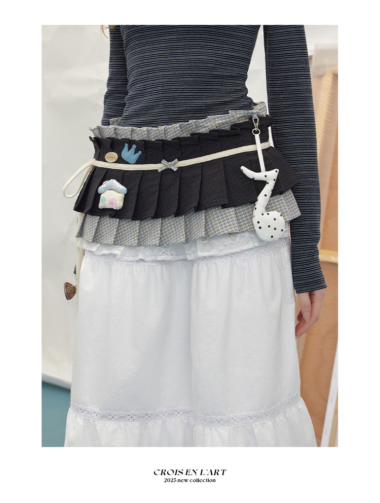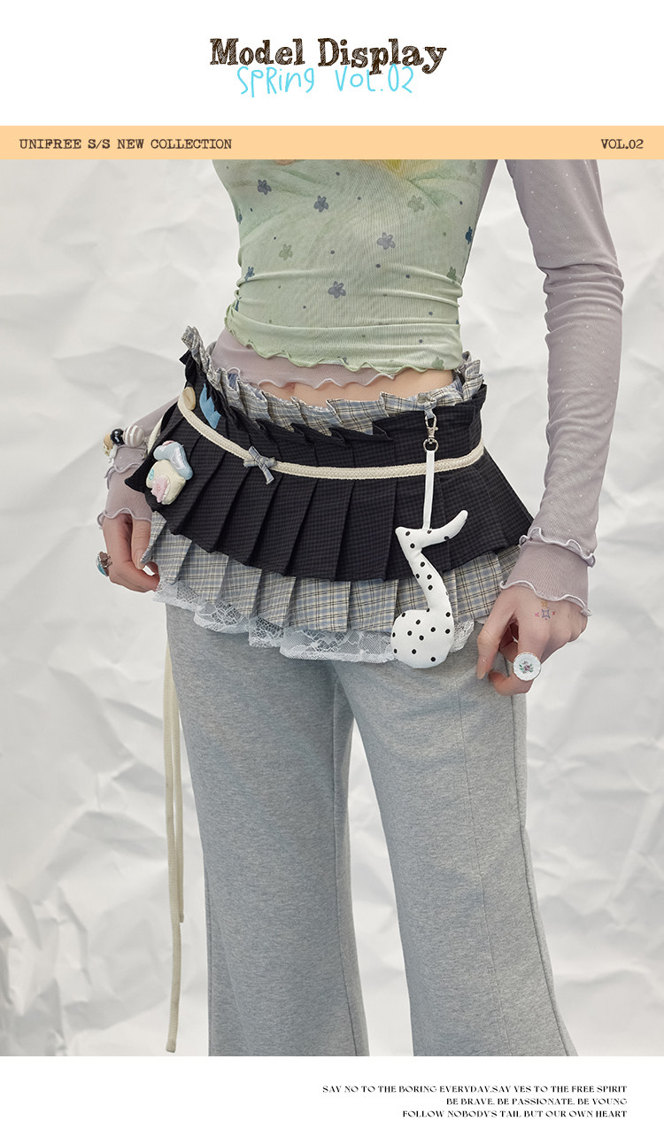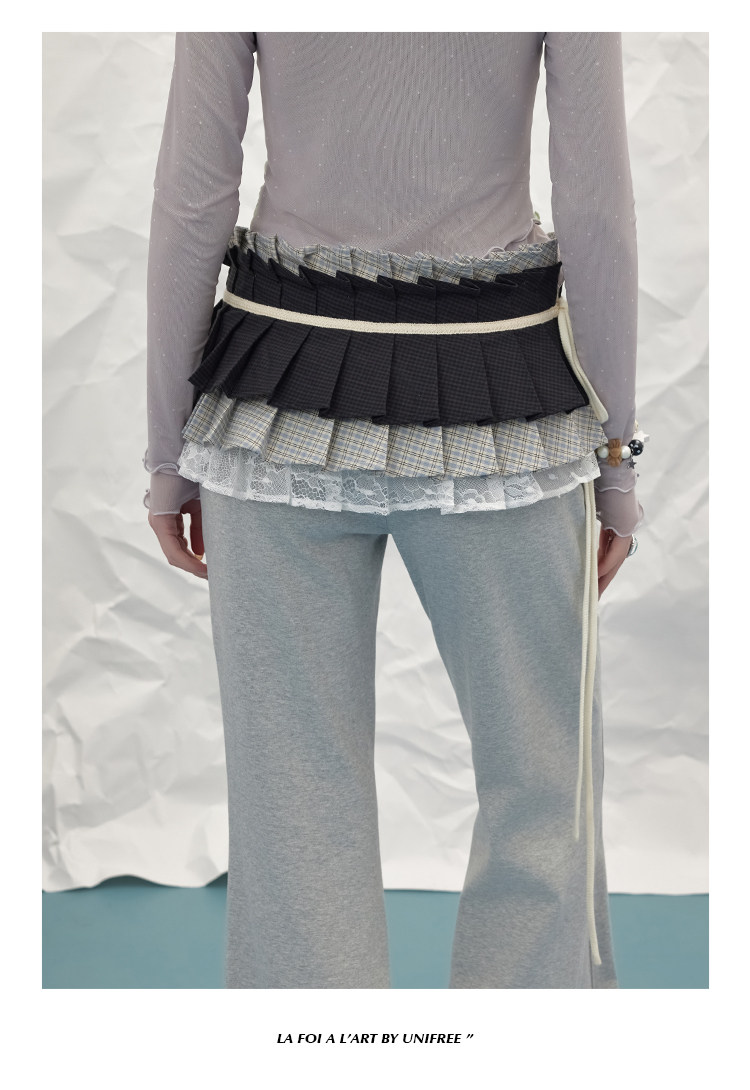 UNIFREE Plaid Splicing Contrasting Color Hem Fart Curtain Skirt