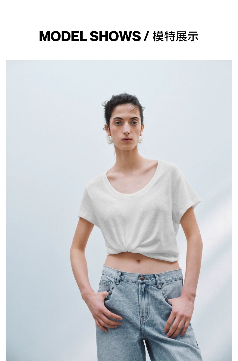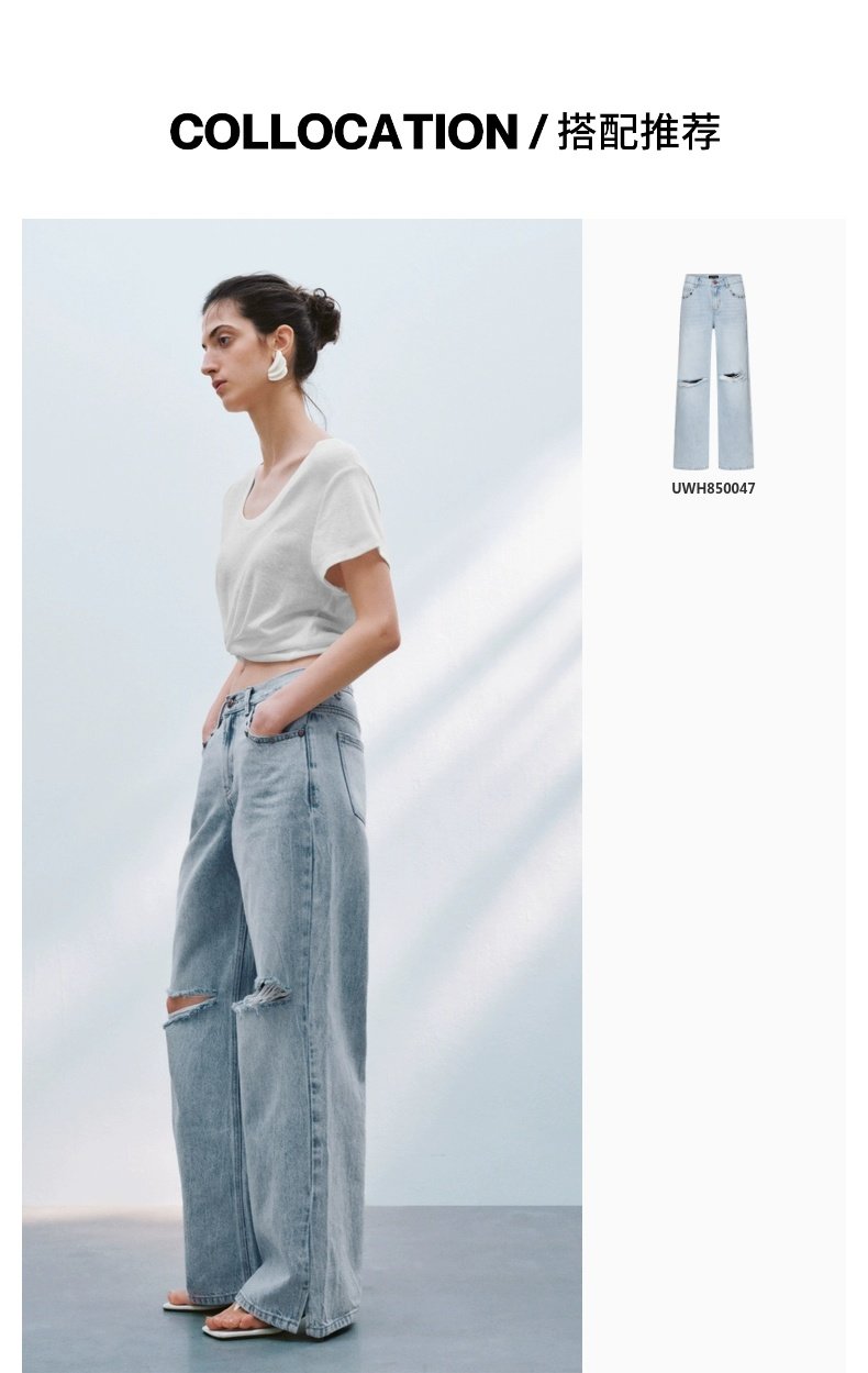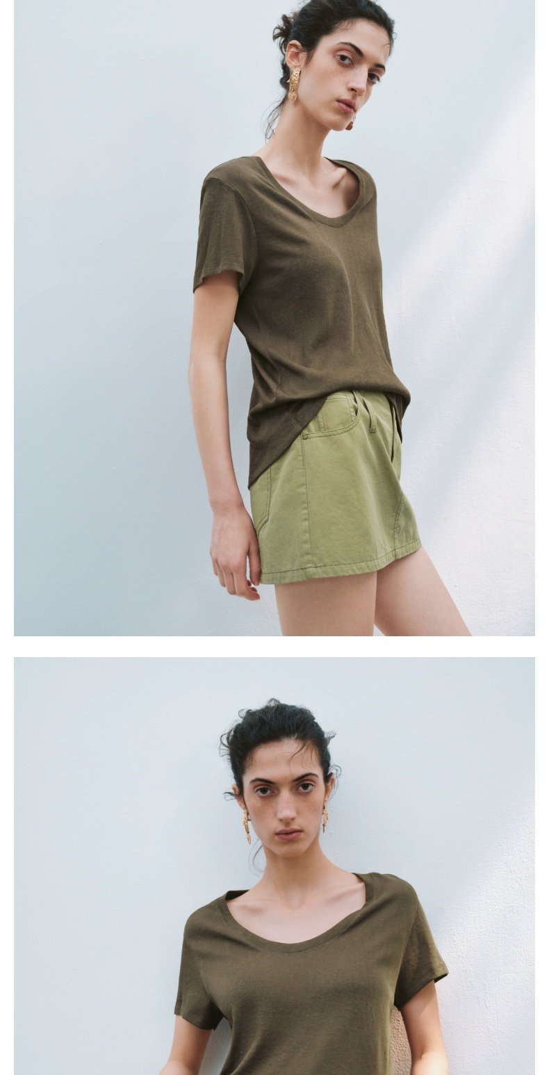 URBAN REVIVO Casual Versatile U-neck Tee