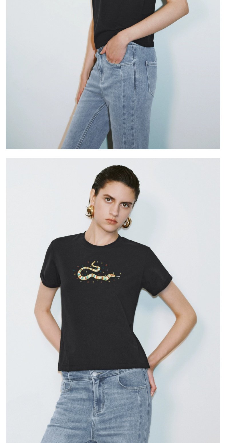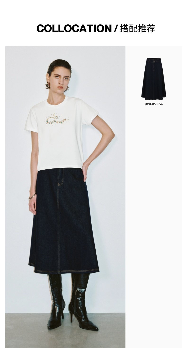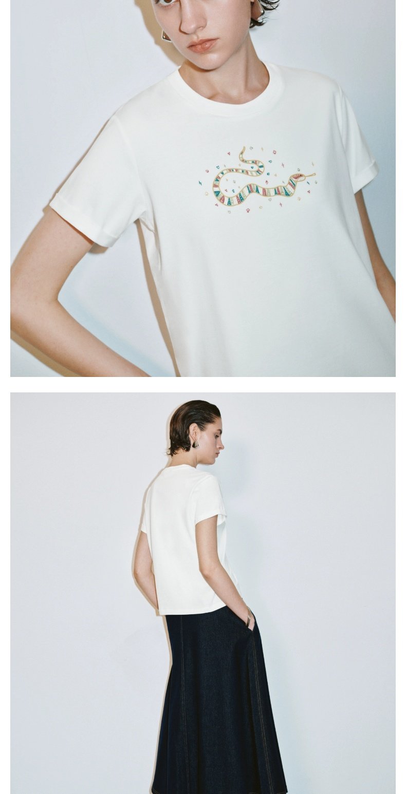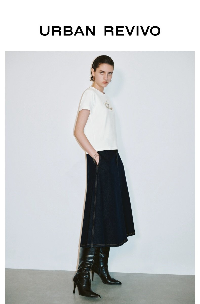 URBAN REVIVO Fun Casual Embroidery Curled Short Sleeve Tee