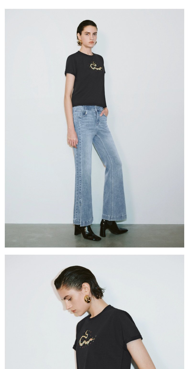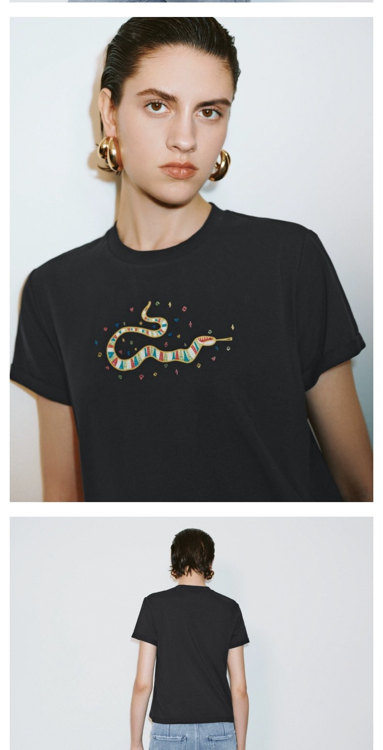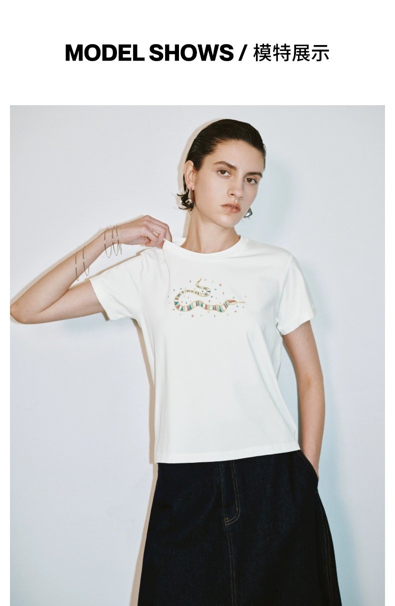 URBAN REVIVO Fun Casual Embroidery Curled Short Sleeve Tee