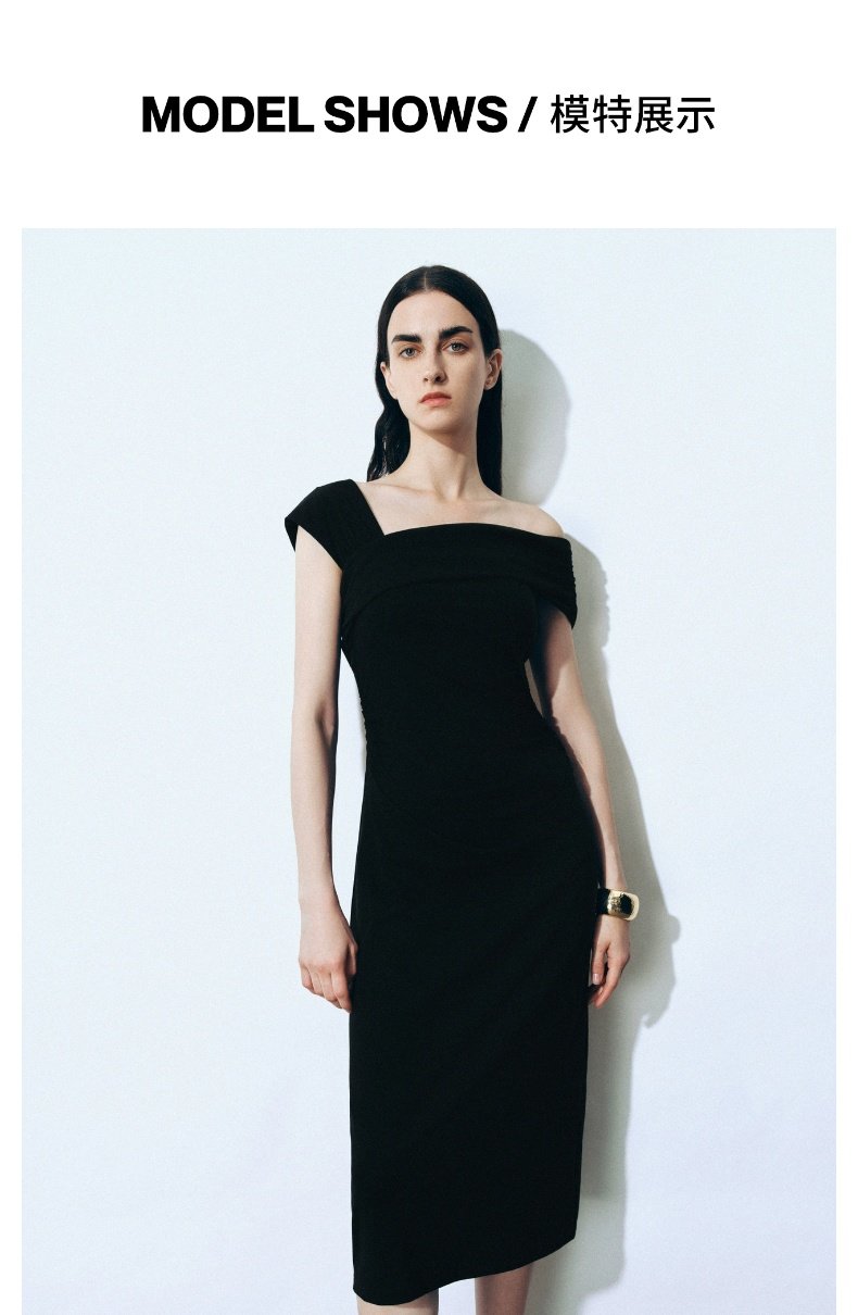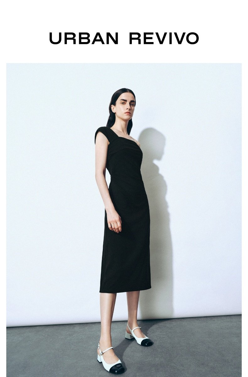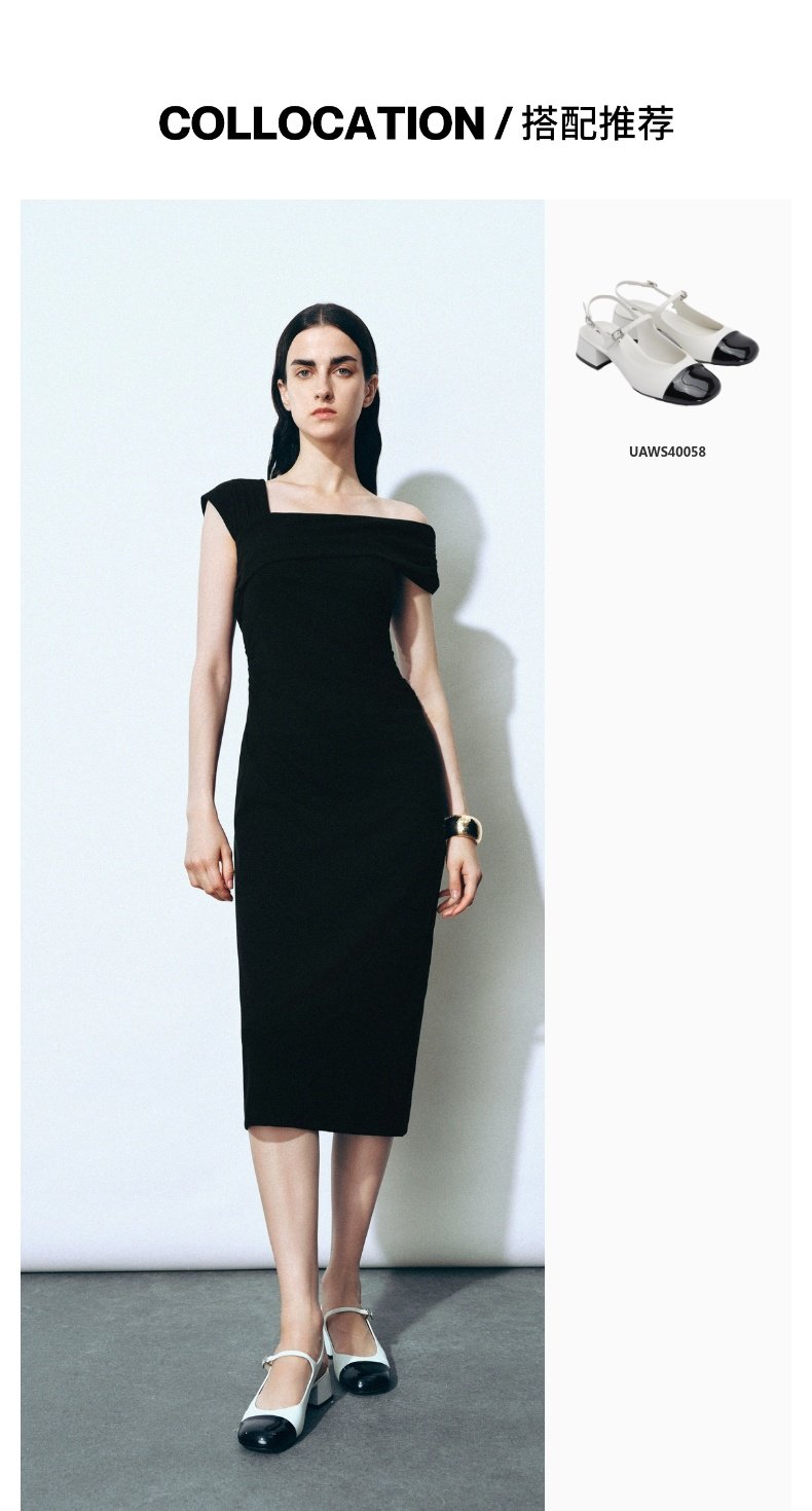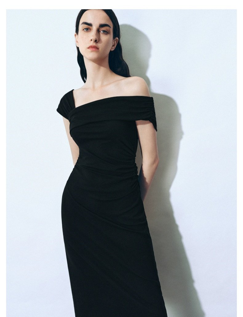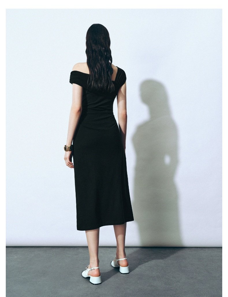 URBAN REVIVO Glamour Off-the-shoulder Pleated Waist Dress