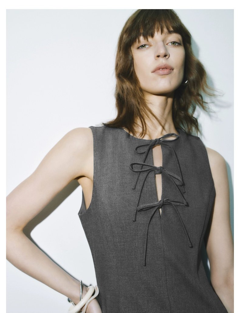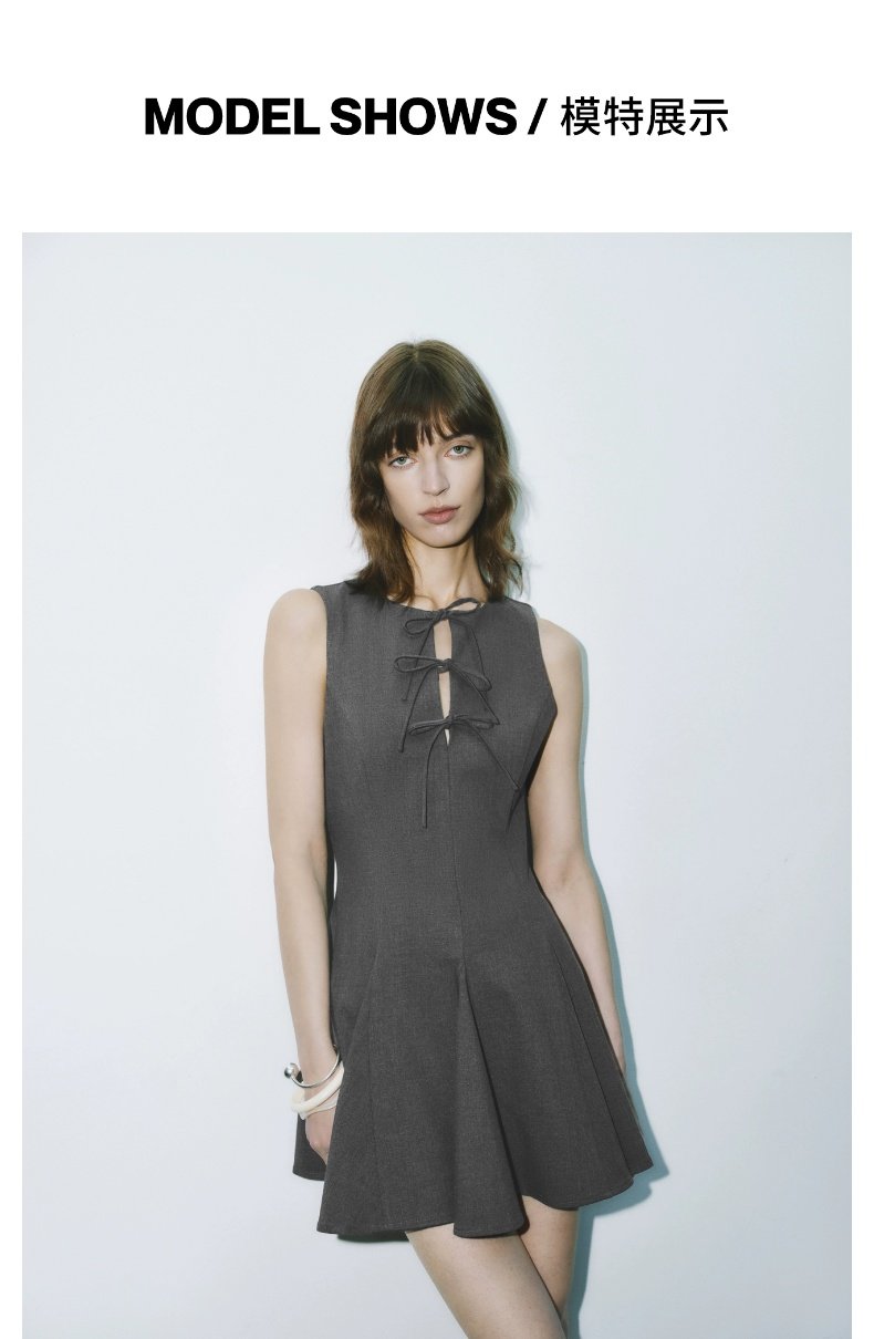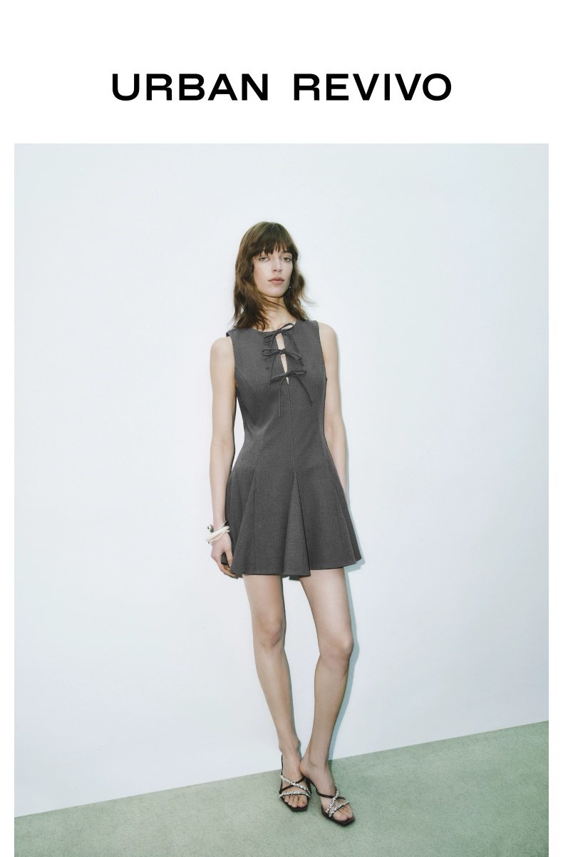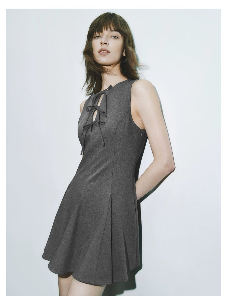 URBAN REVIVO Grey Bow-tie Sleeveless Dress