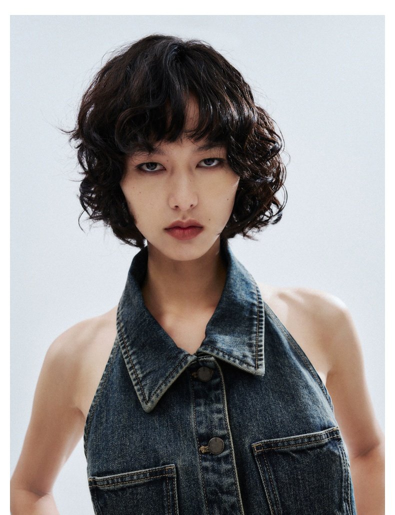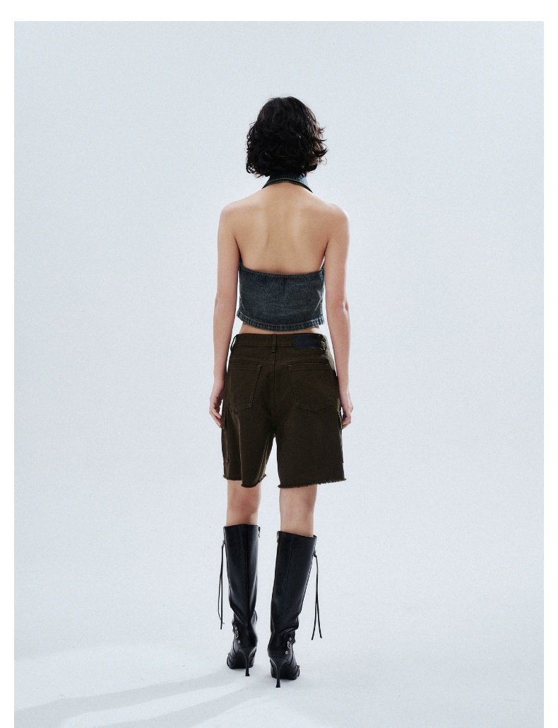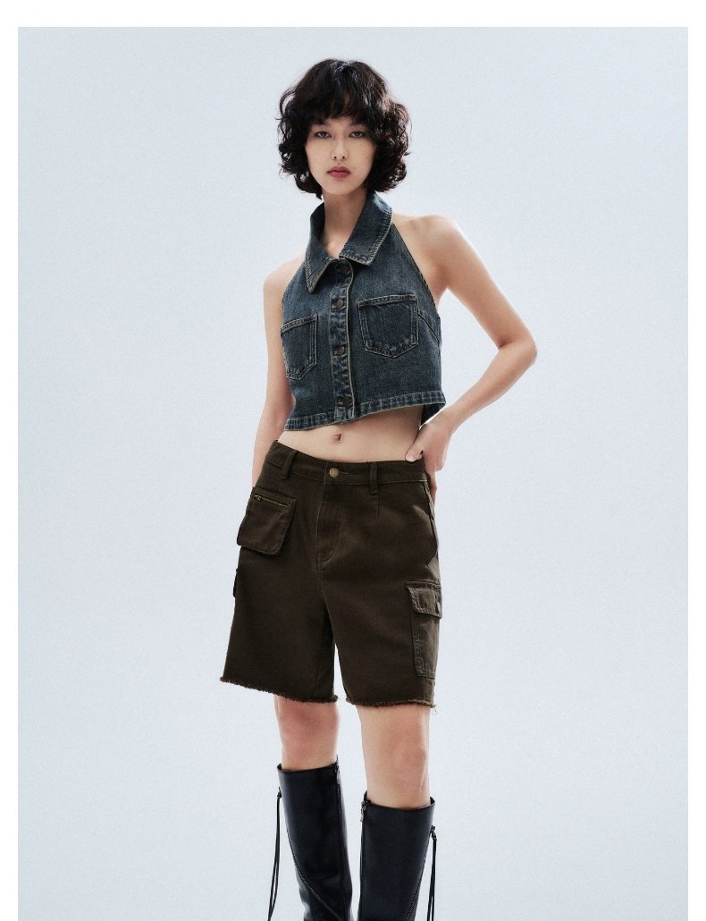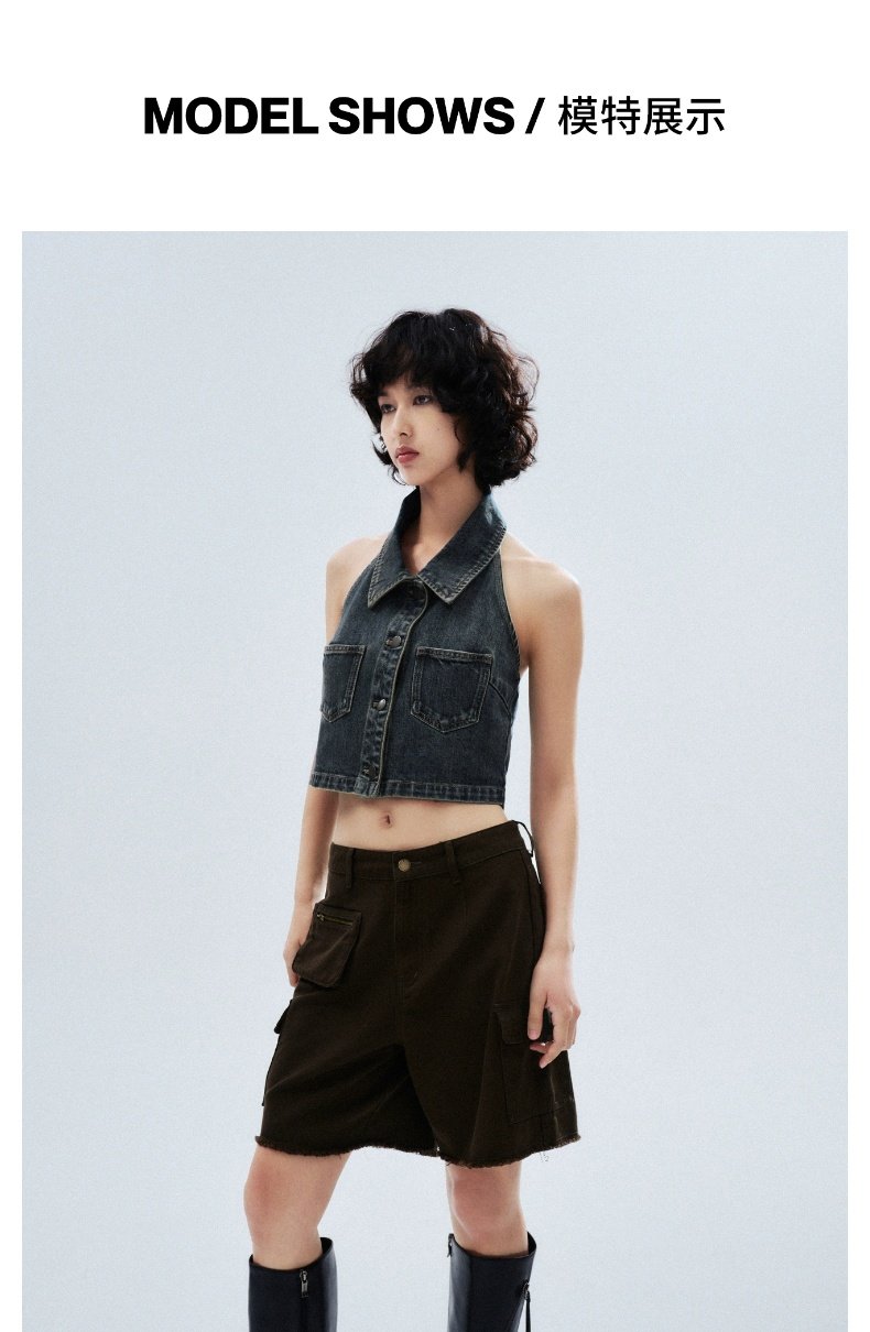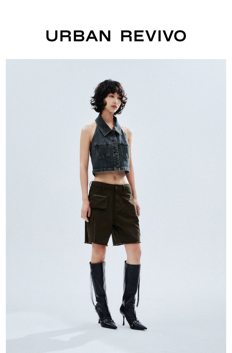 URBAN REVIVO Neck Halter Sleeveless Denim Shirt