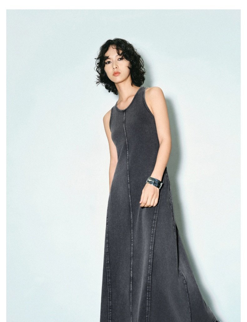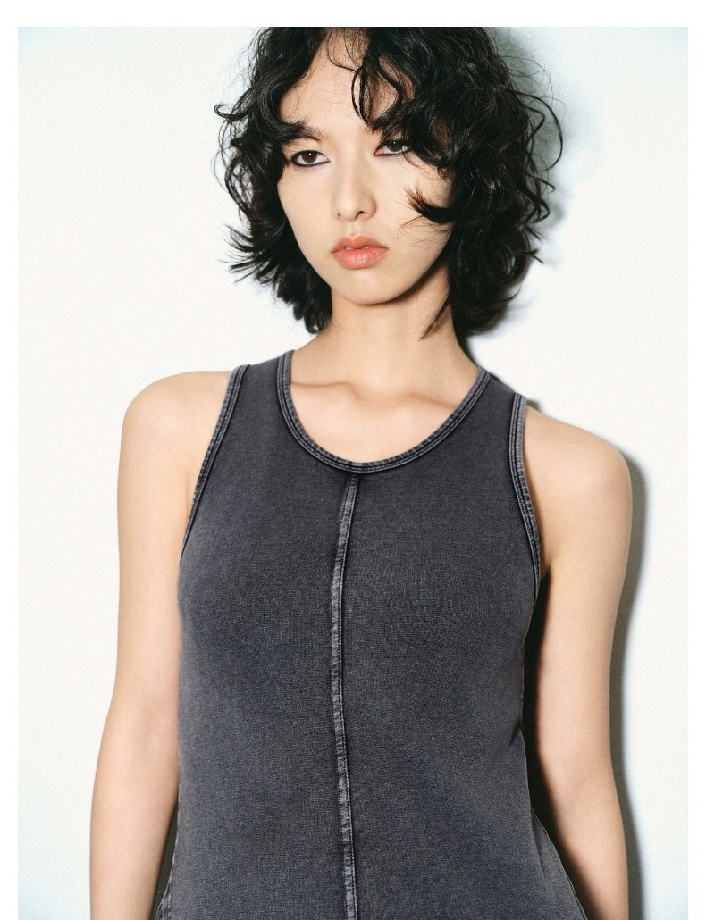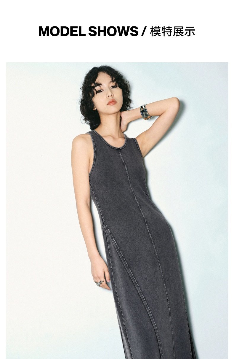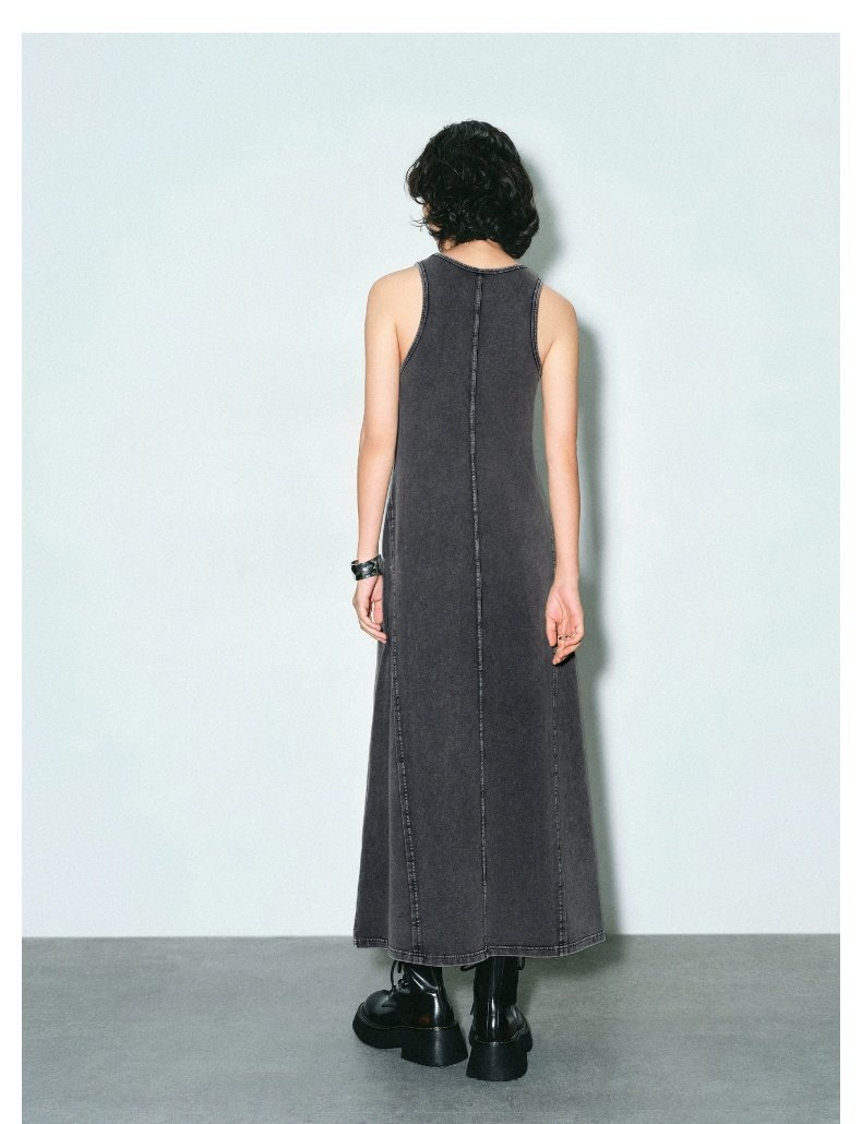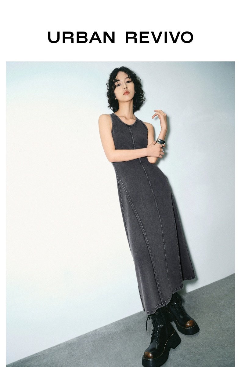 URBAN REVIVO Old Washing Water Dividing Line Design Sense Sleeveless Dress