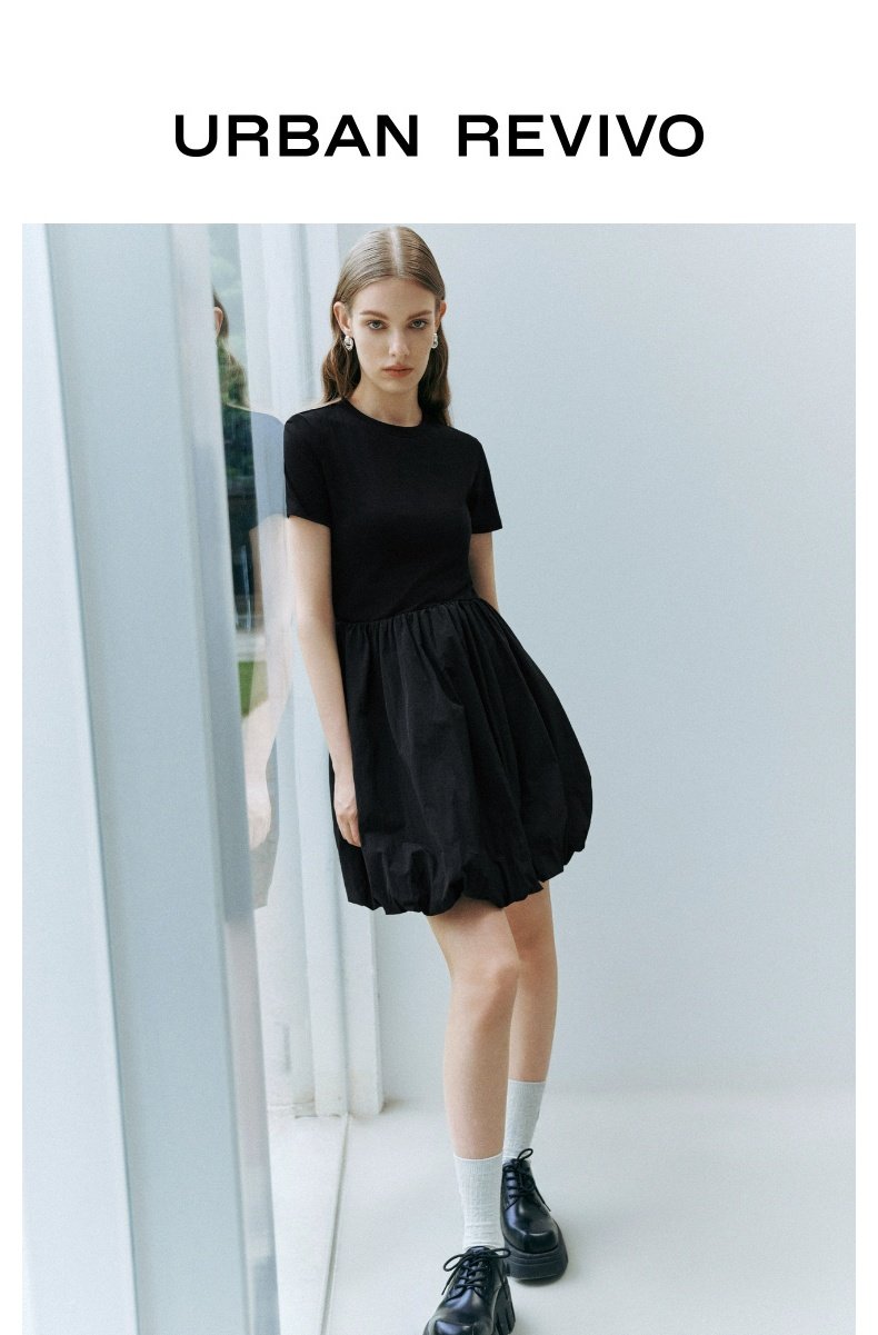 URBAN REVIVO Simple Temperament Bud Slim Short-sleeved Dress