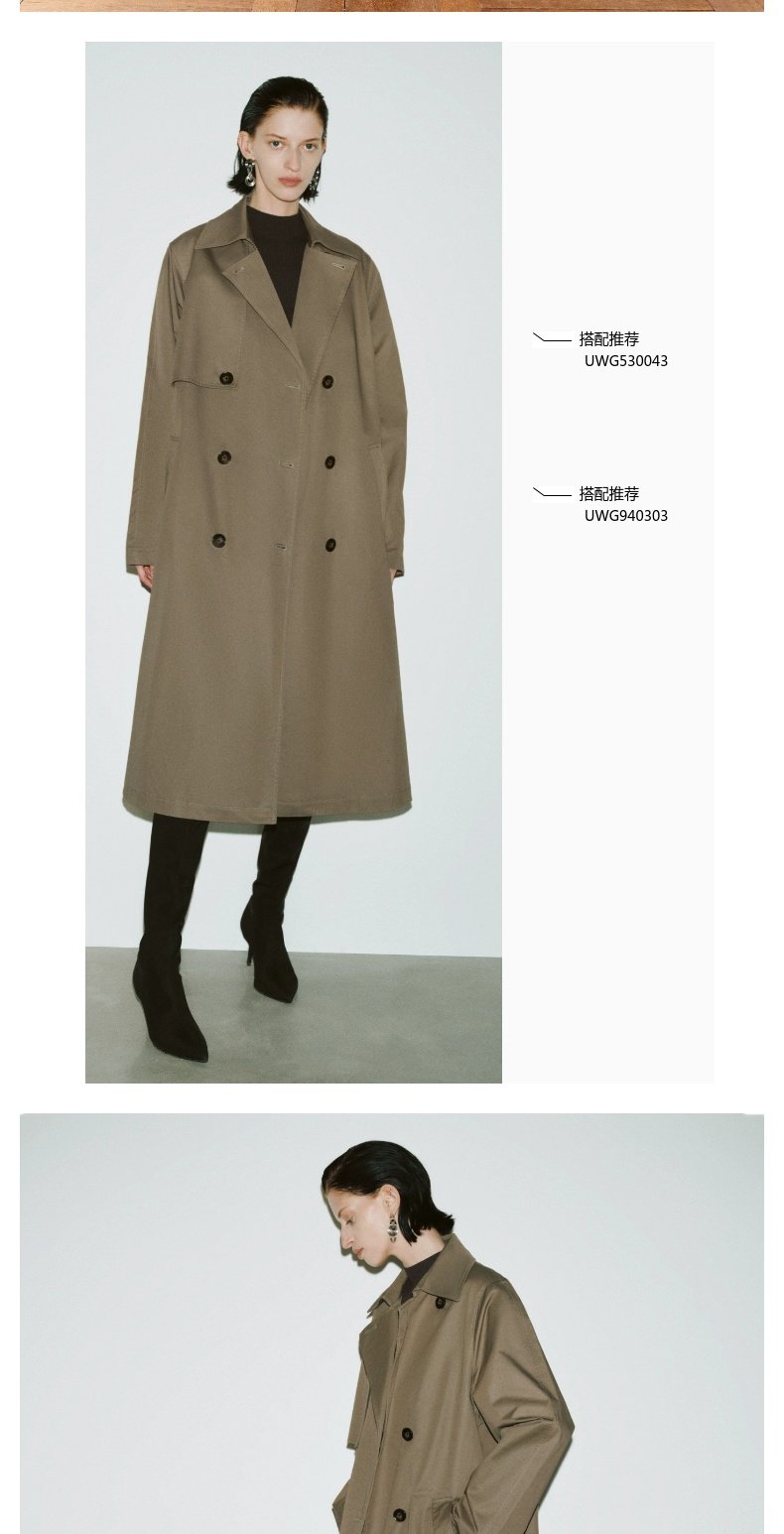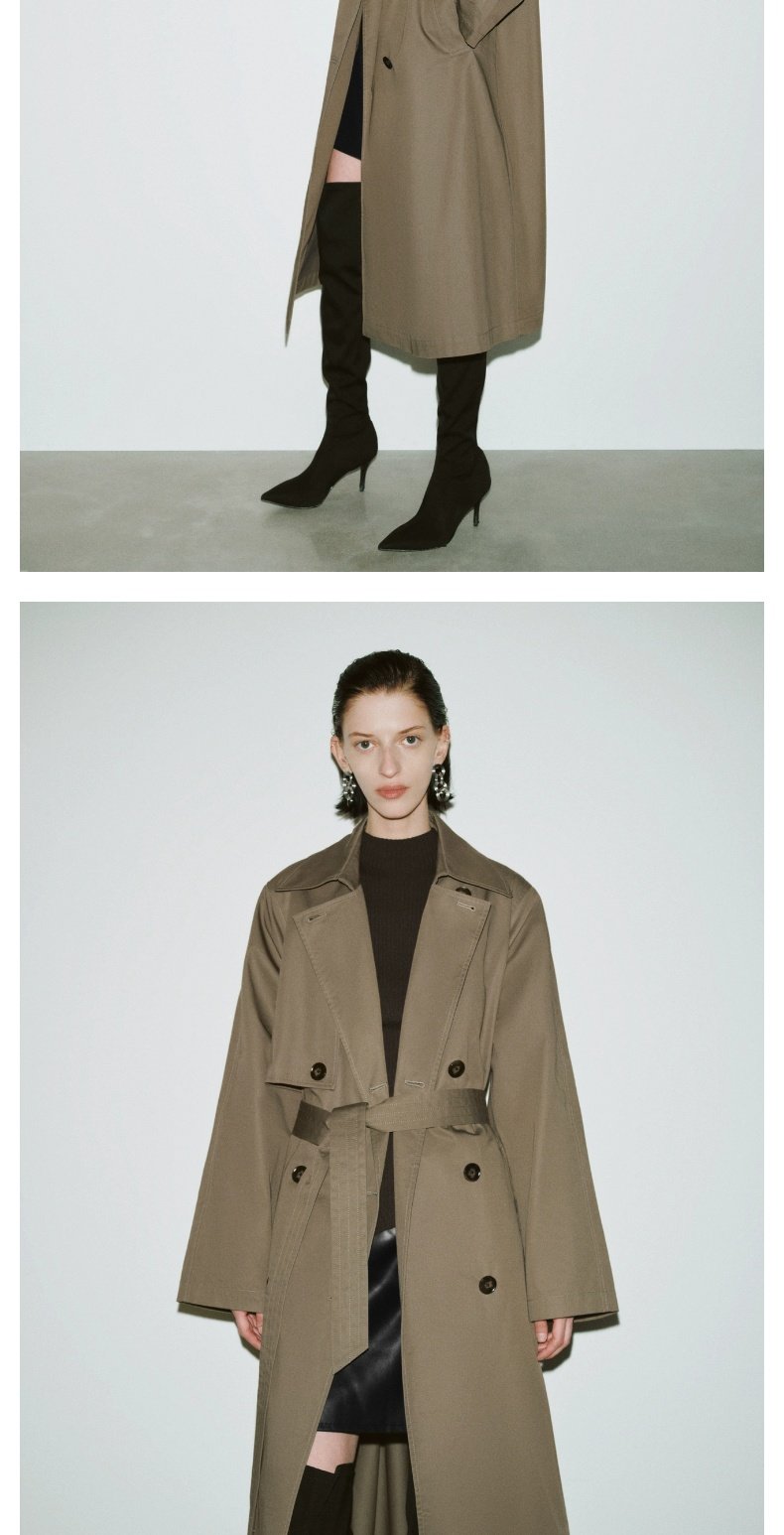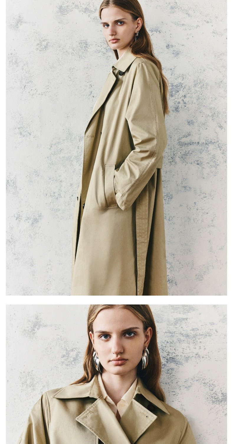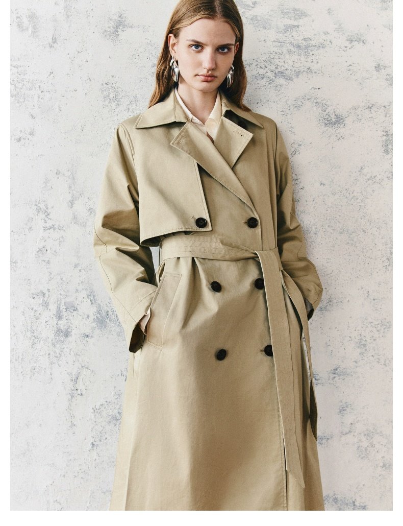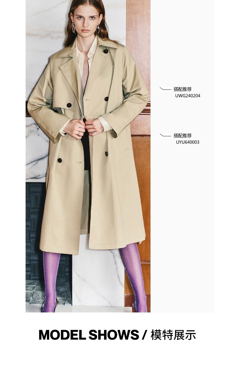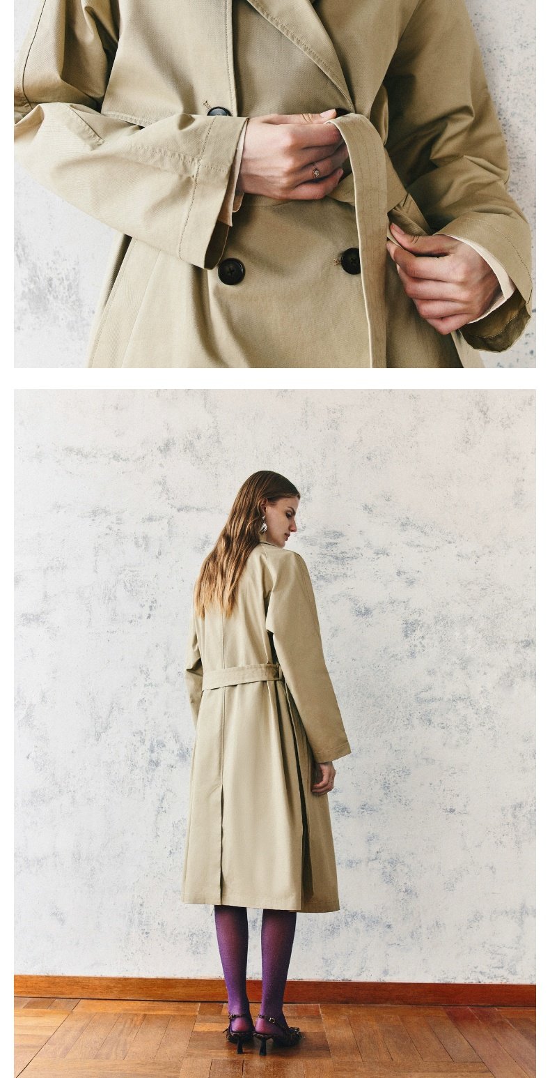 URBAN REVIVO Temperament British Style Double-breasted Waist Long Trench Coat
