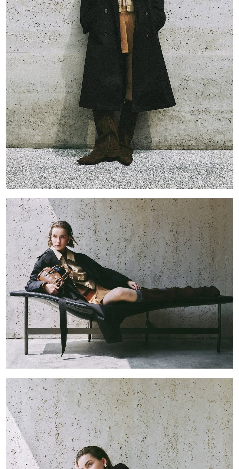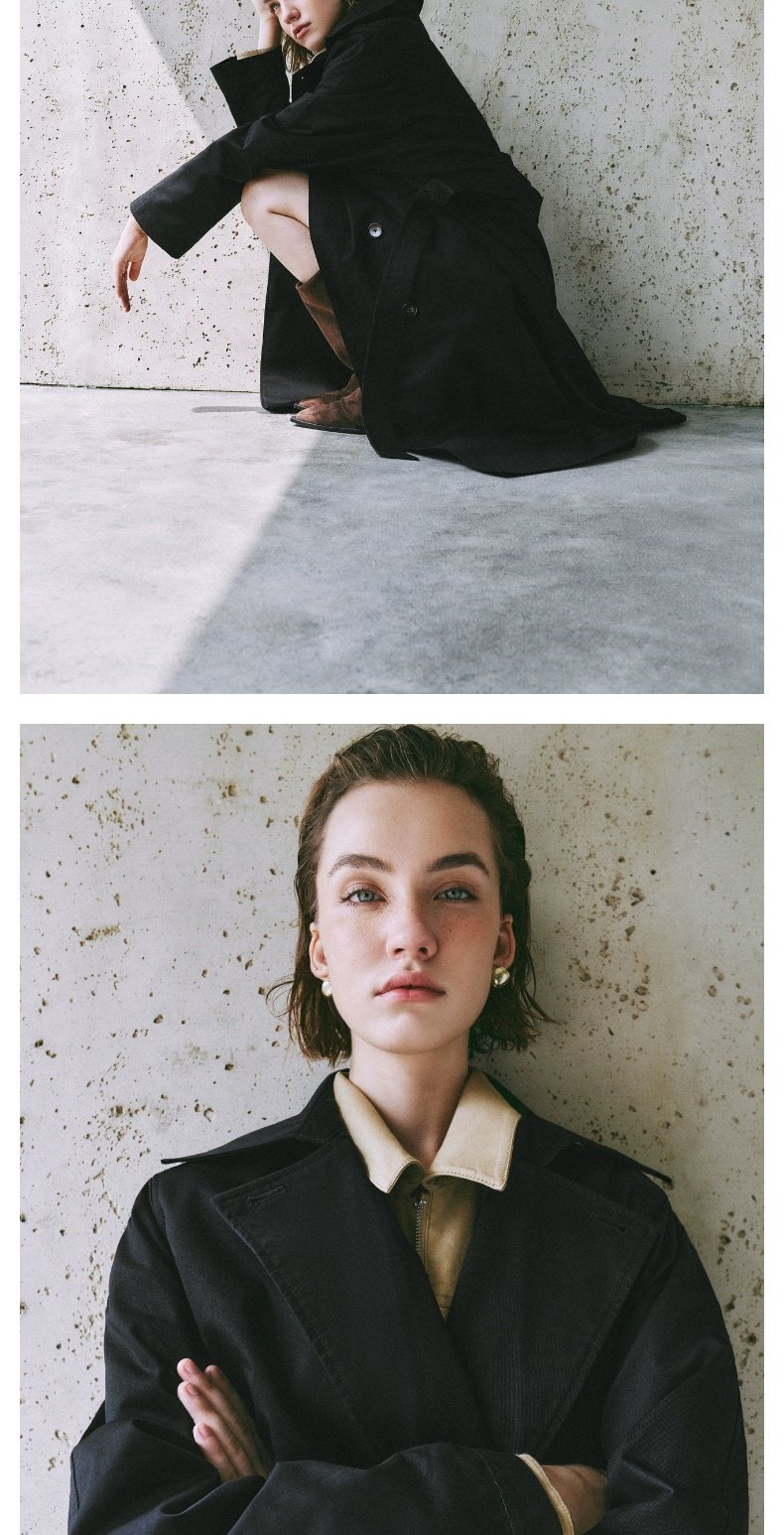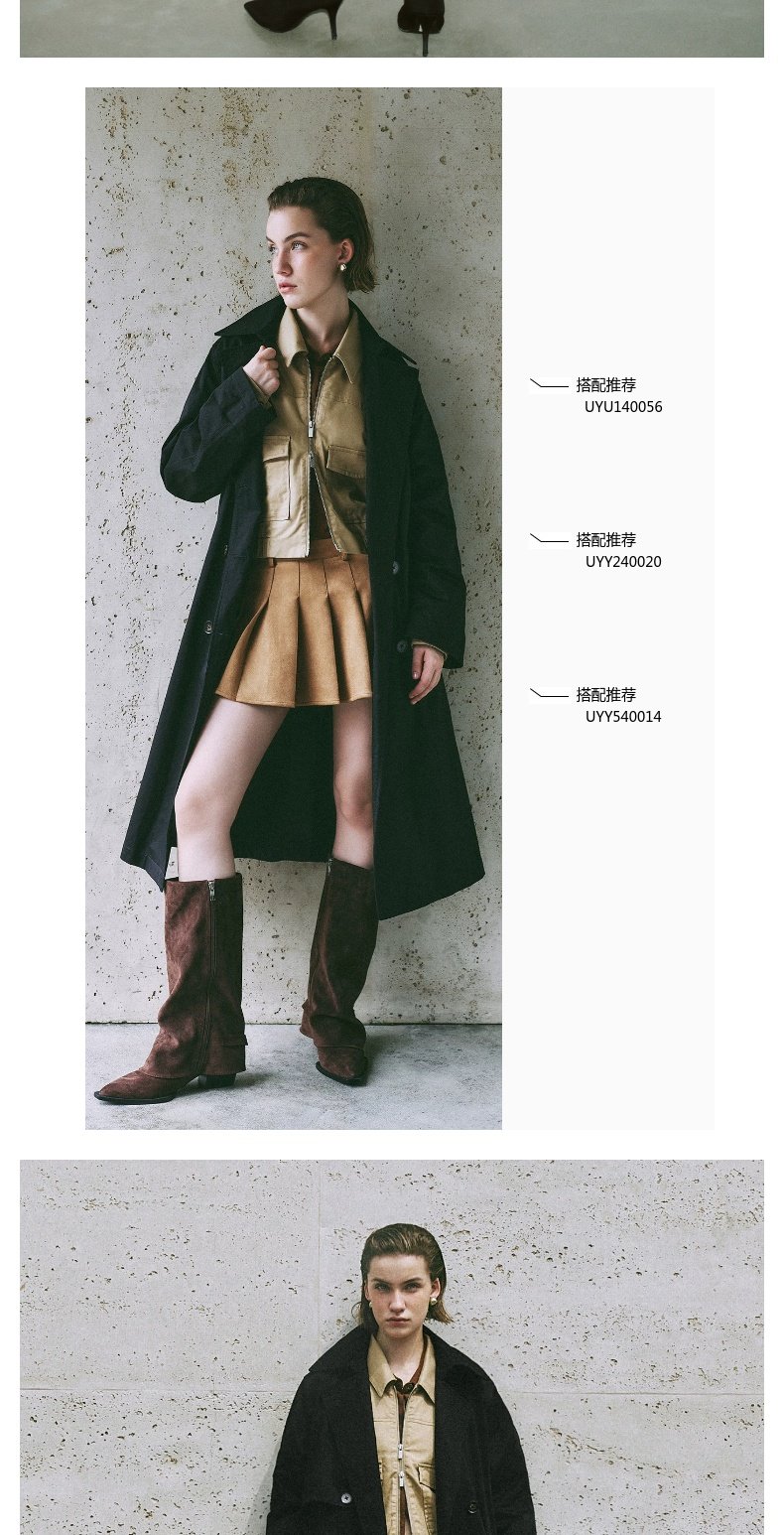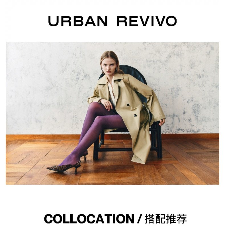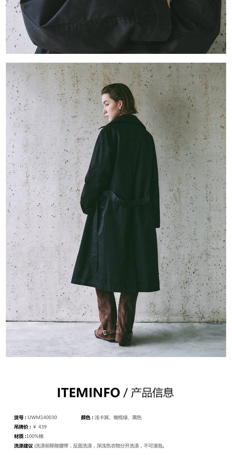 URBAN REVIVO Temperament British Style Double-breasted Waist Long Trench Coat