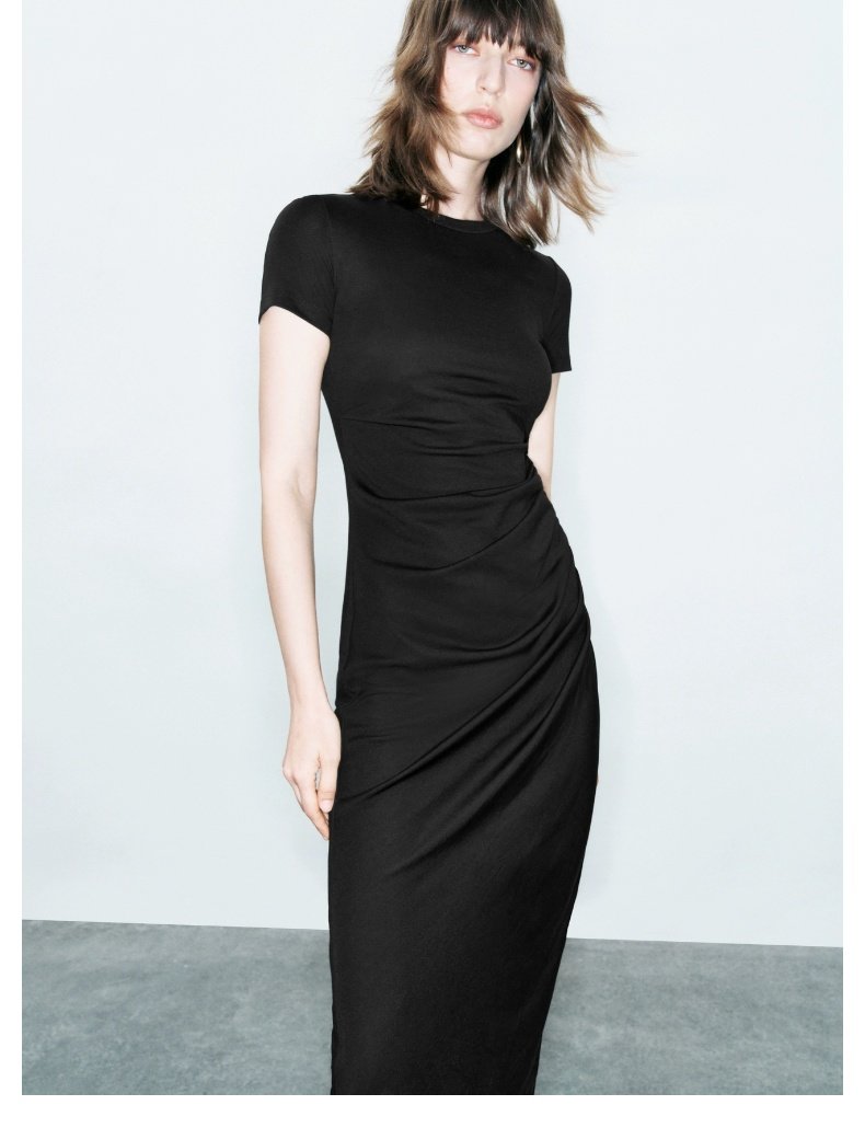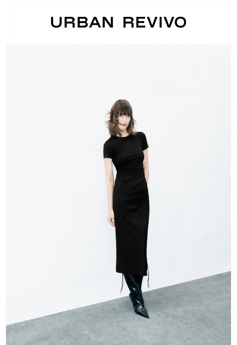 URBAN REVIVO Temperament Pleated Waist Thin Dress