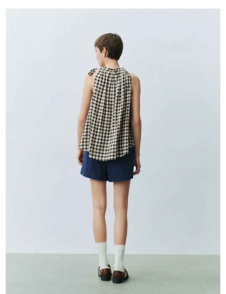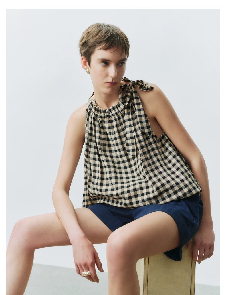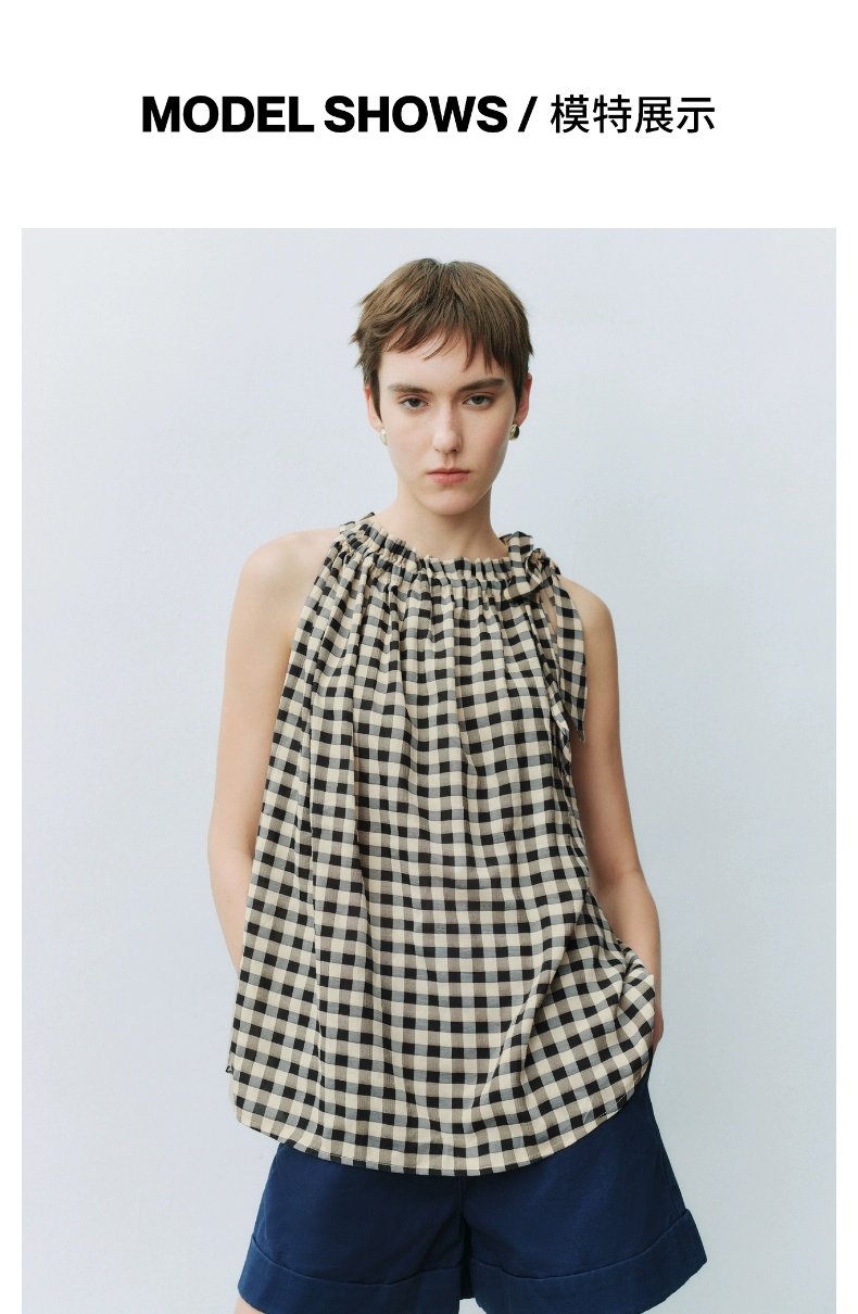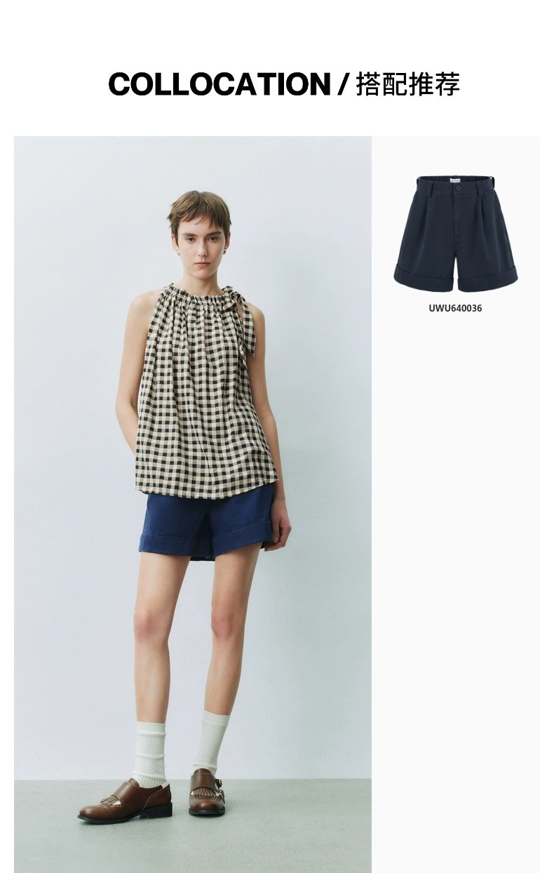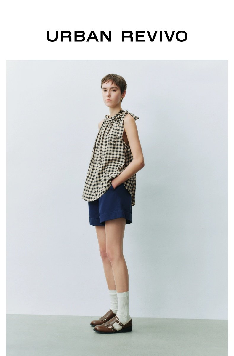 URBAN REVIVO Wave Style Contrasting Color Plaid Super Loose Blouse Shirt