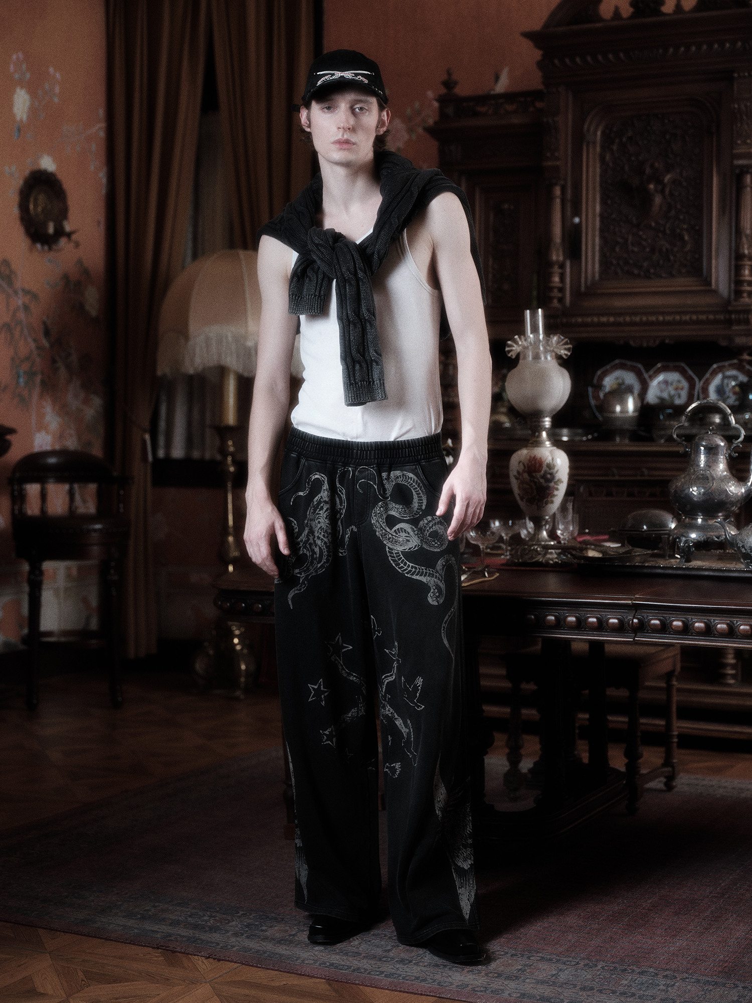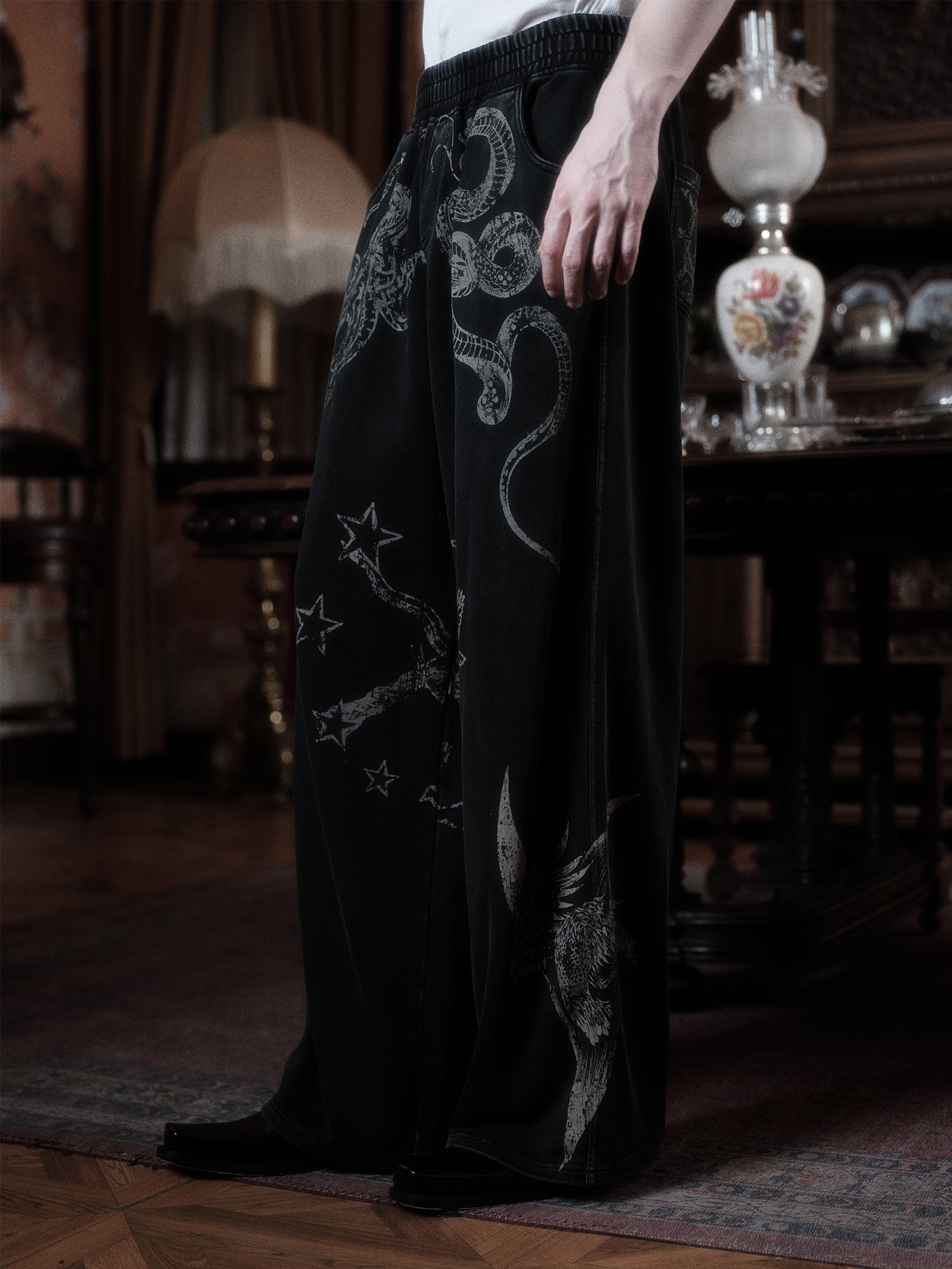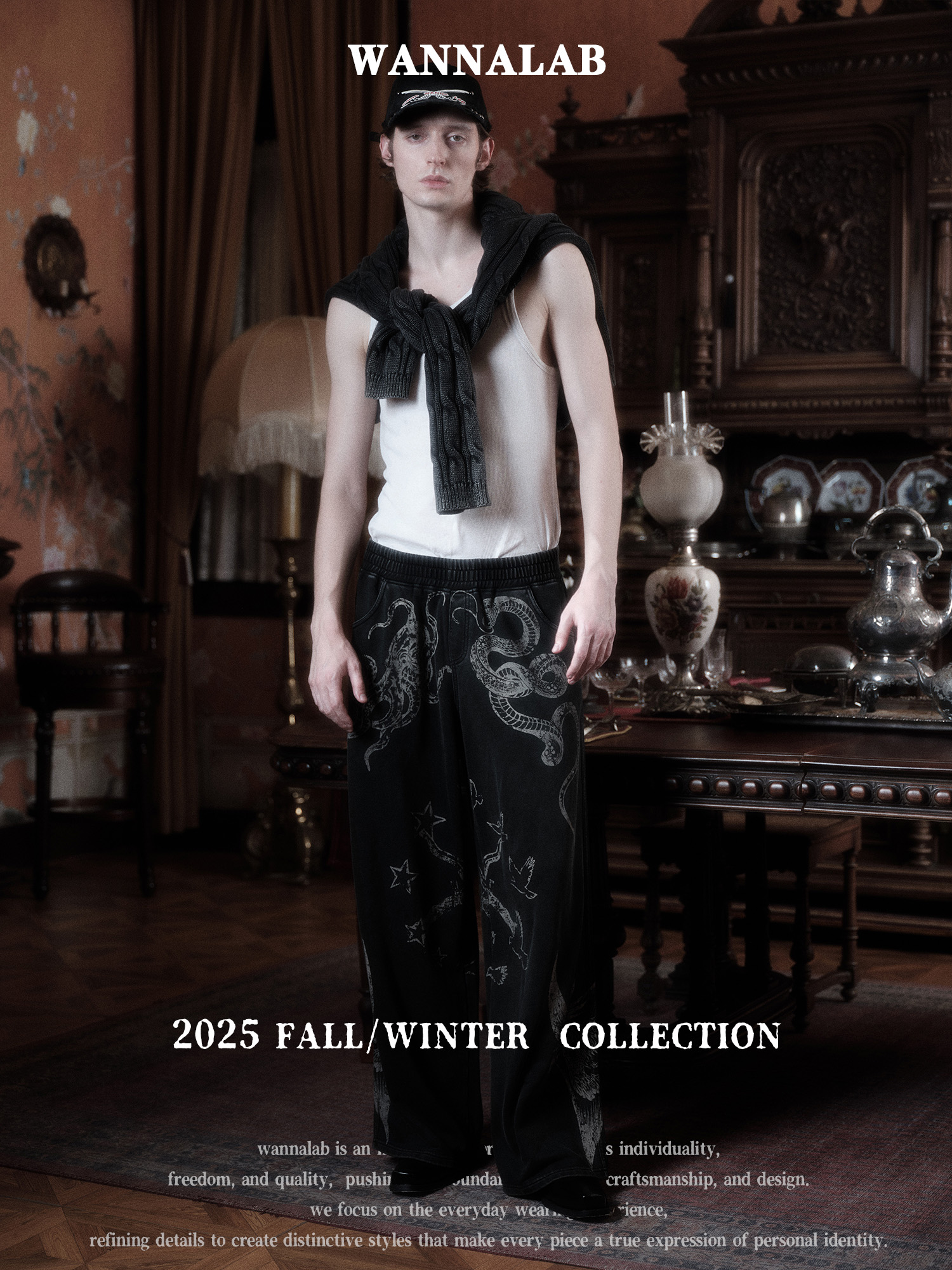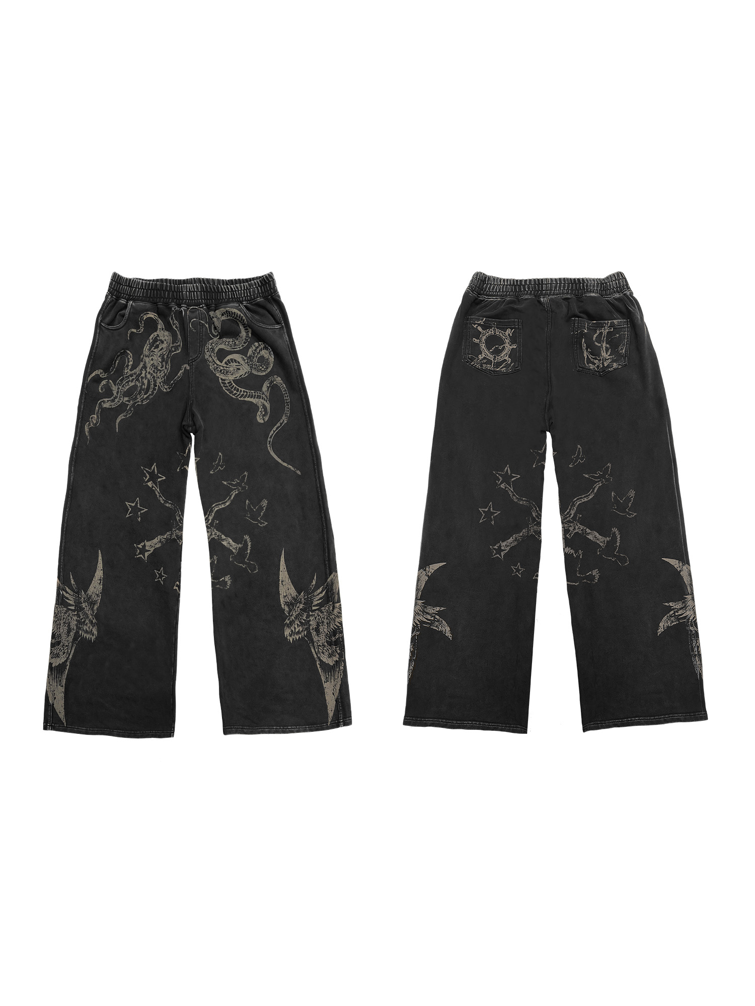 WANNA LAB Graffiti Hand-painted Old Straight Sweatpants