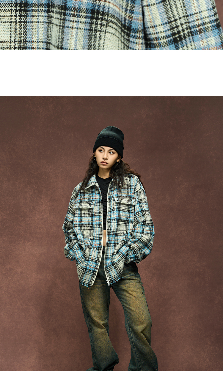 YADcrew Plaid Shirt Jacket