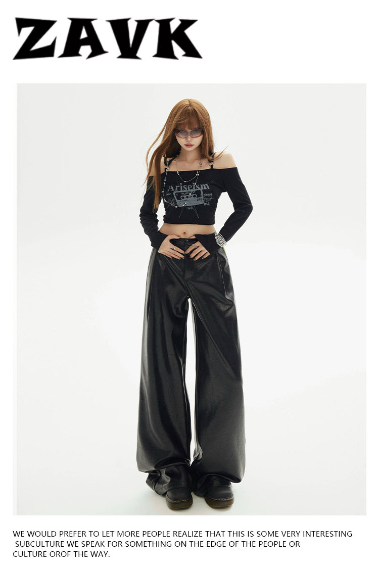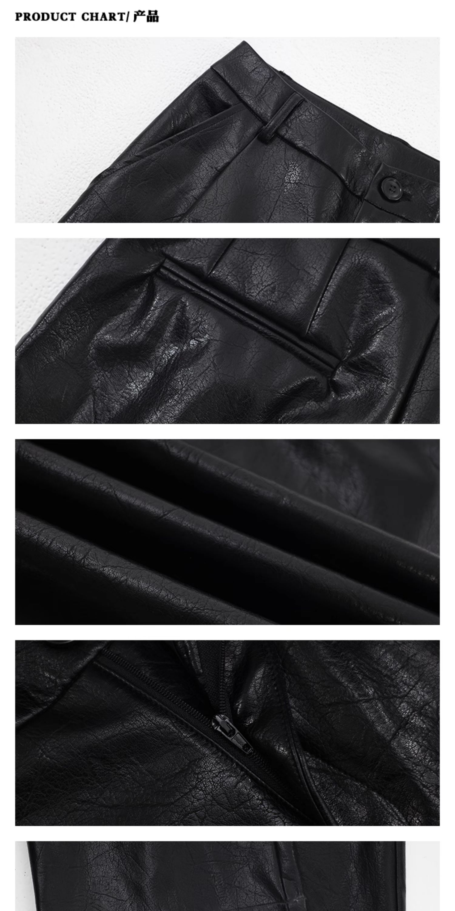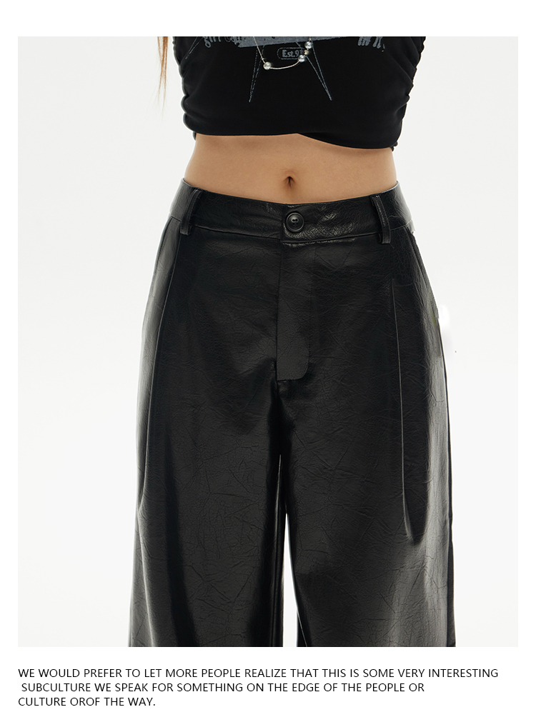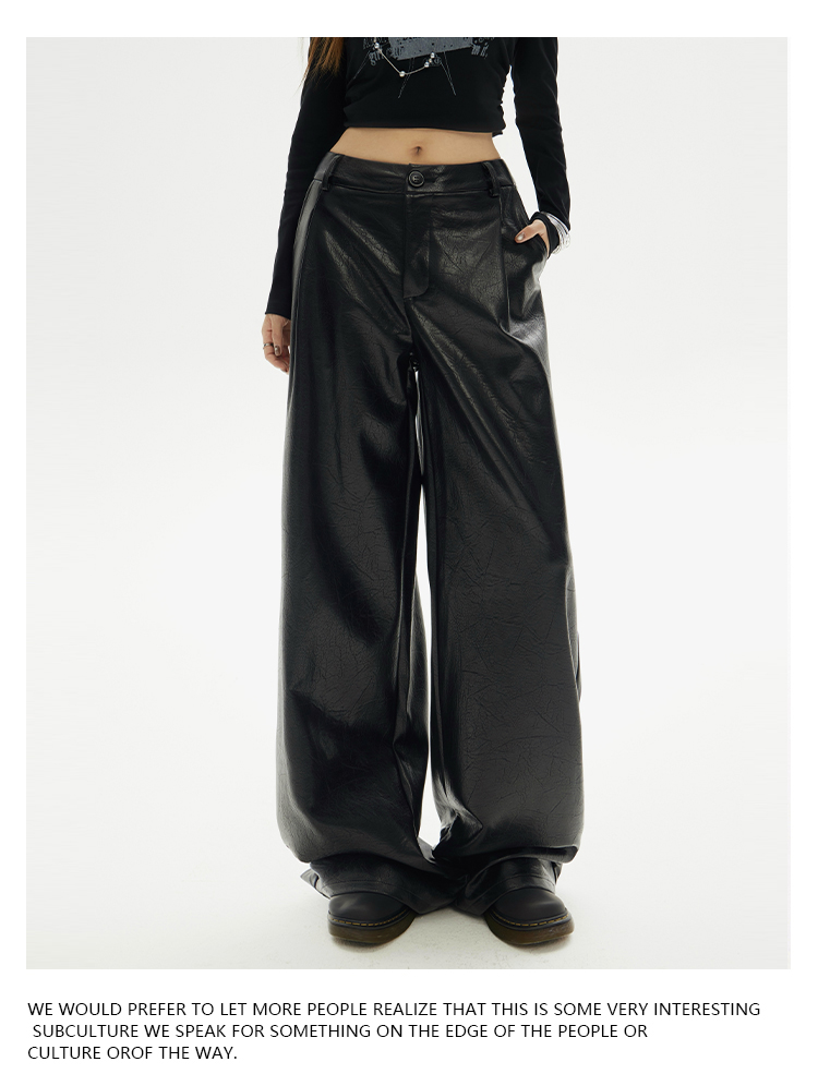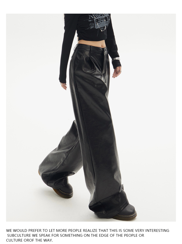 ZAVK High Waist Loose and Thin Straight Leather Pants
