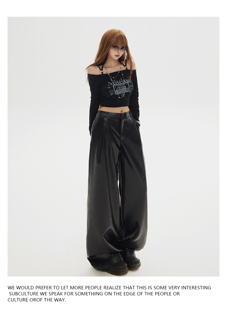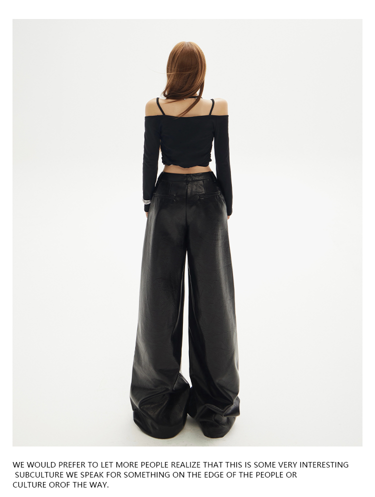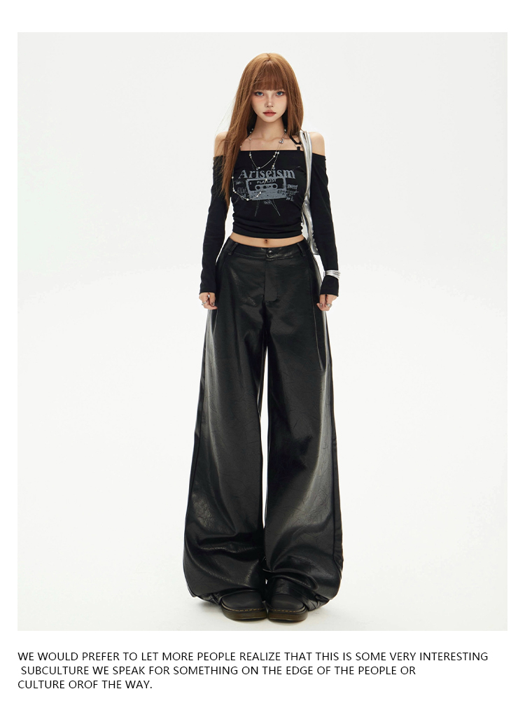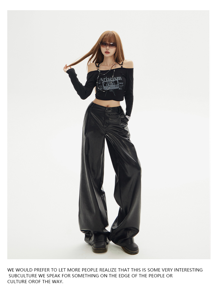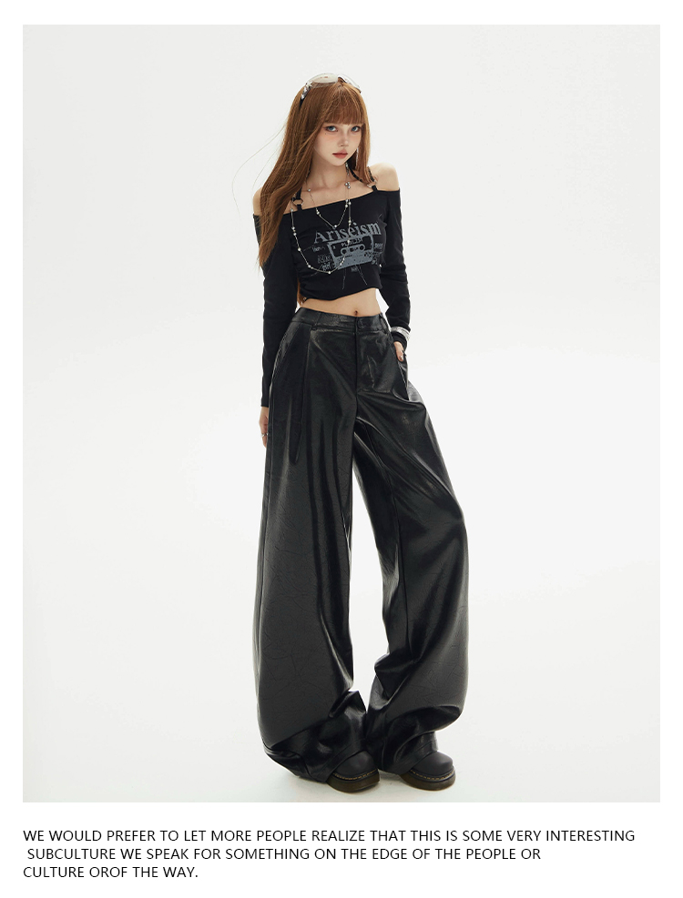 ZAVK High Waist Loose and Thin Straight Leather Pants