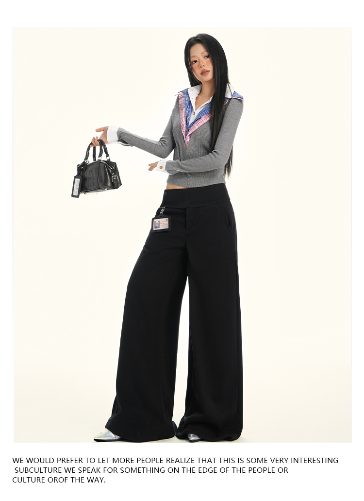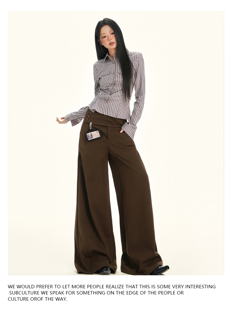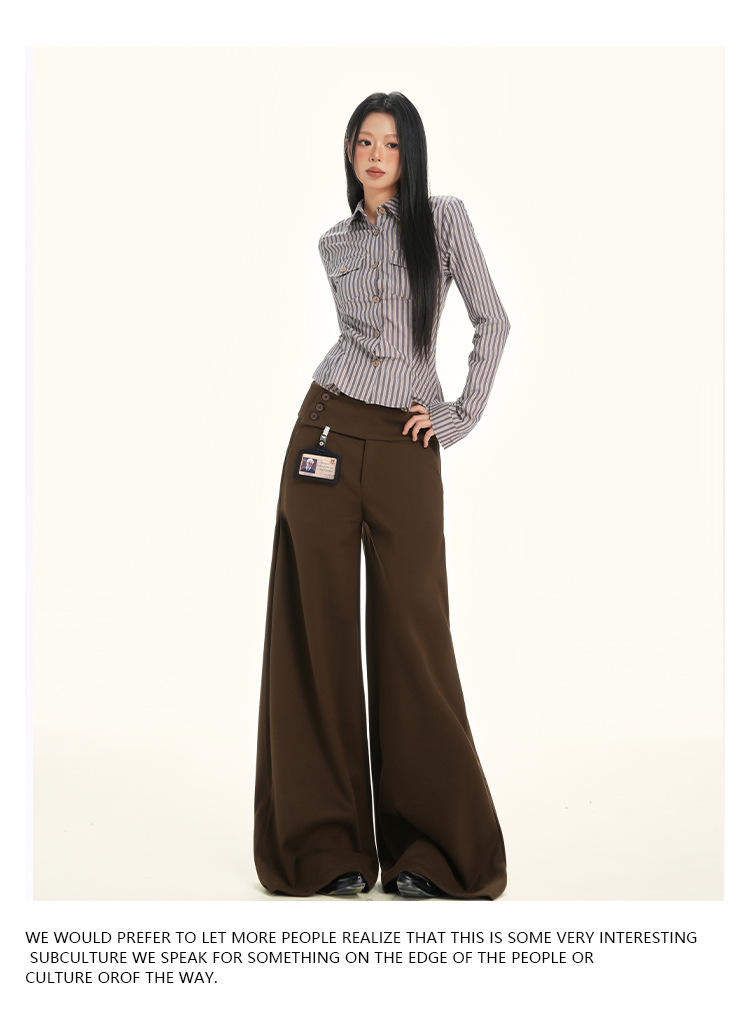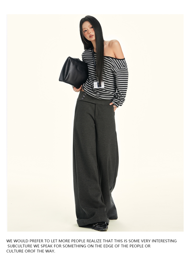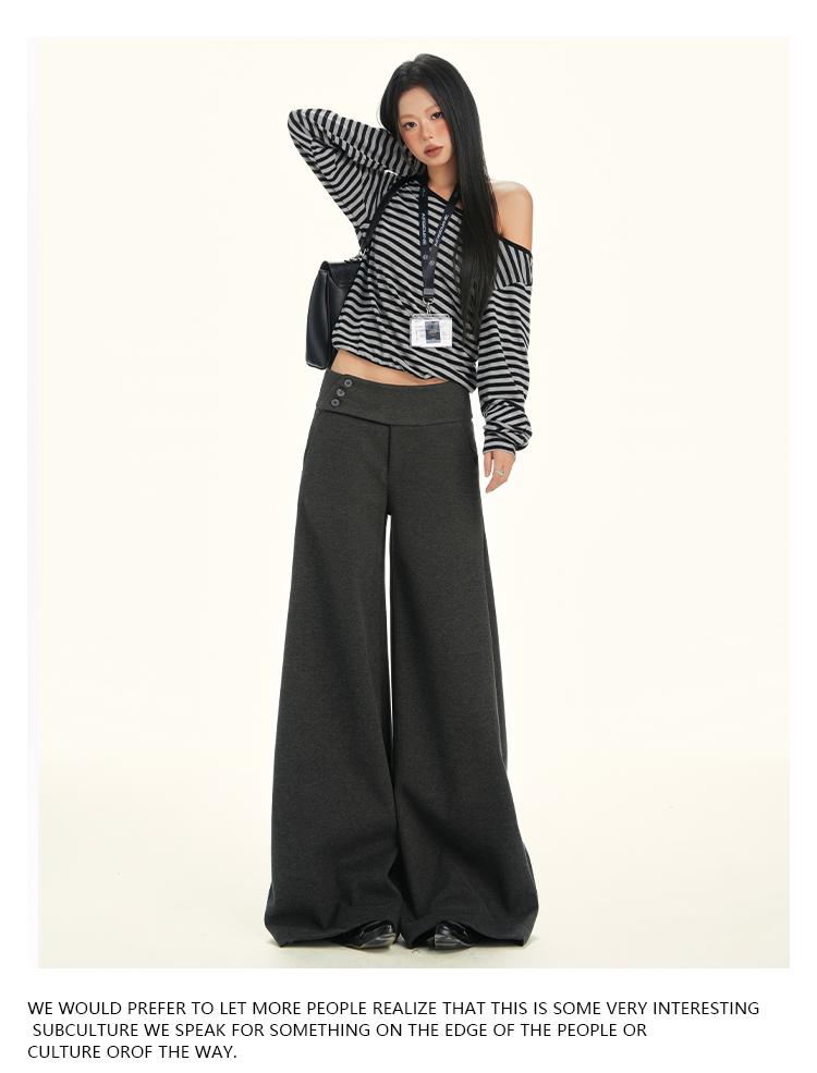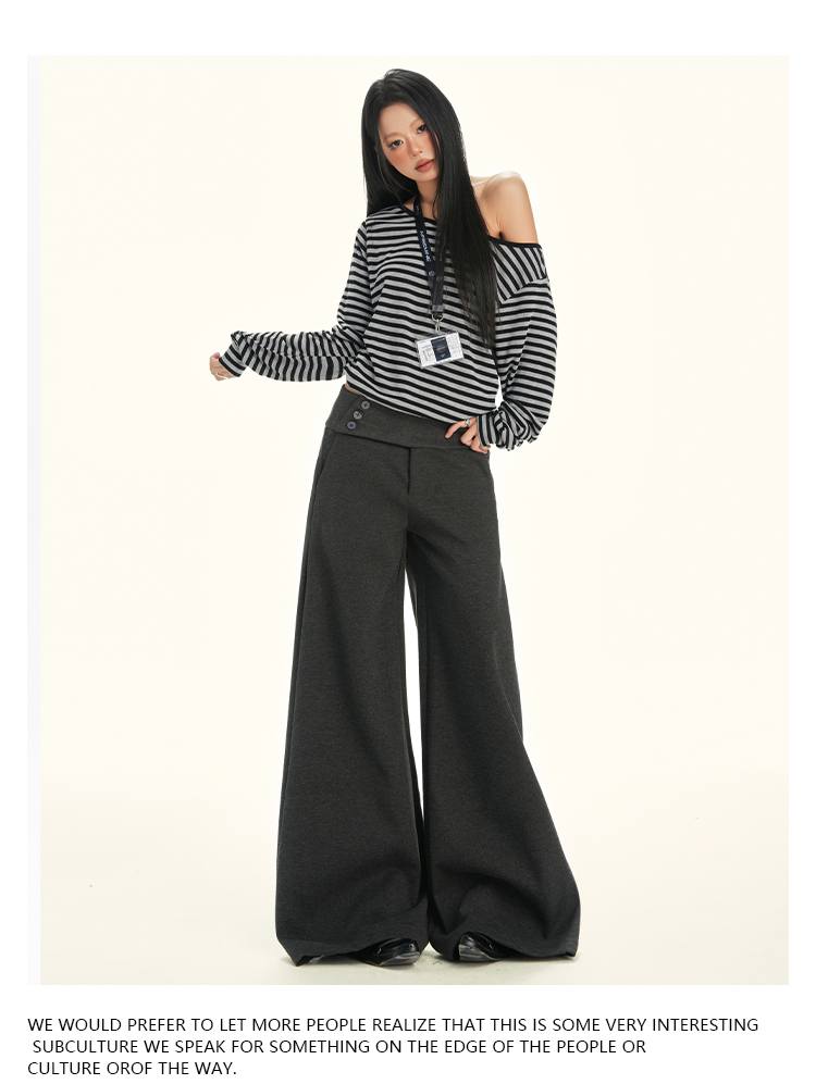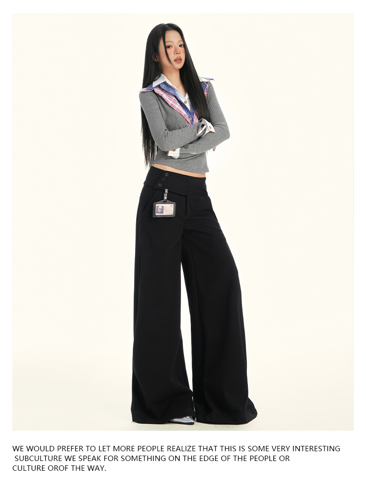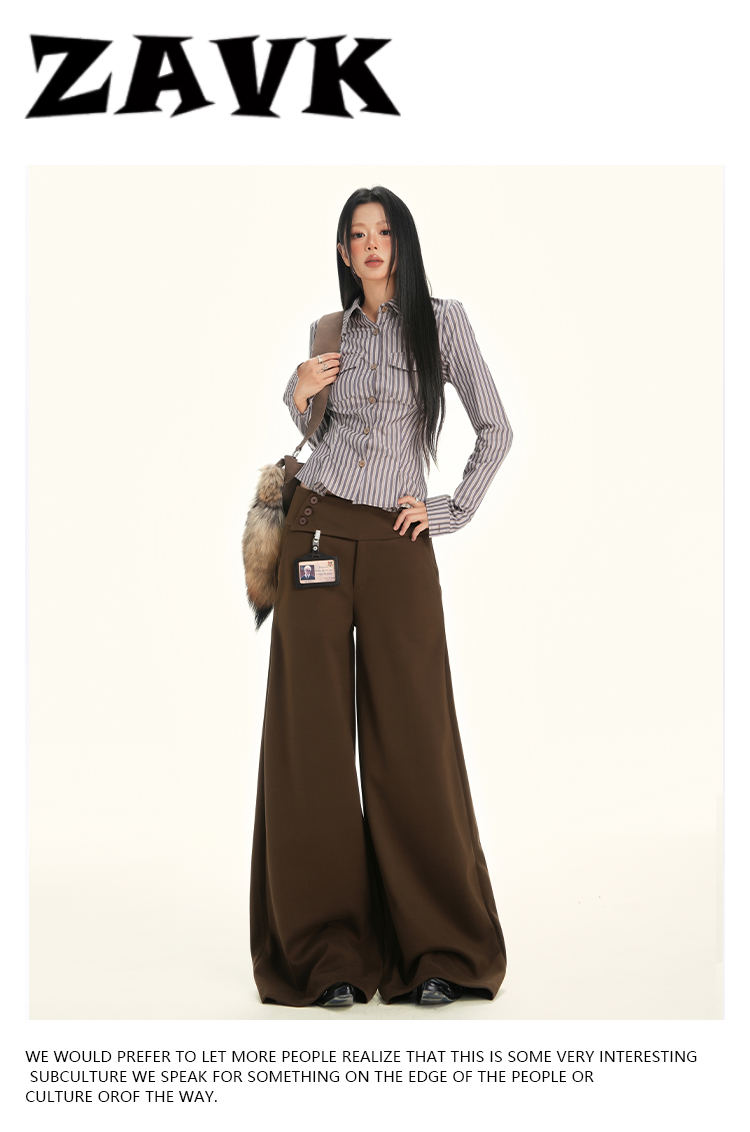 ZAVK Side Waist Button Skinny Wide Leg Pants