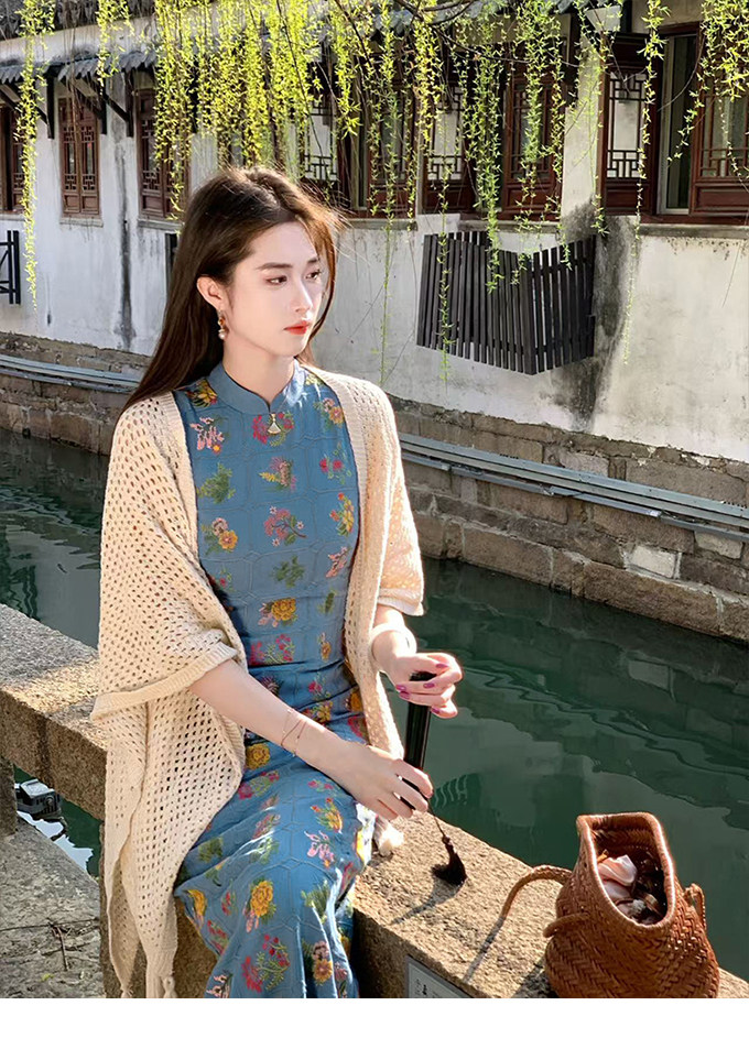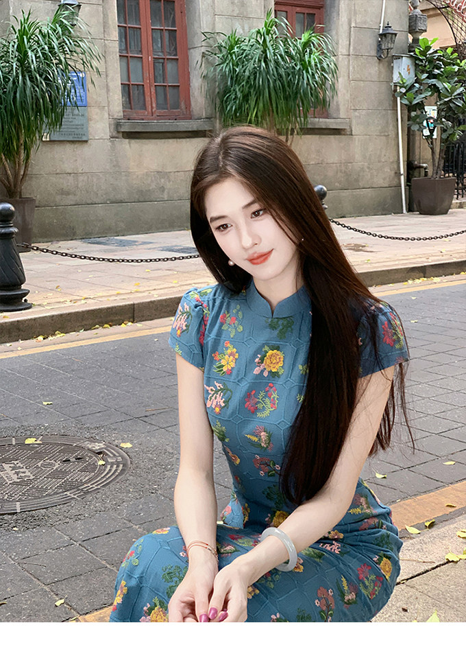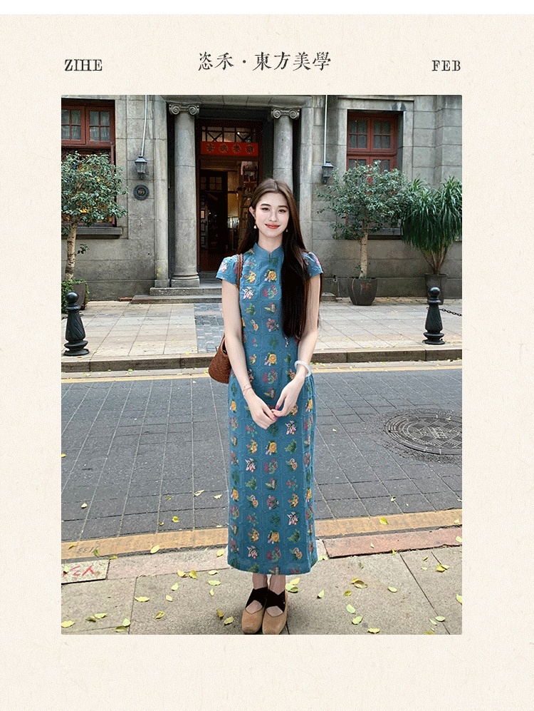 ZIHE Floral Embroidered Pinched Waist Dress