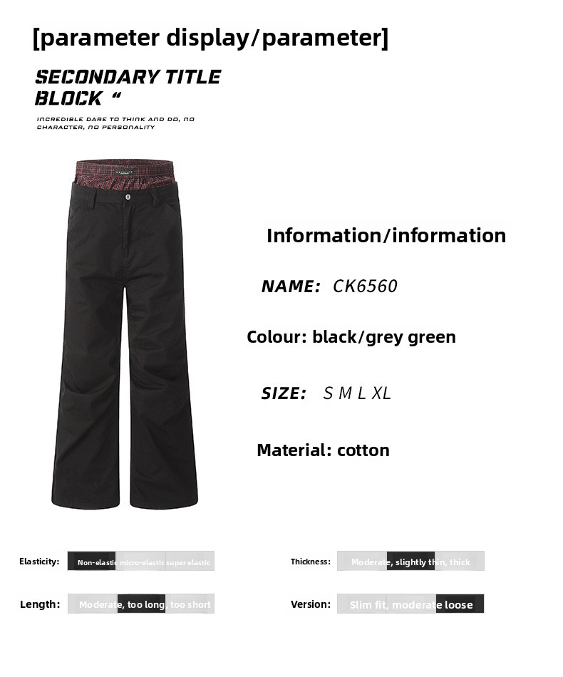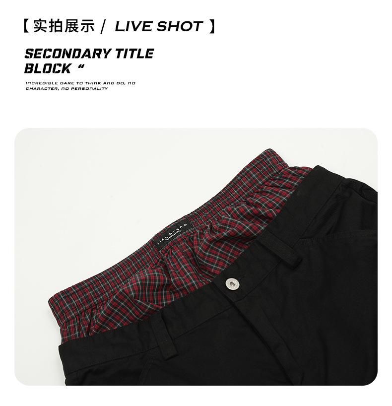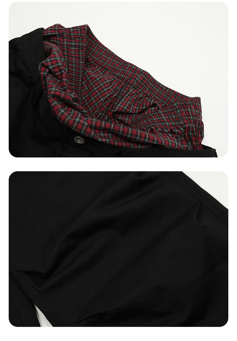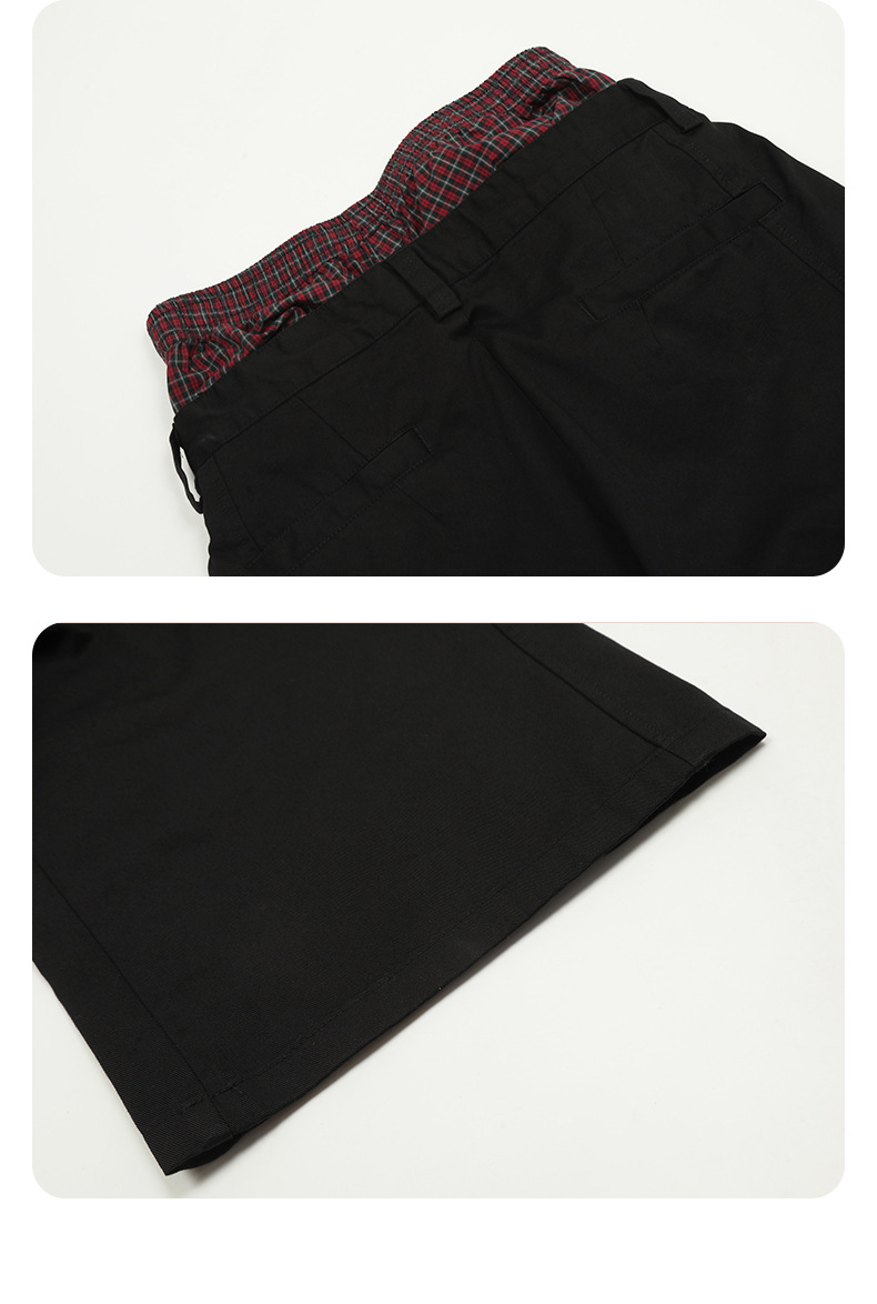 11KN Plaid Splicing Casual Straight-leg Pants