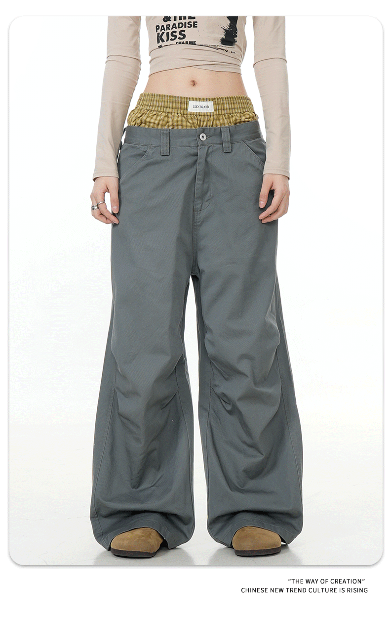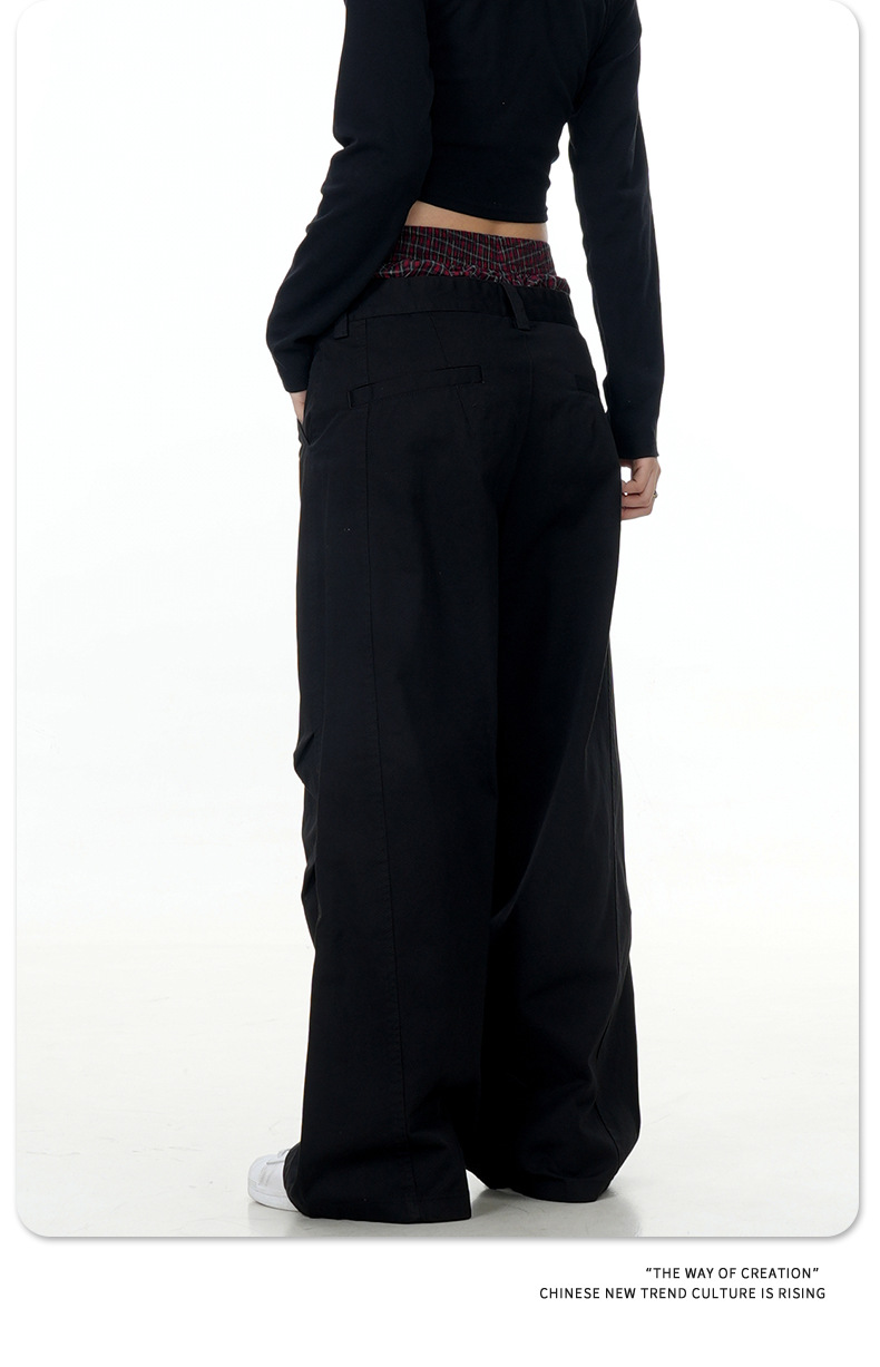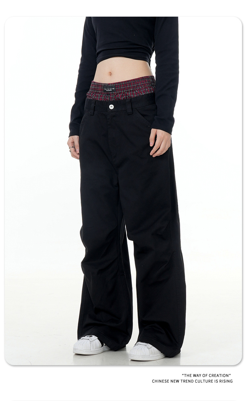 11KN American retro 2024 niche double waisted design with side pockets, wide legs, straight leg casual pants, cross-border