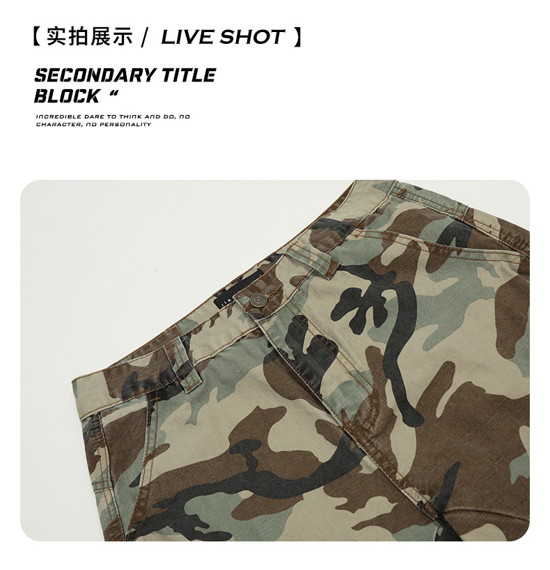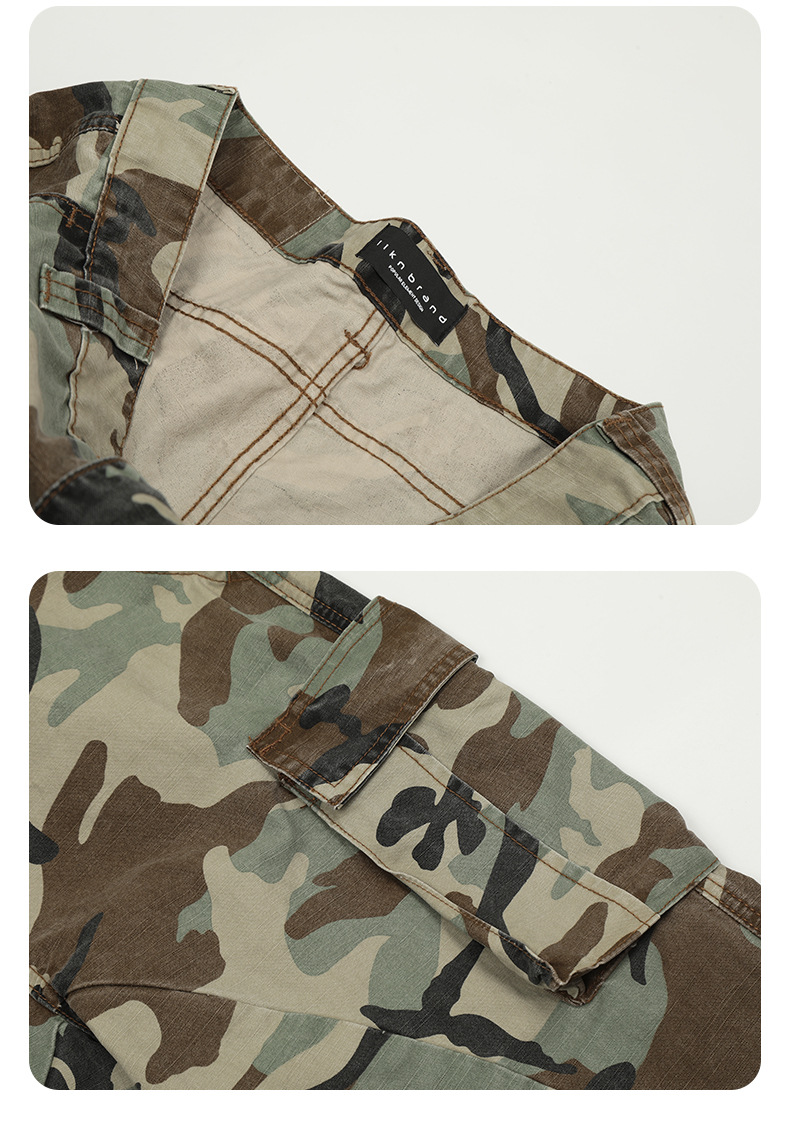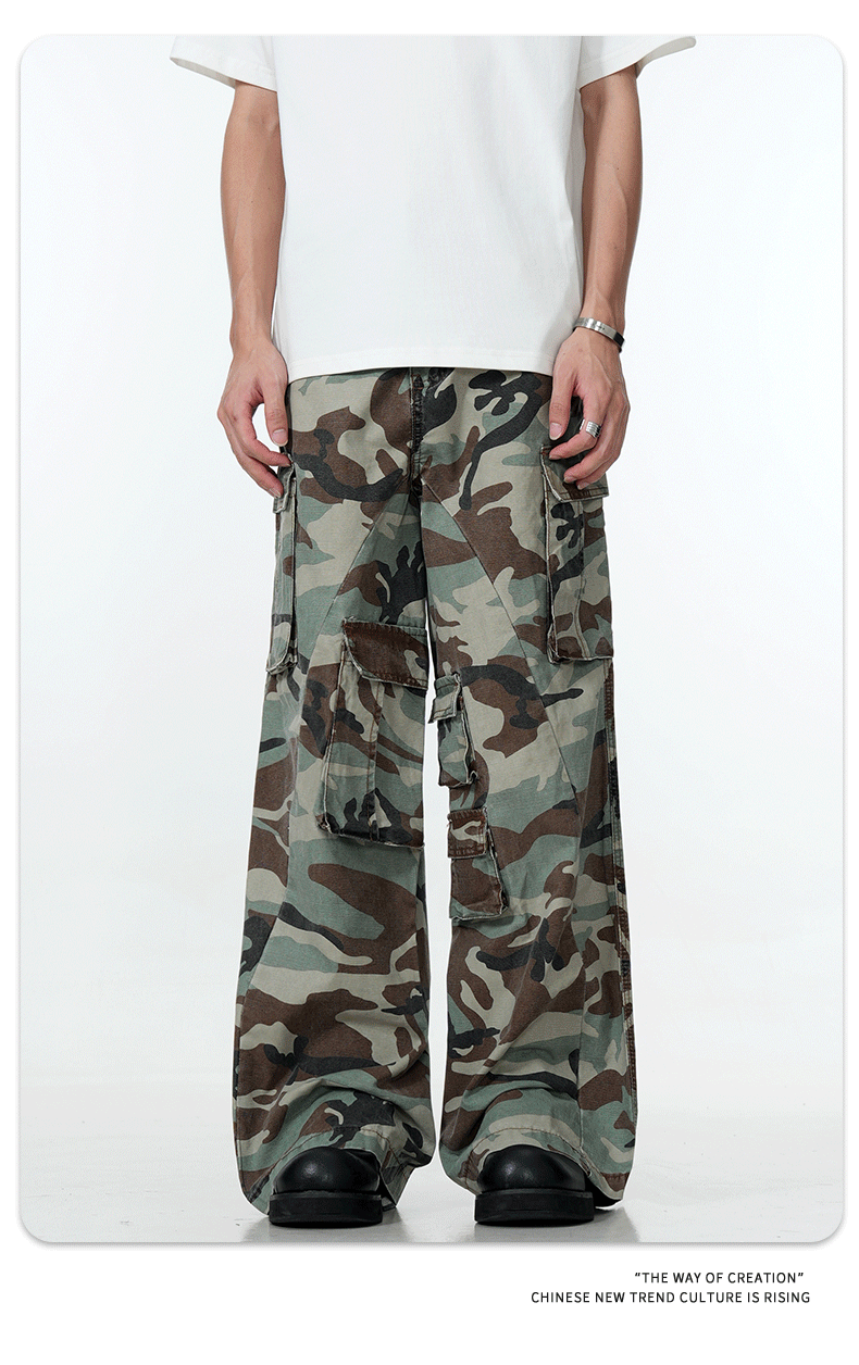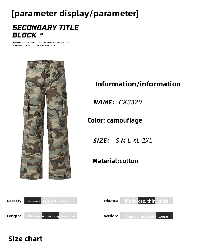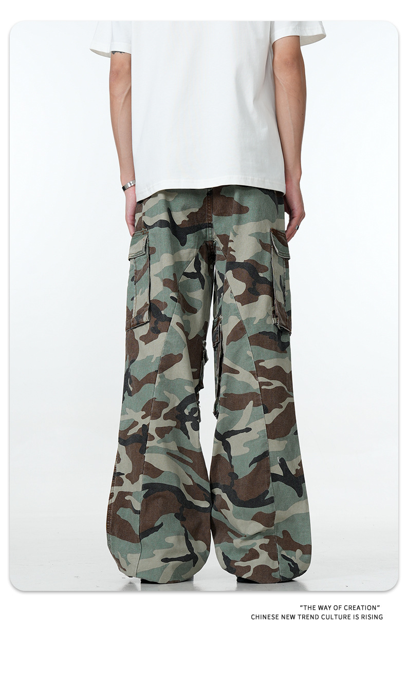 11KN American high street camouflage work pants, Vibe style loose straight leg multi pocket design, wide leg long pants, cross-border