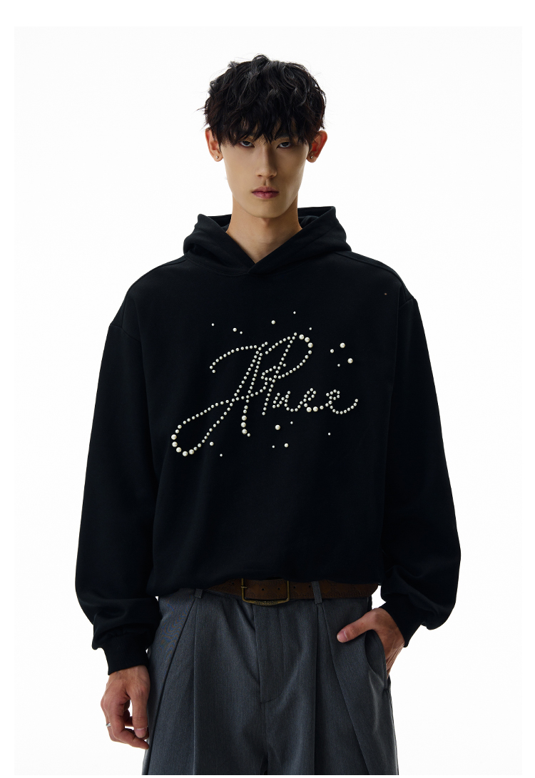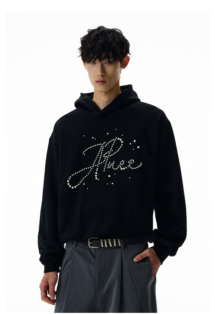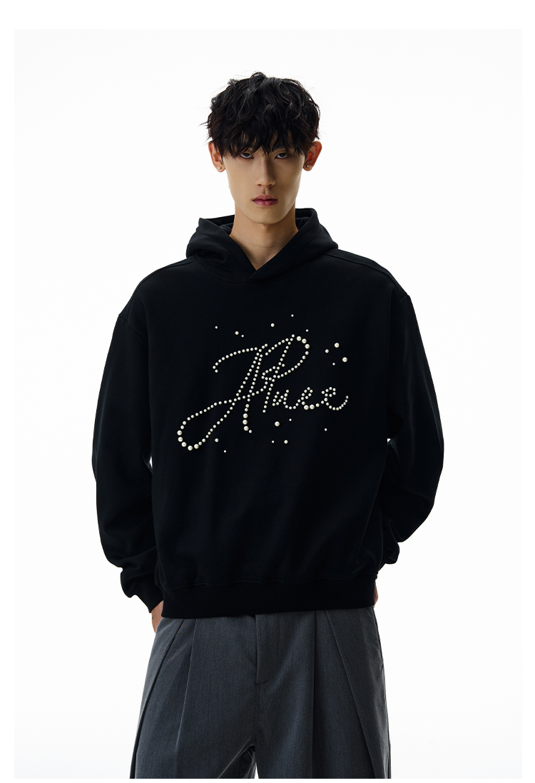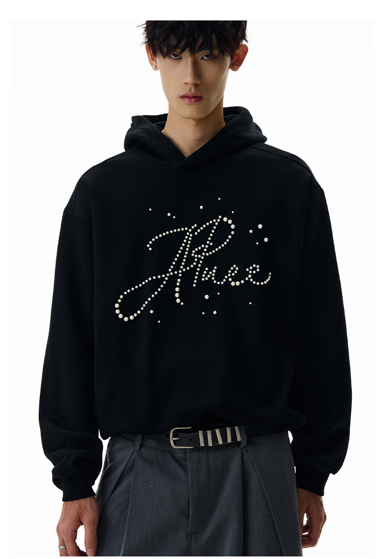 A PUEE Letter Pearl Short Front Shoulder Ruffian Sweater