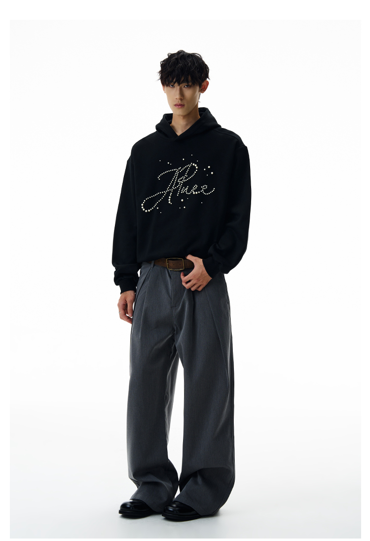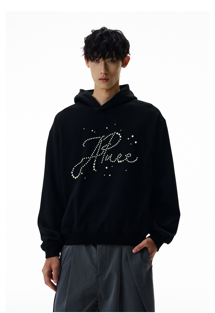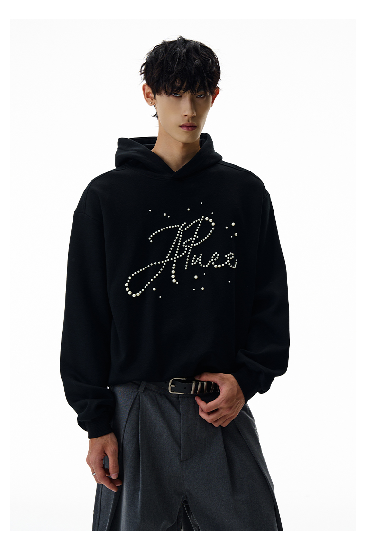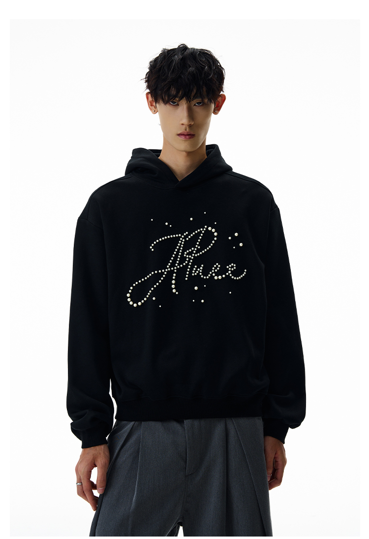 A PUEE Letter Pearl Short Front Shoulder Ruffian Sweater