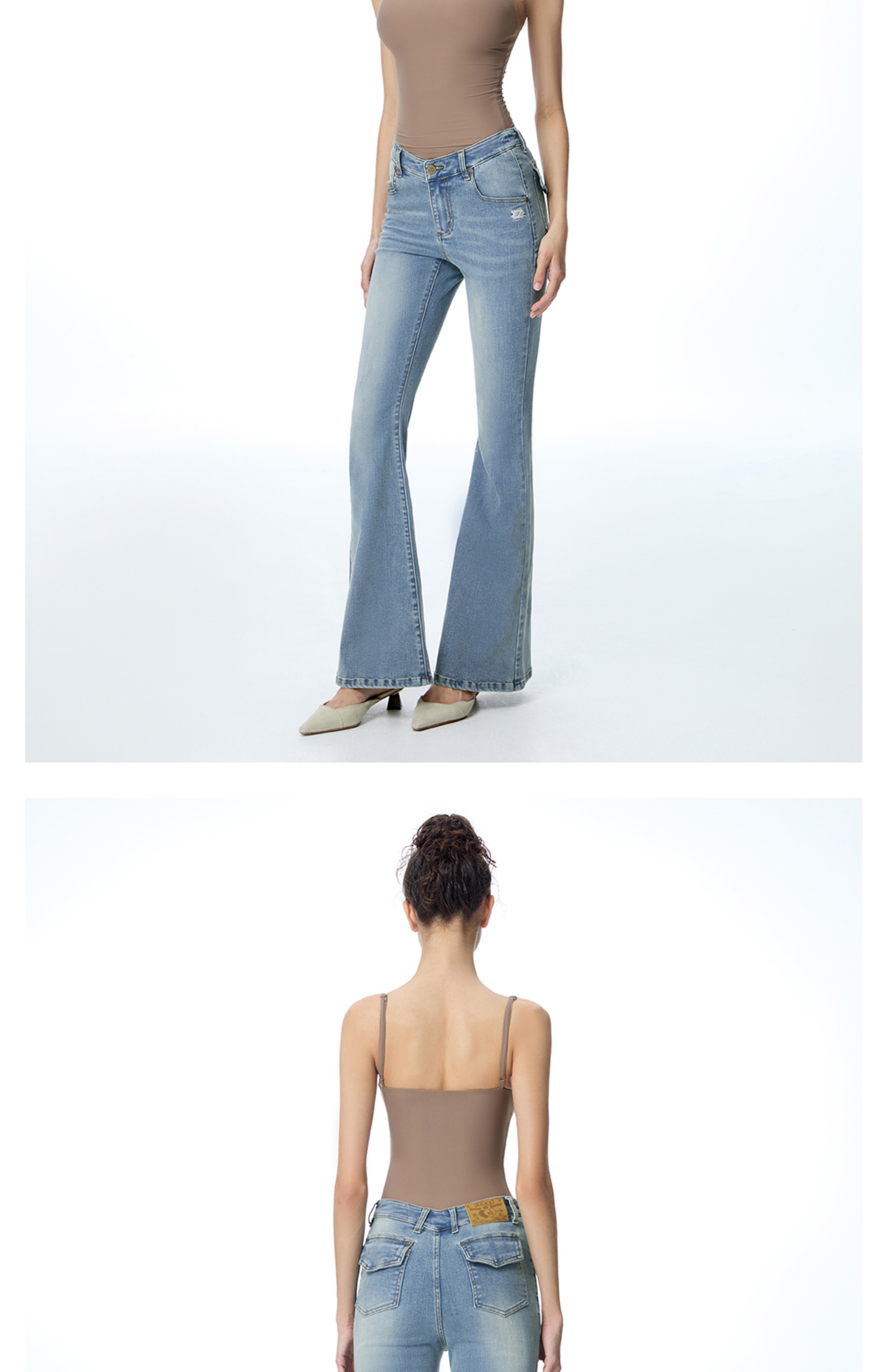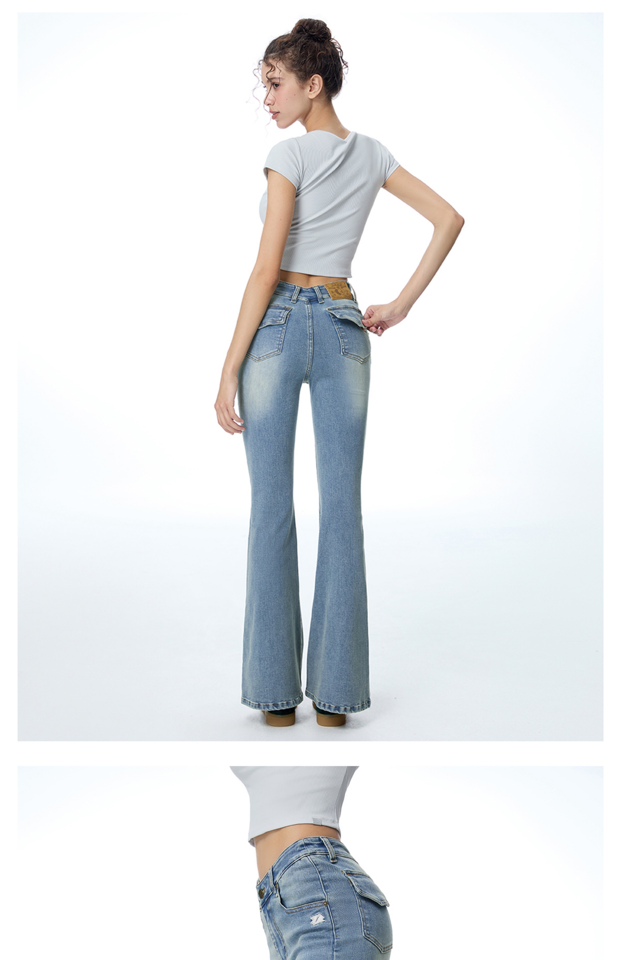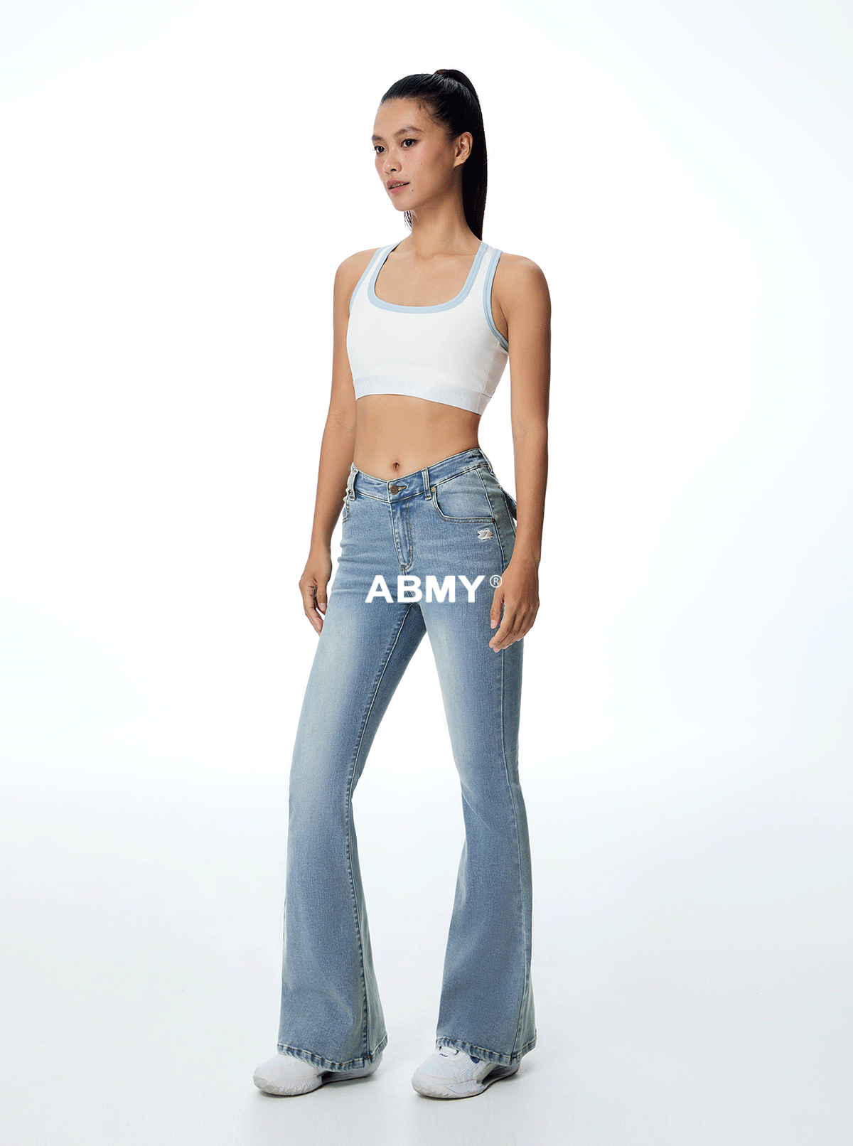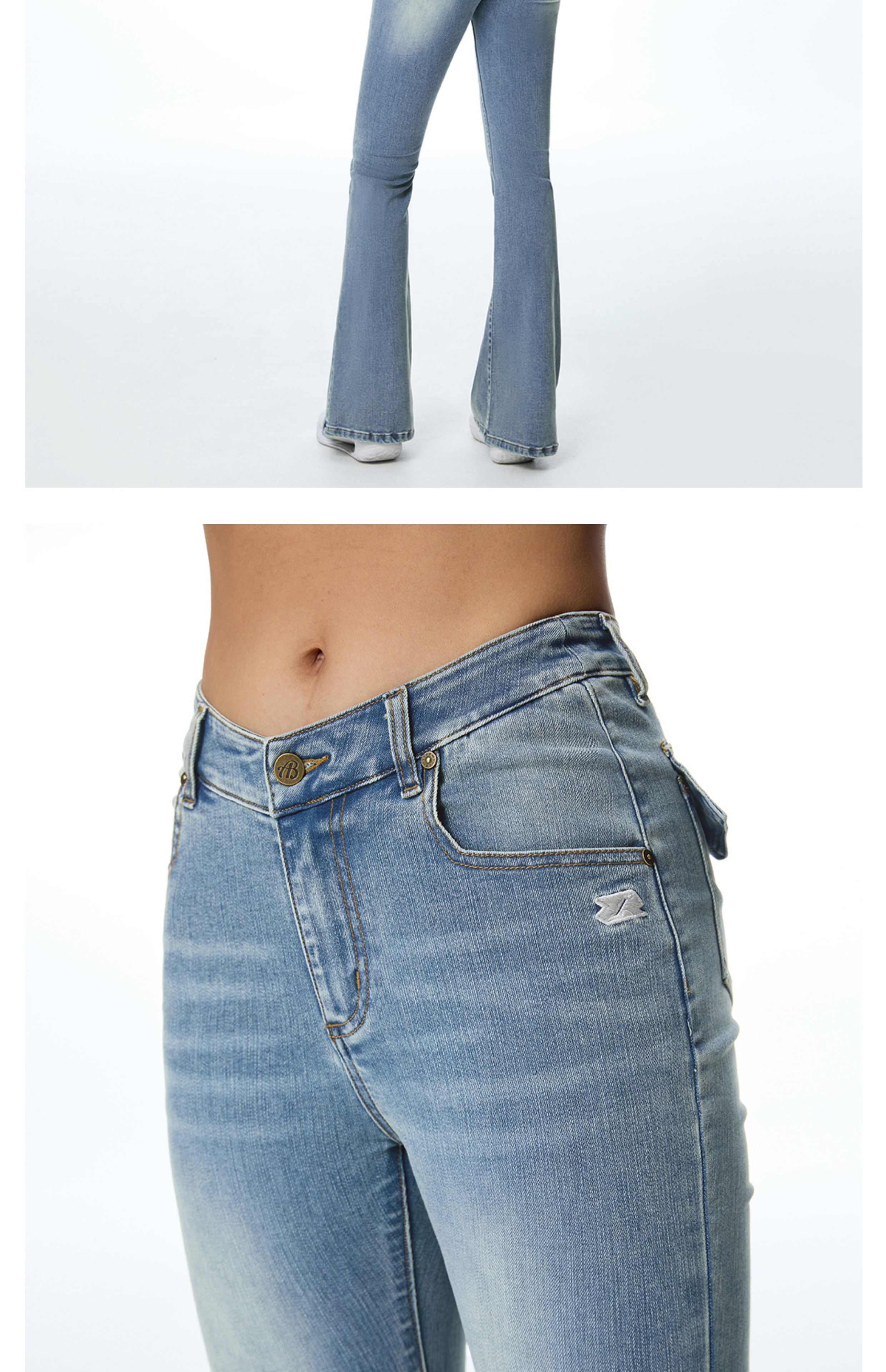 ABMY V Waist Slightly Stretched and Thin Denim Flared Pants