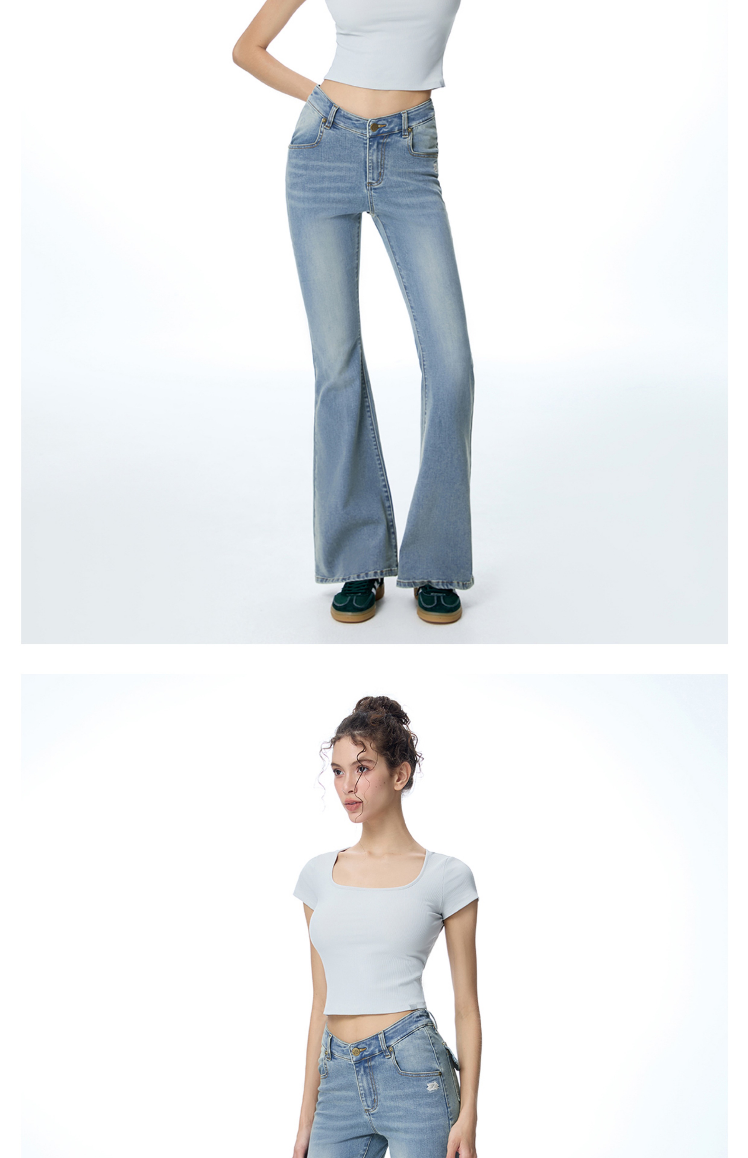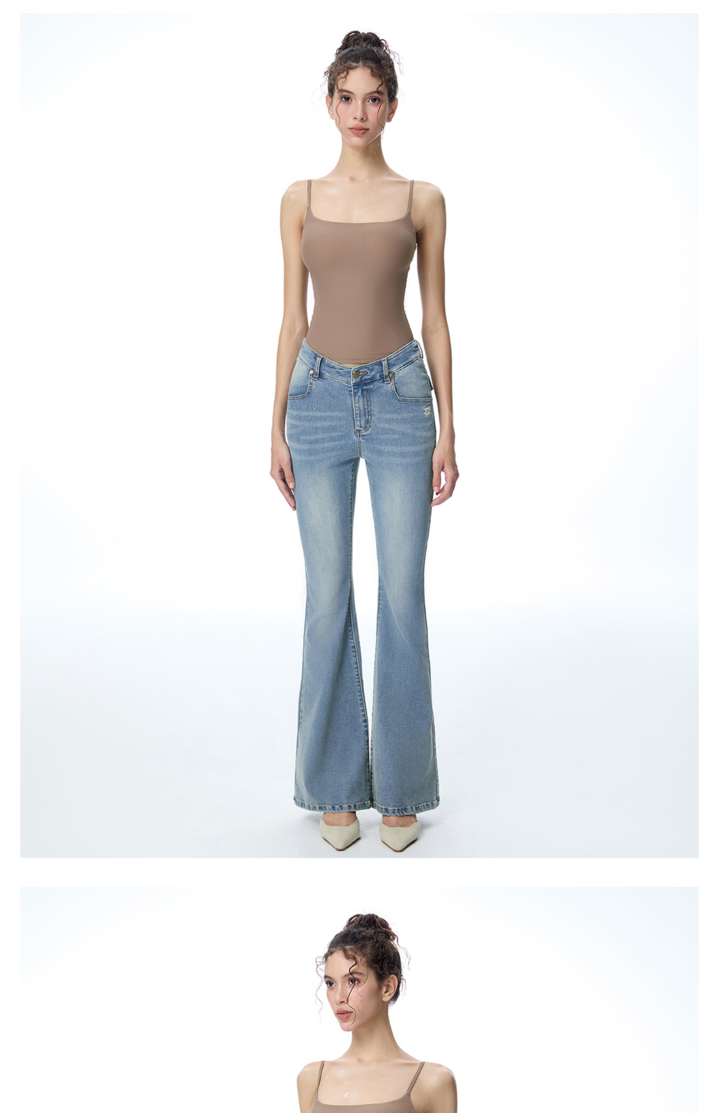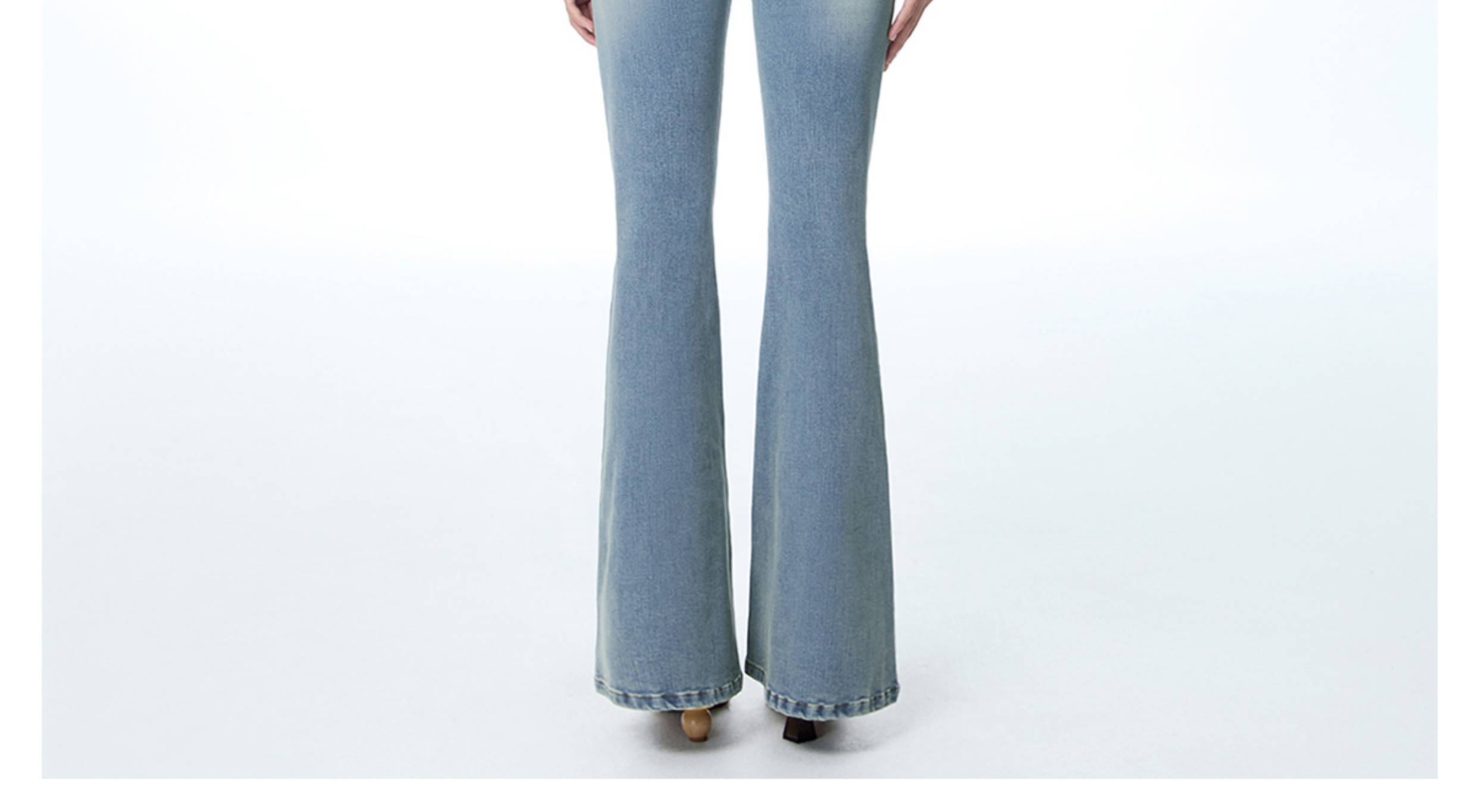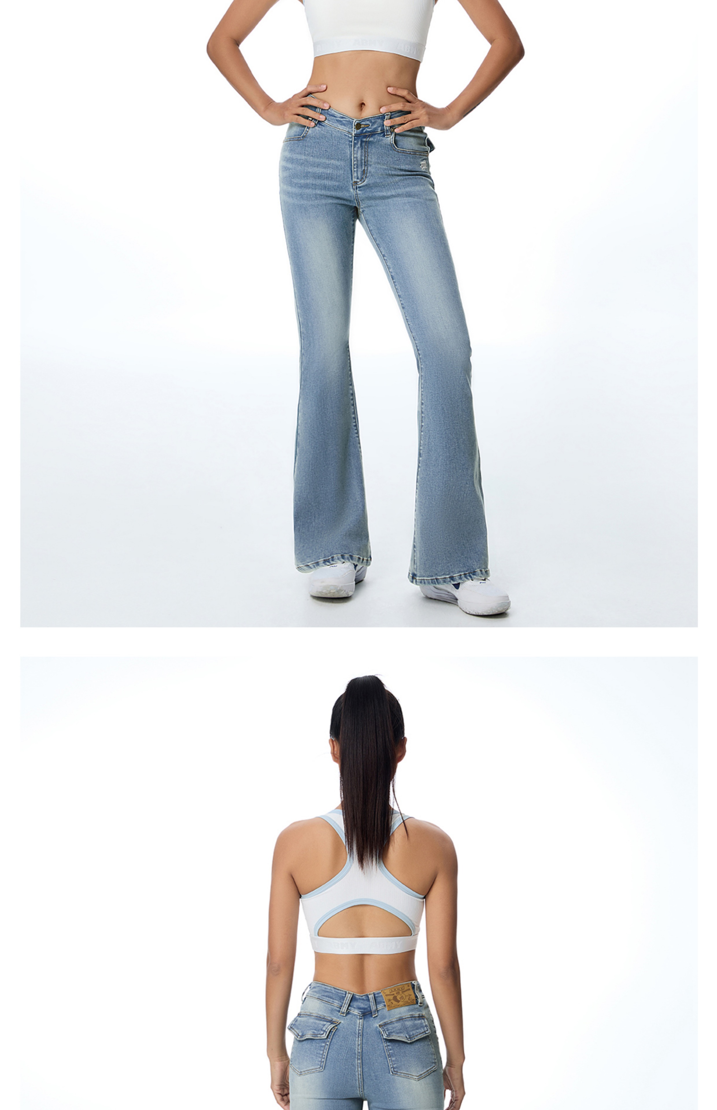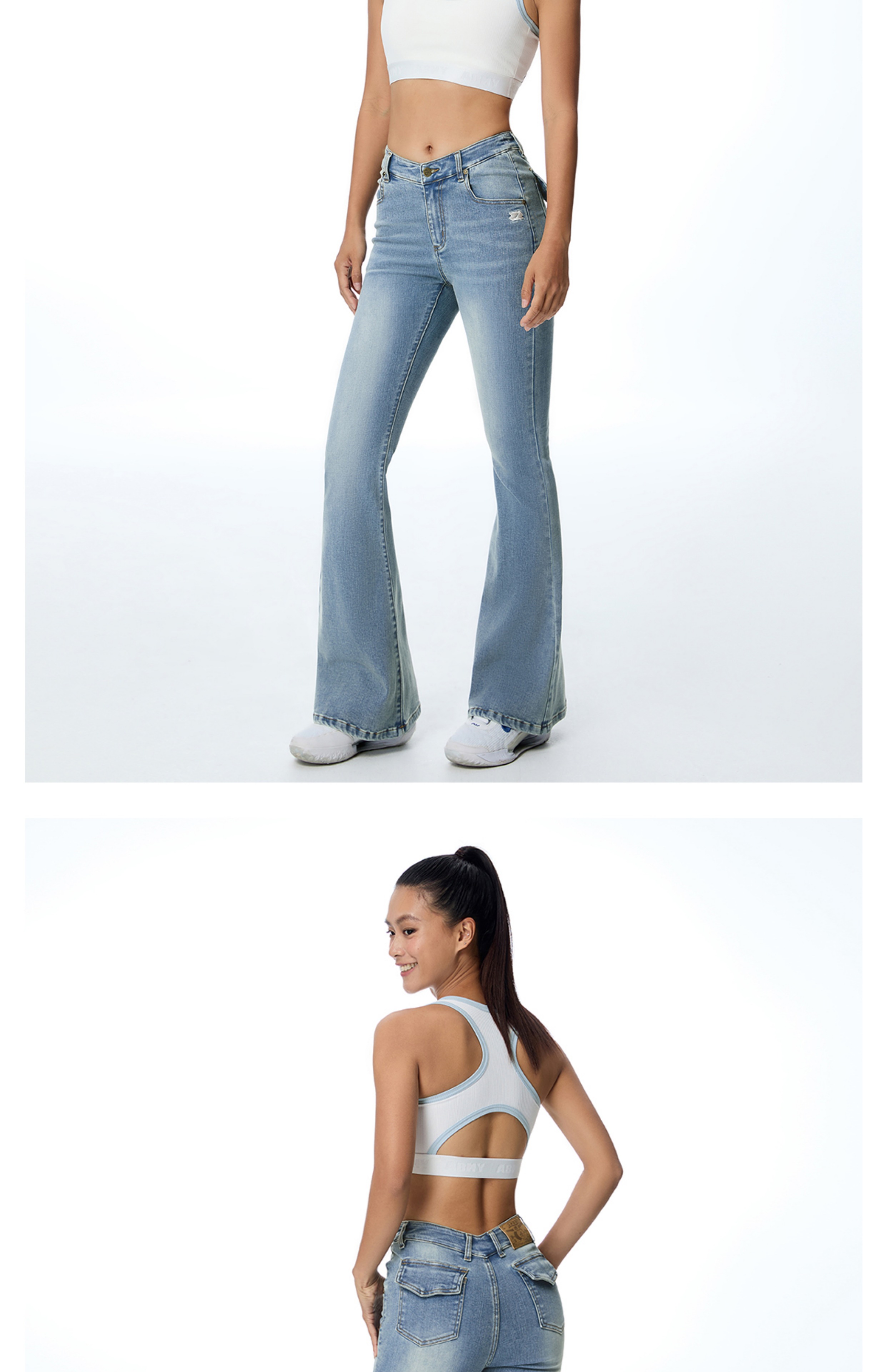 ABMY V Waist Slightly Stretched and Thin Denim Flared Pants