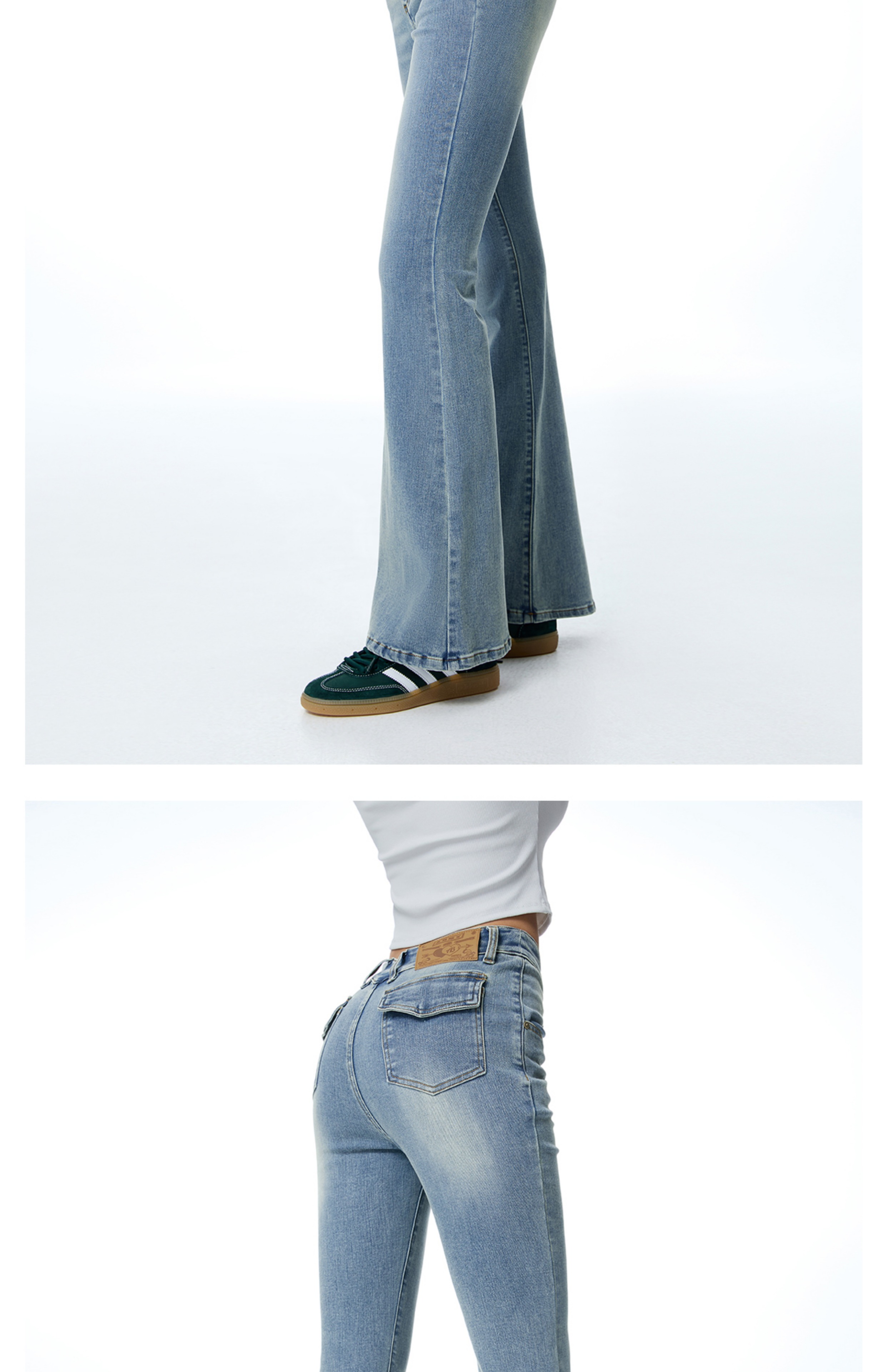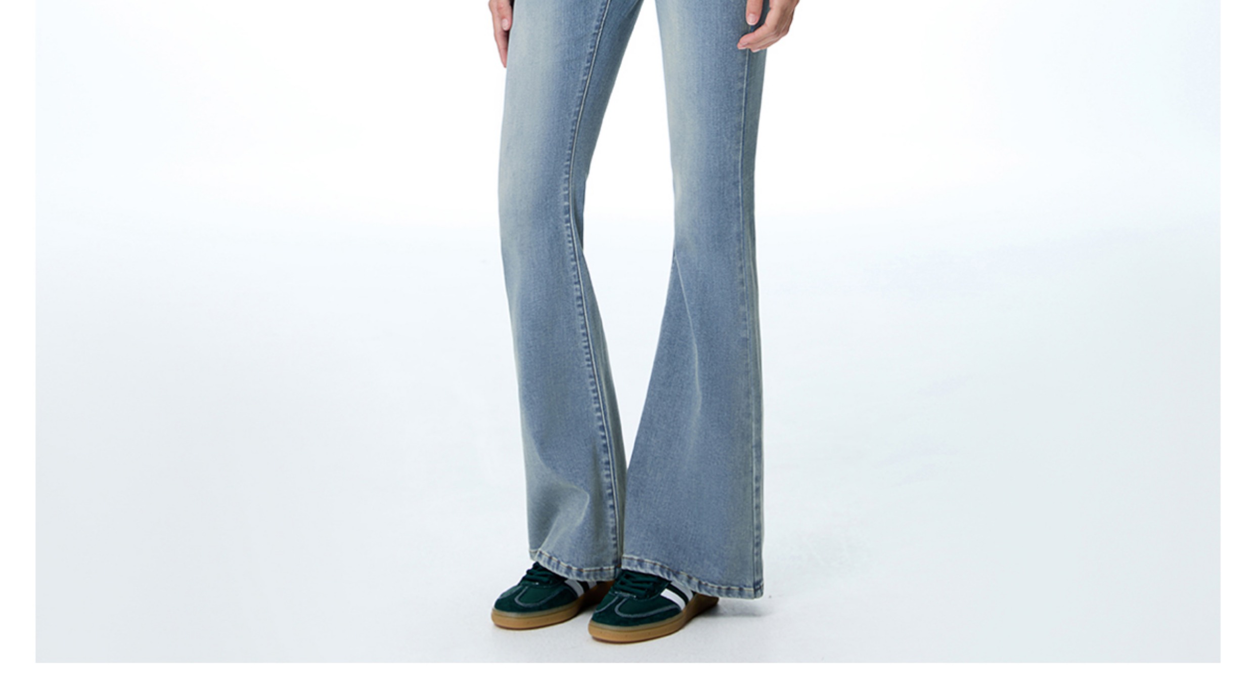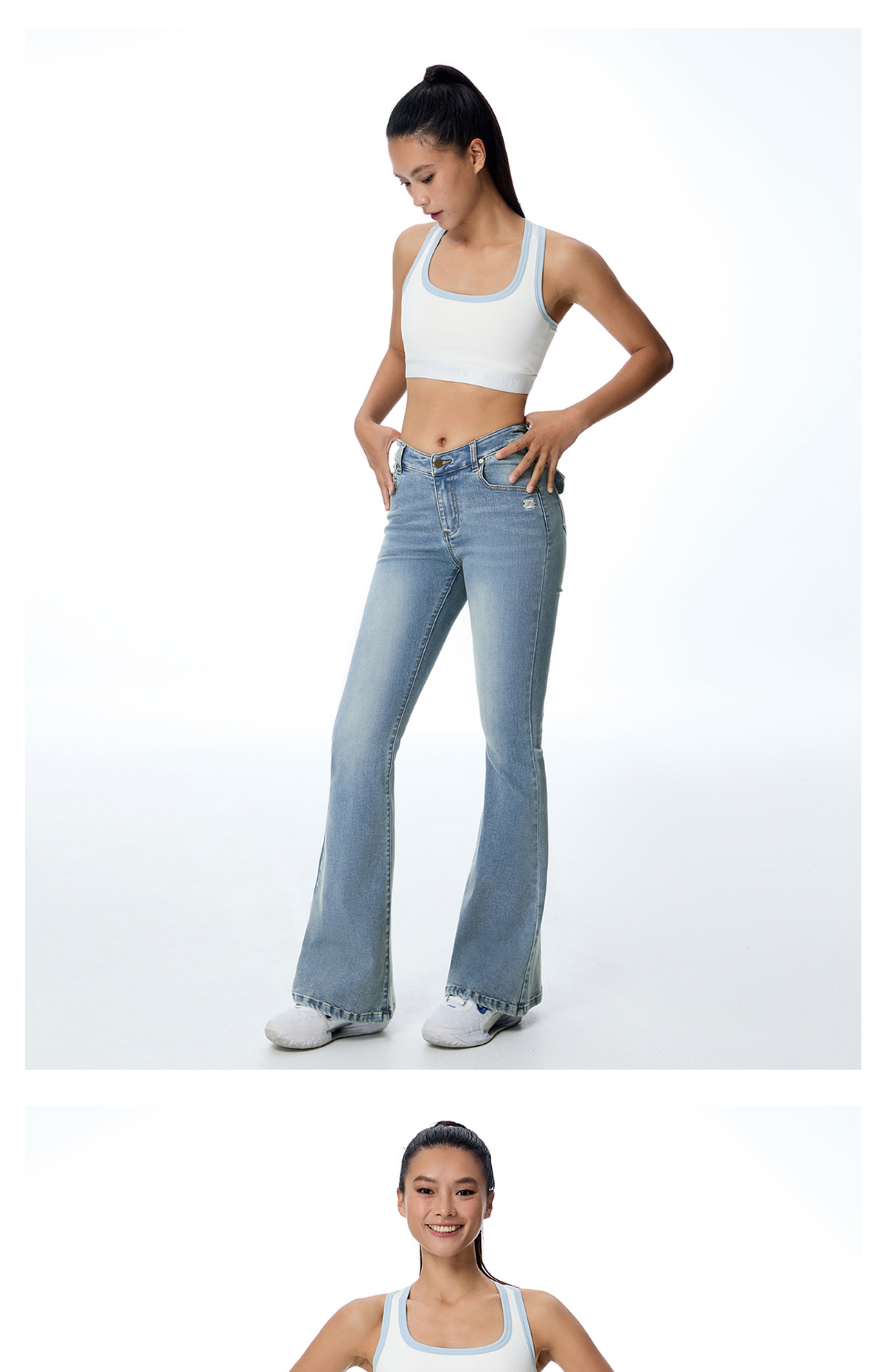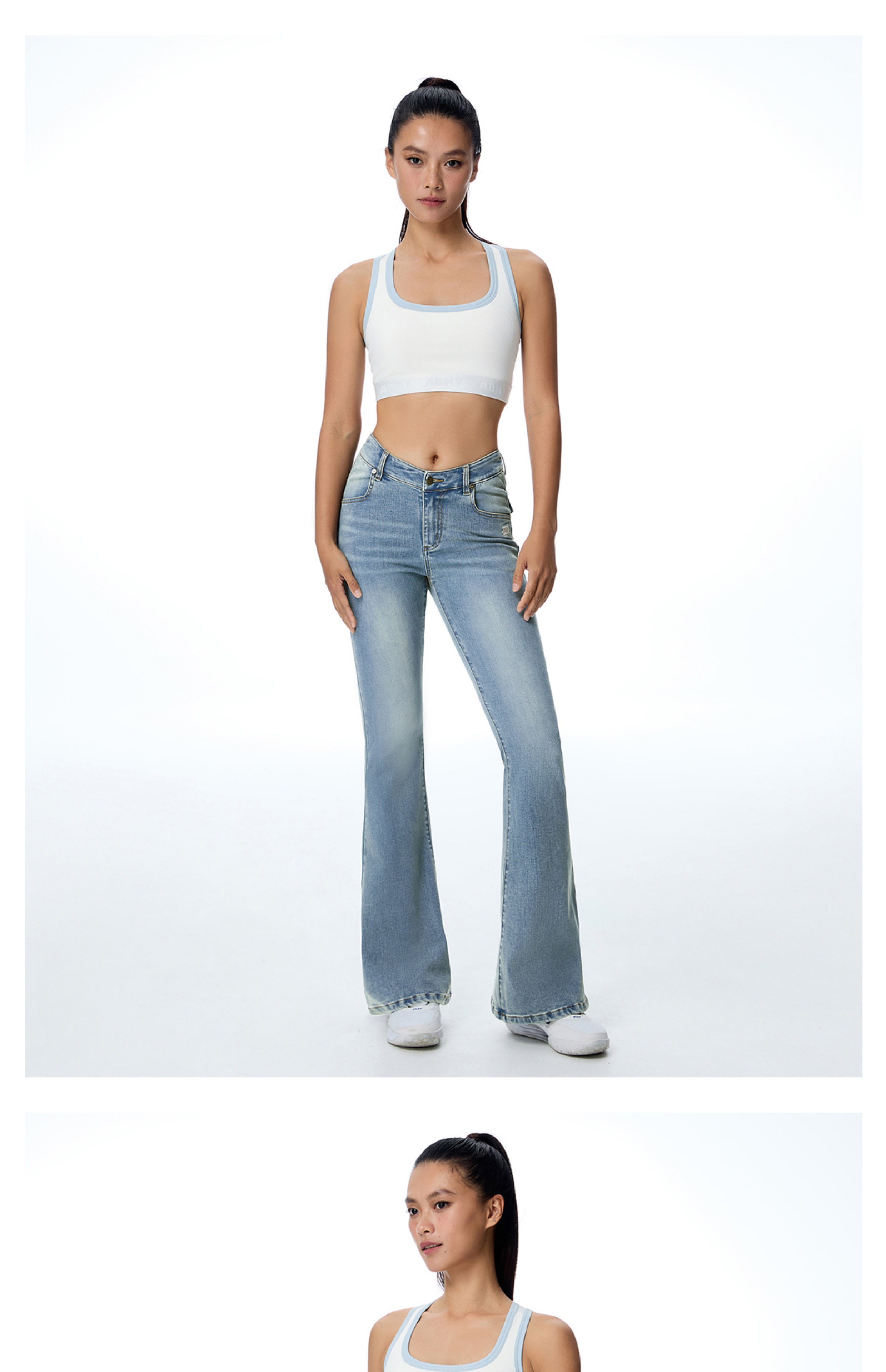 ABMY V Waist Slightly Stretched and Thin Denim Flared Pants