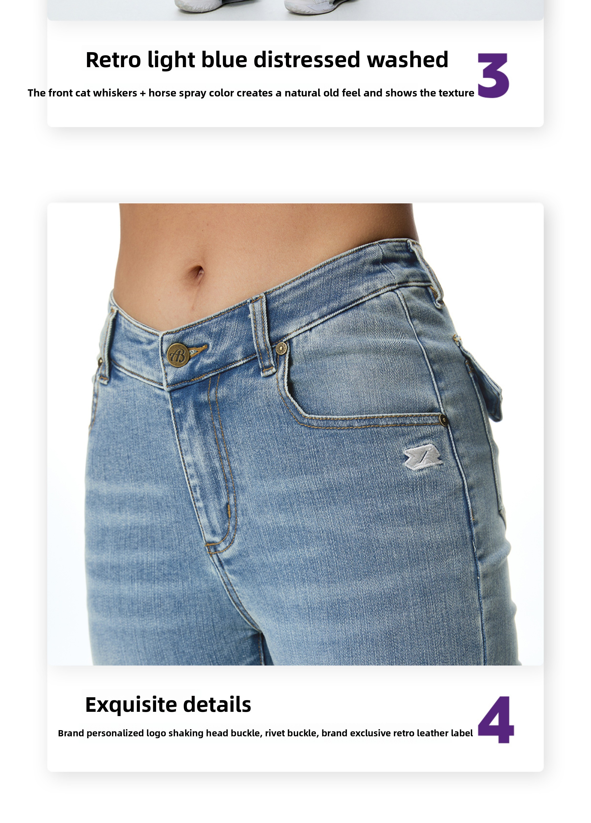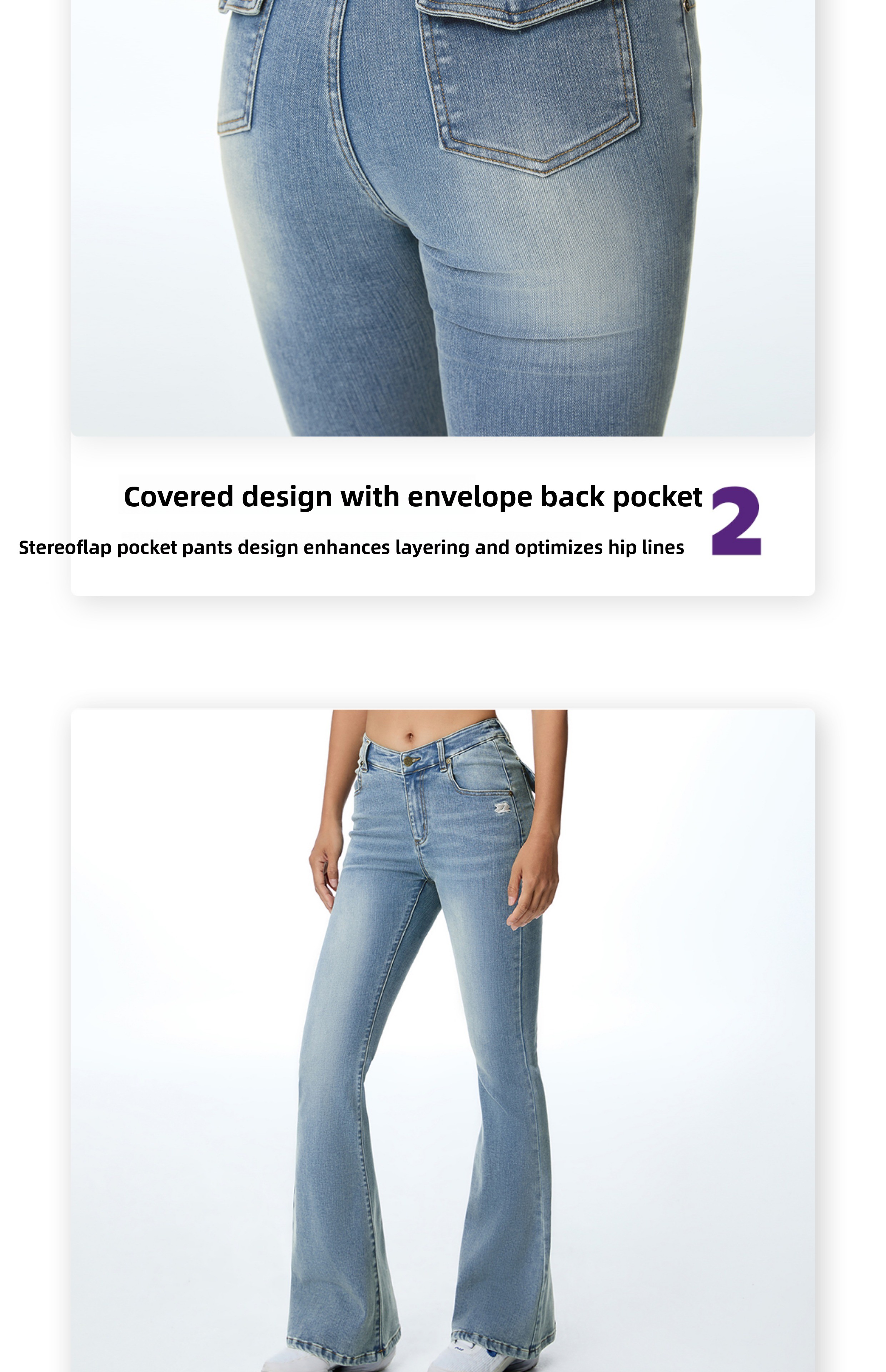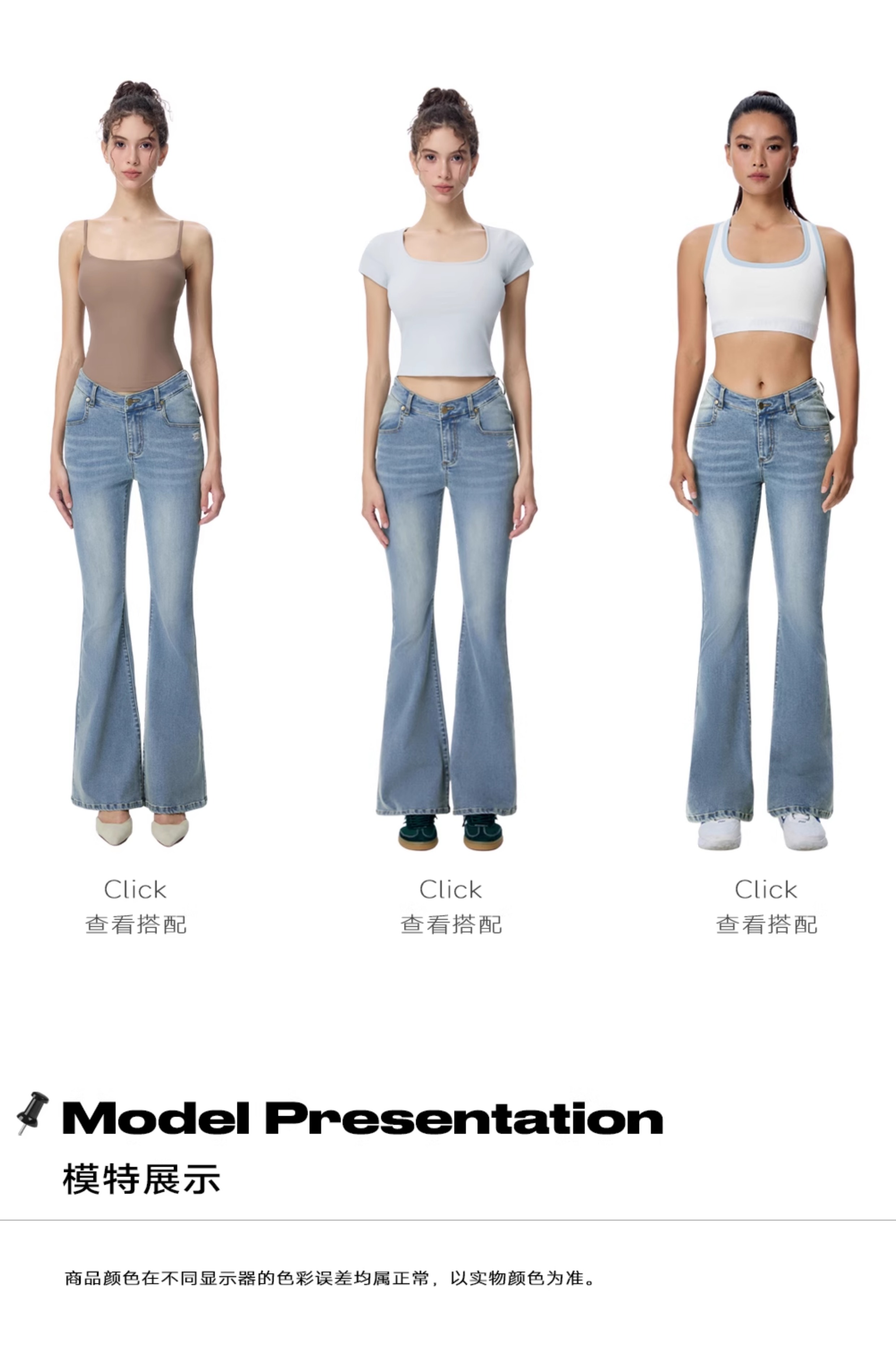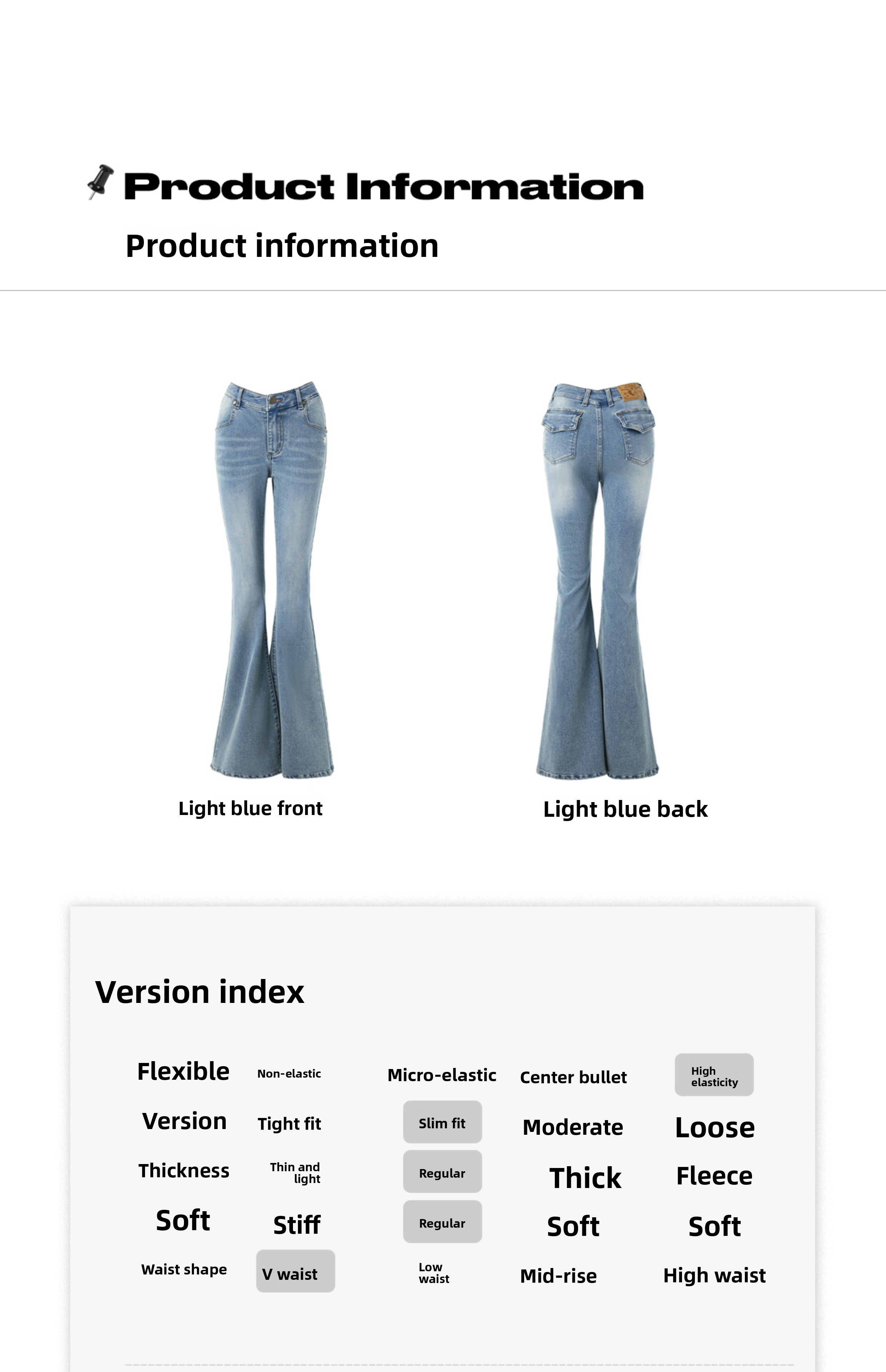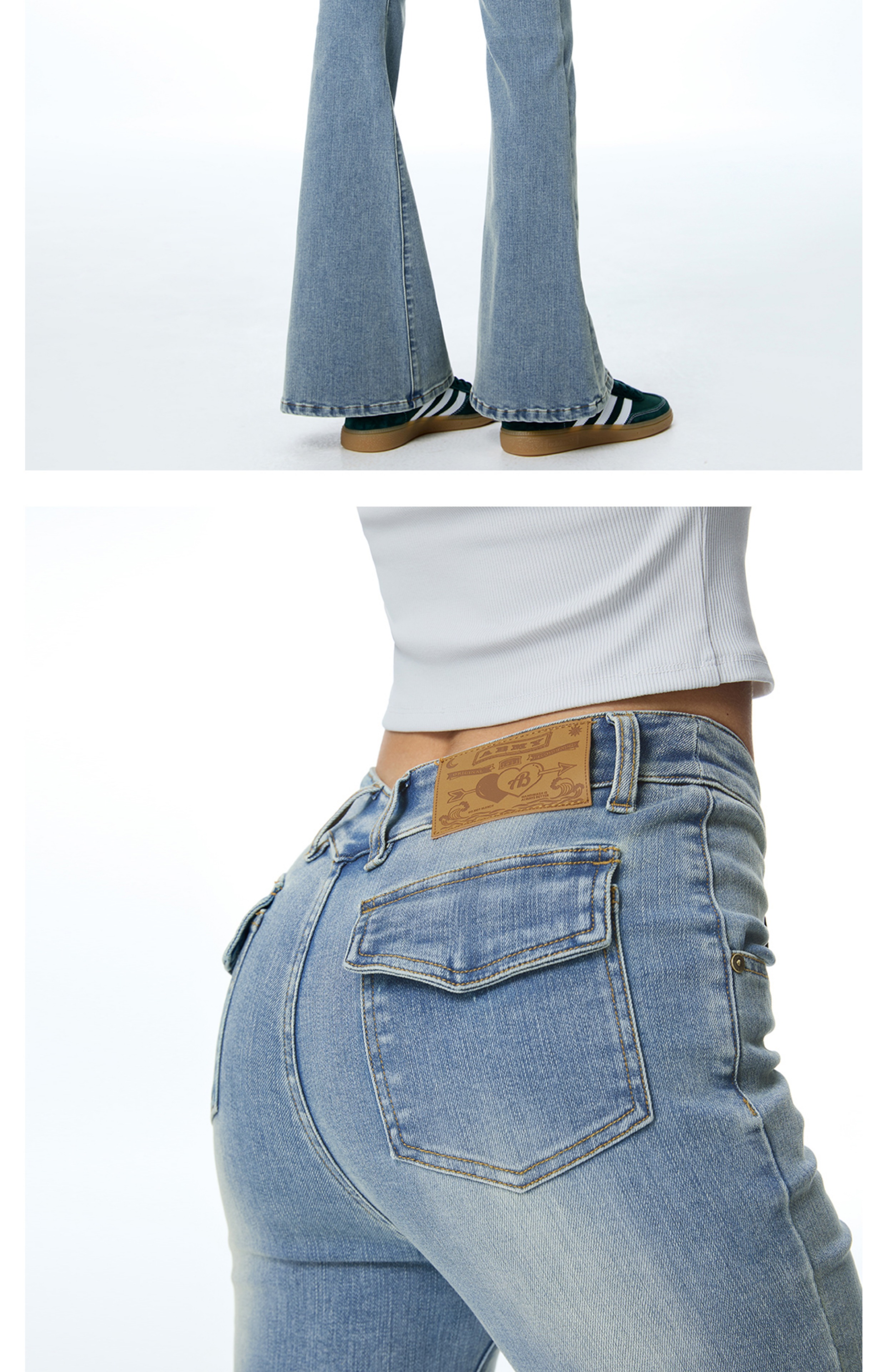 ABMY V Waist Slightly Stretched and Thin Denim Flared Pants
