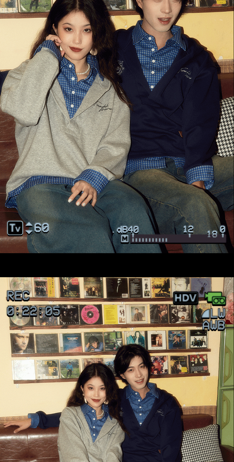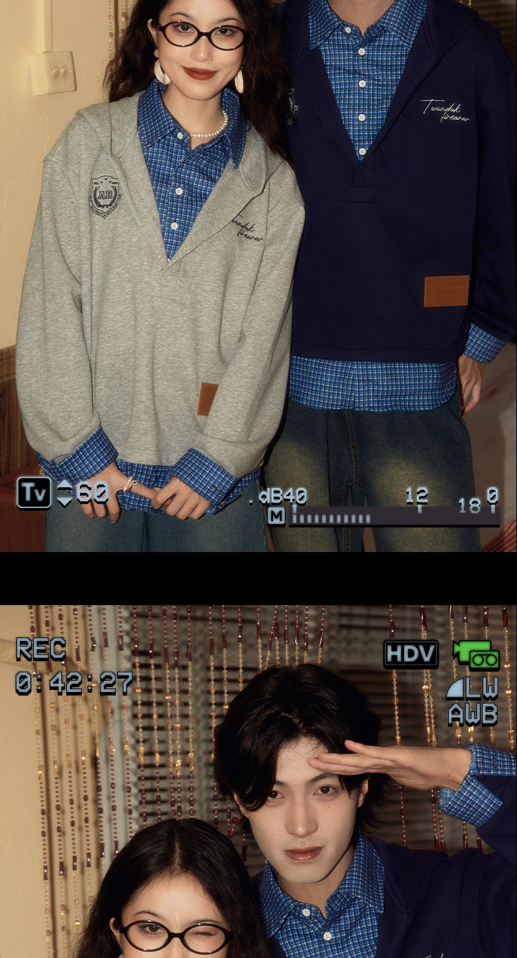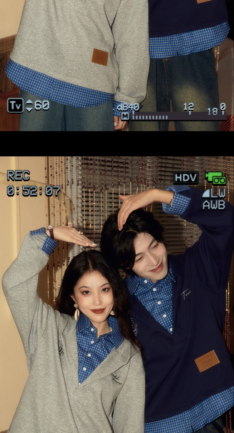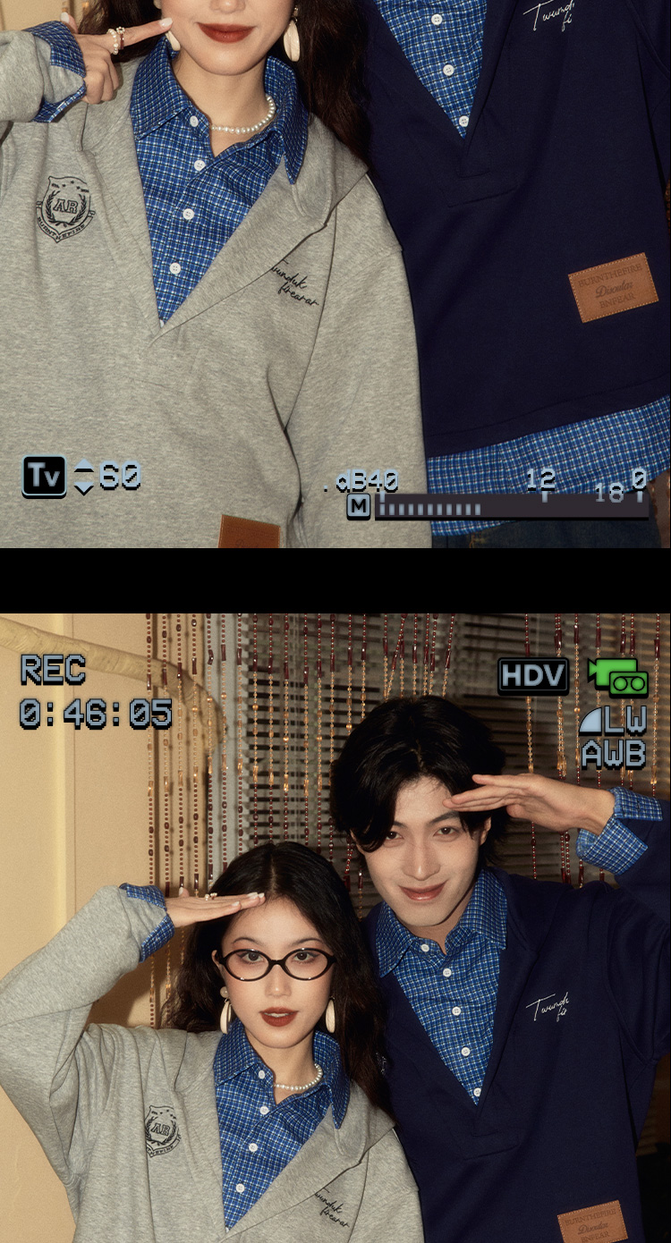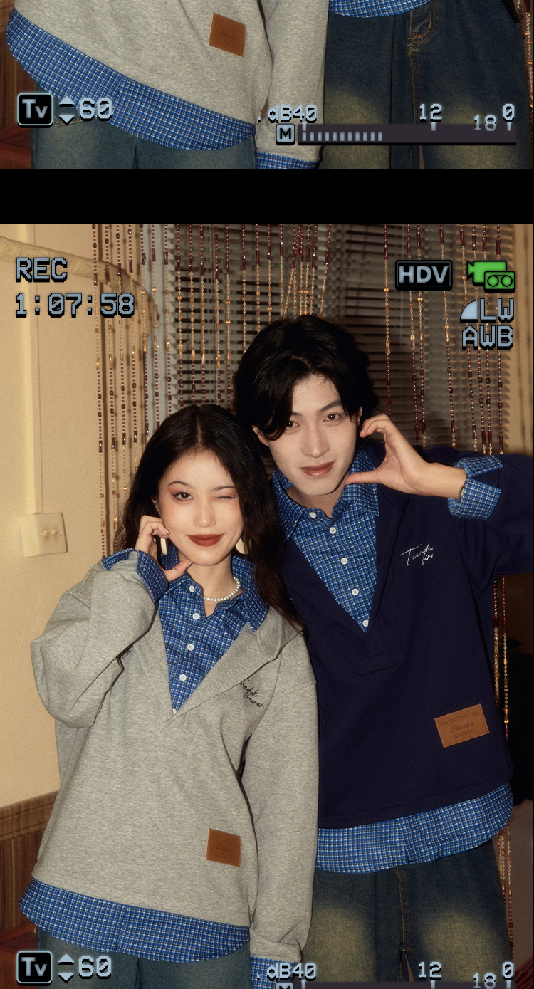 ALOHA Retro Niche Design Sense Splicing Fake Two-piece Sweater
