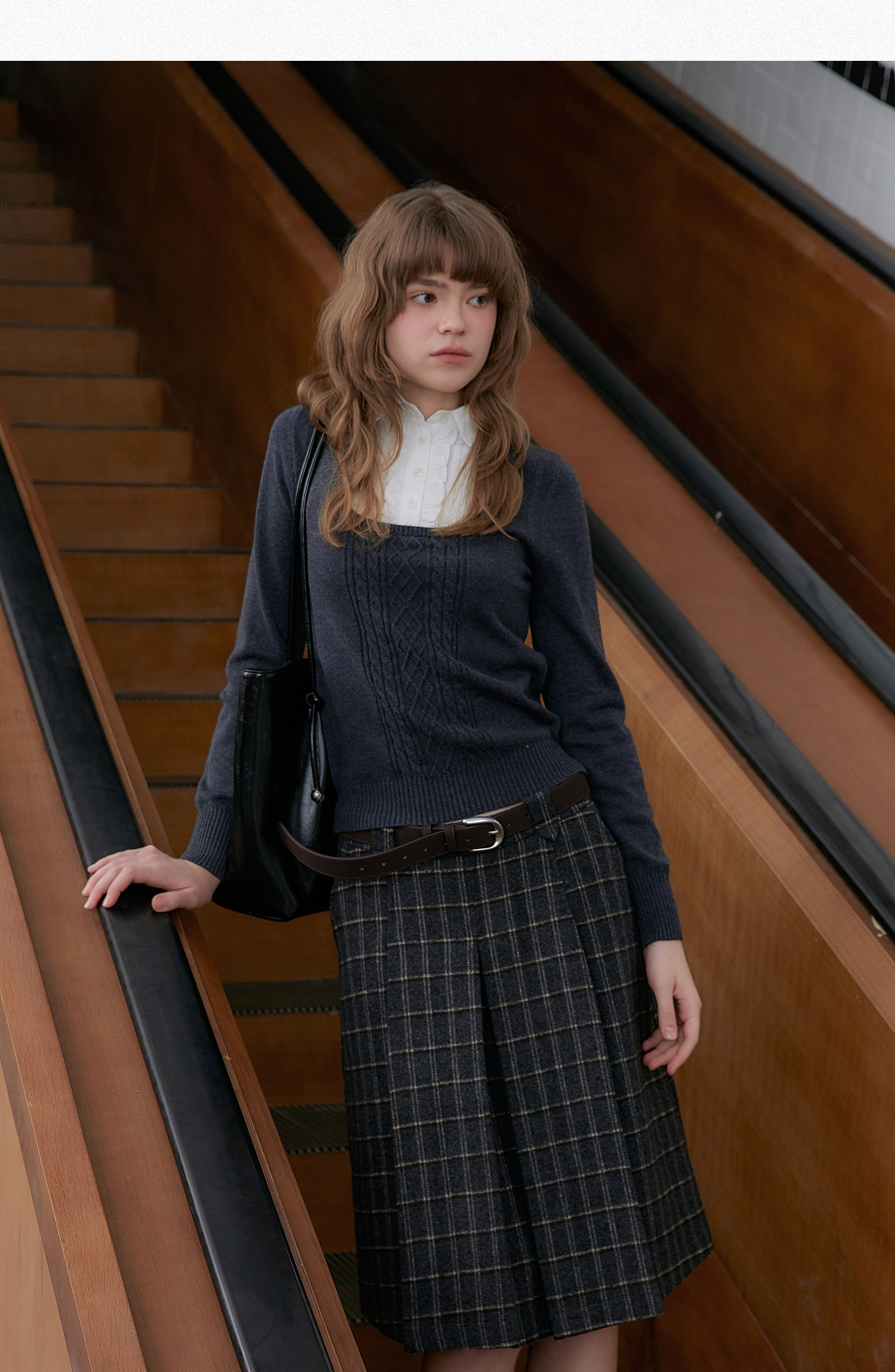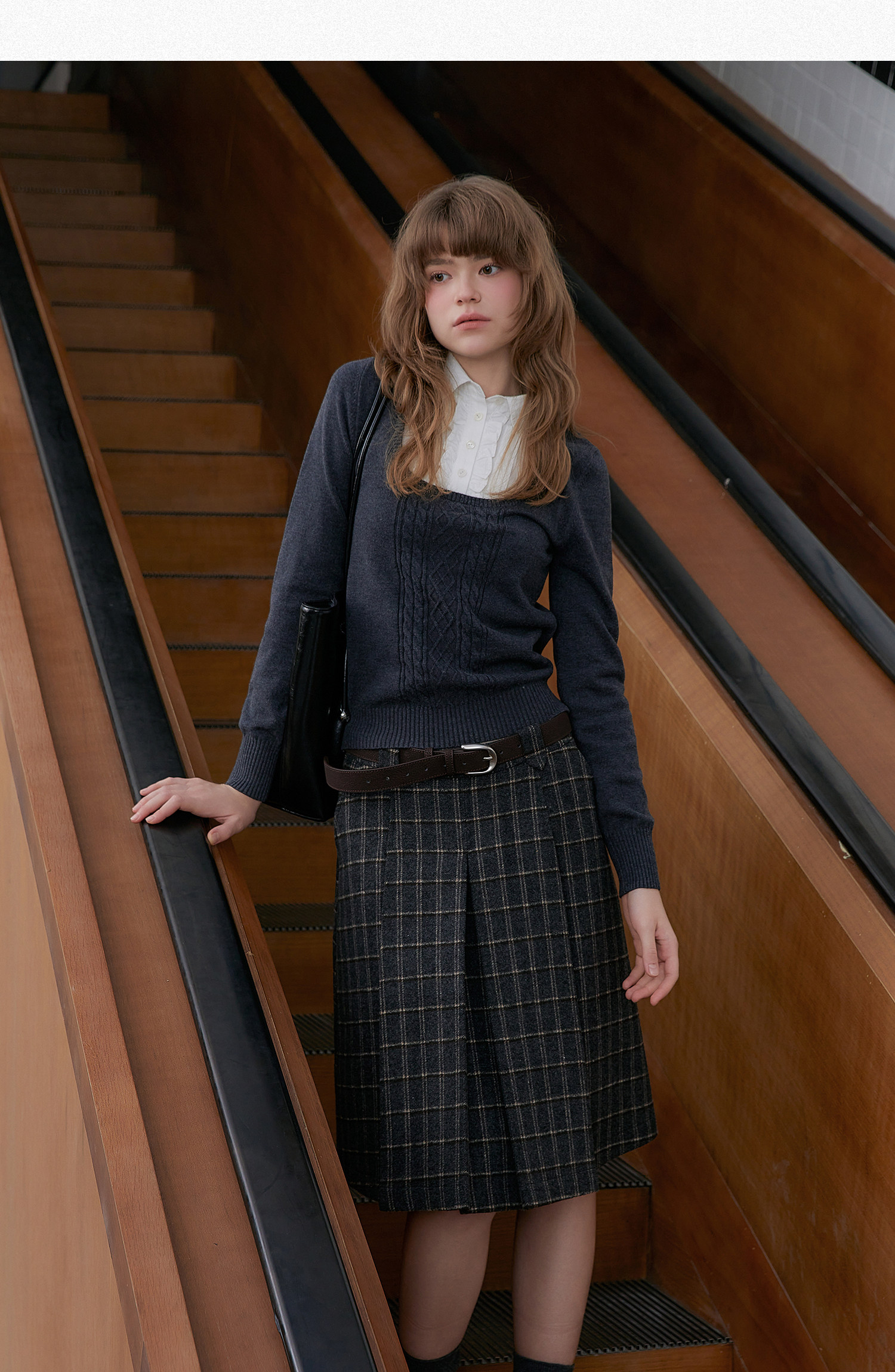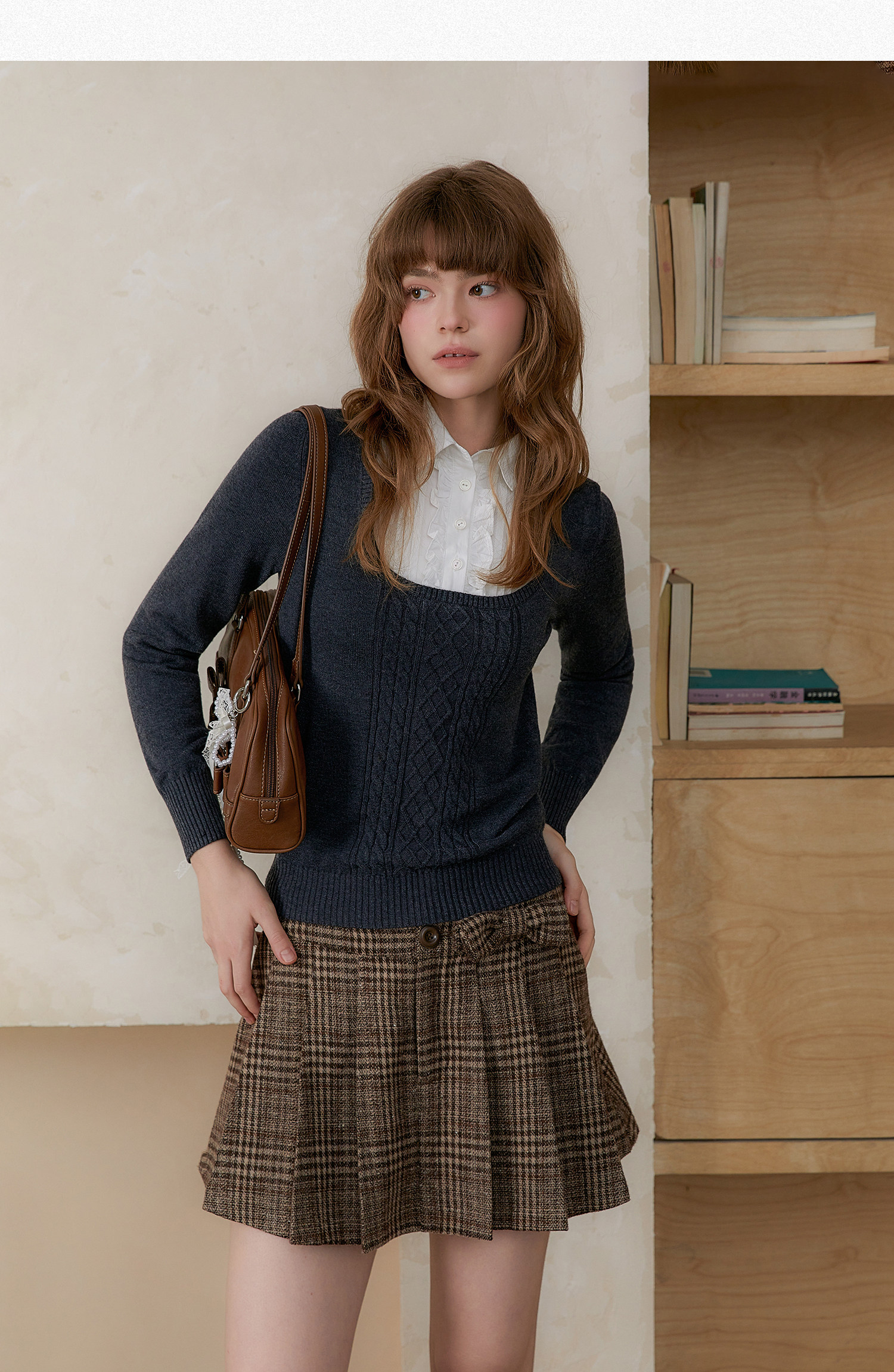 Amweird x moody stitching fake two-piece collar wool-blend knitted sweater