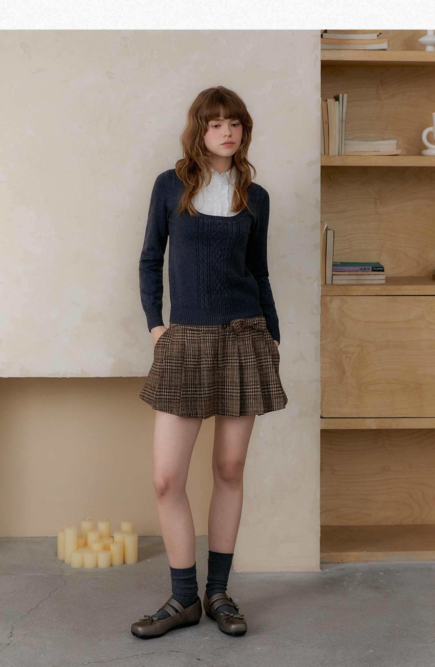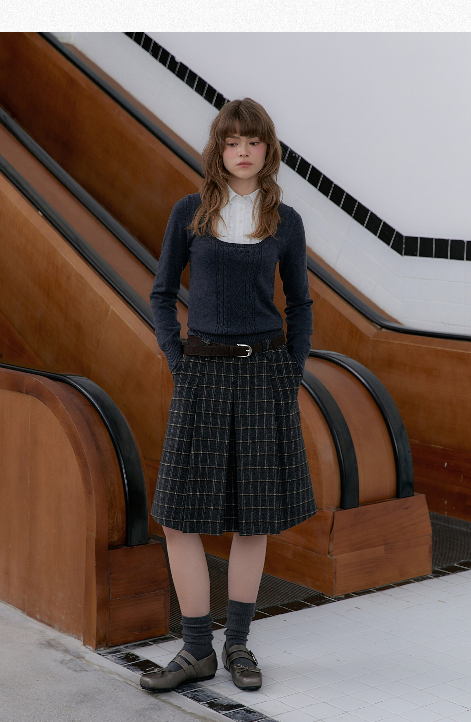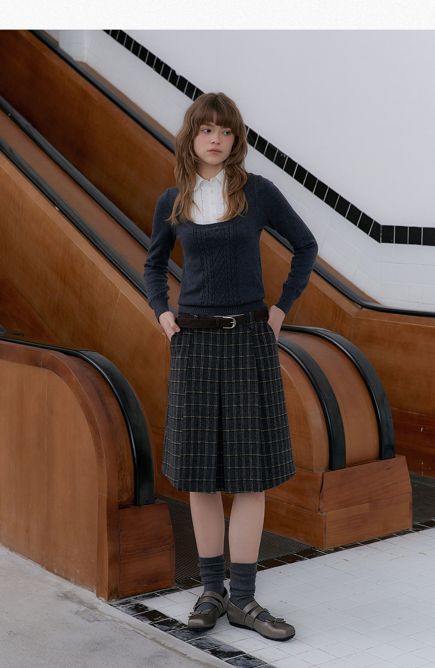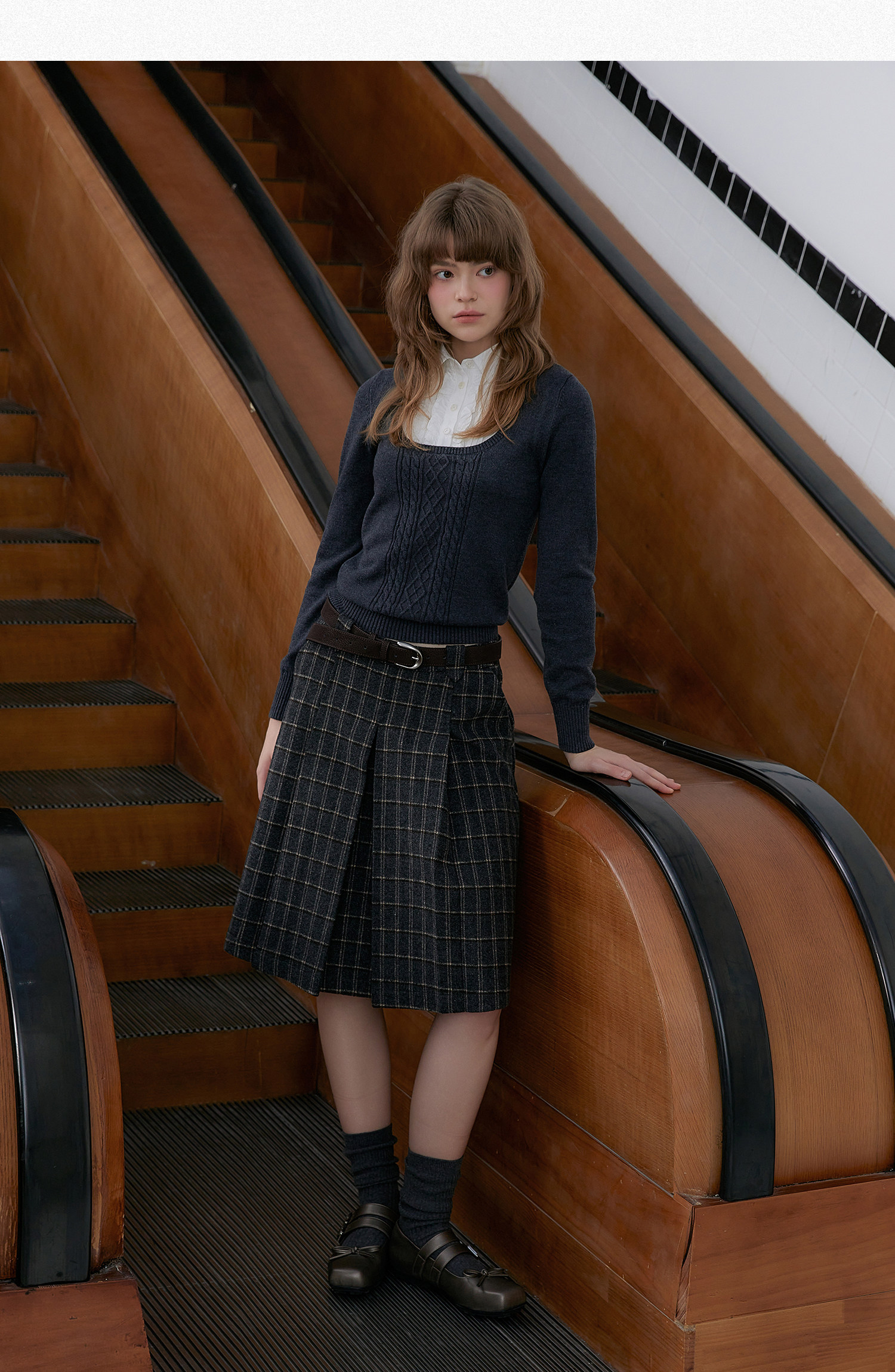 Amweird x moody stitching fake two-piece collar wool-blend knitted sweater