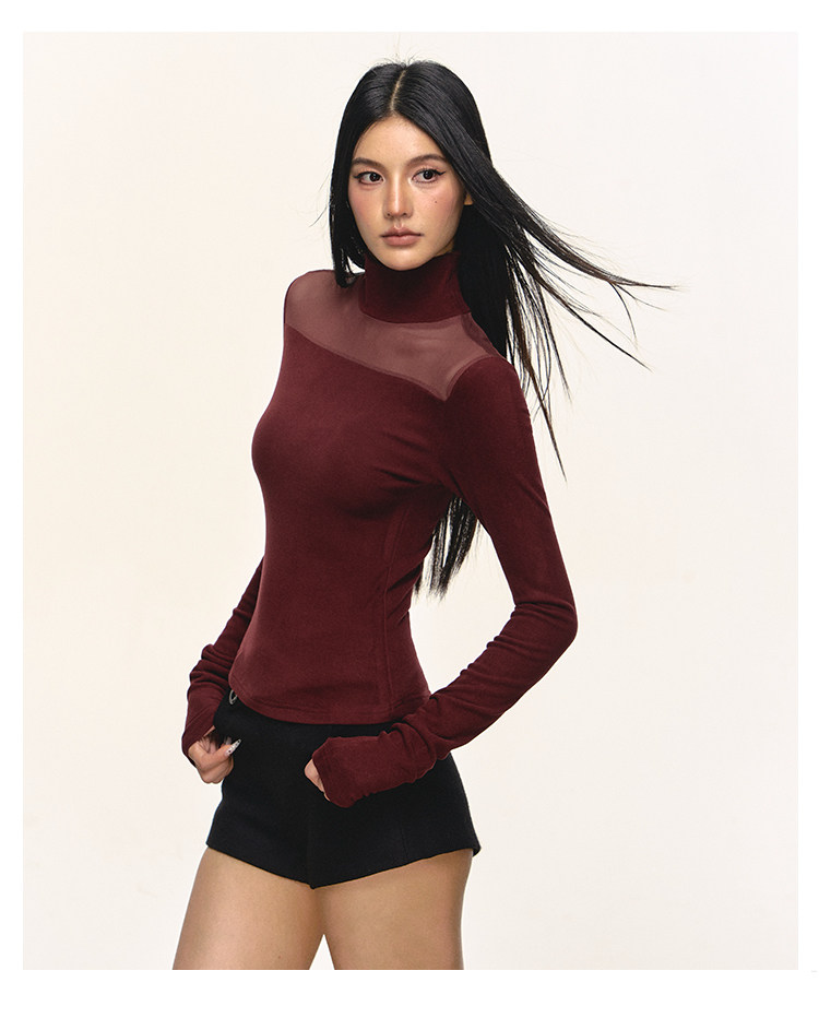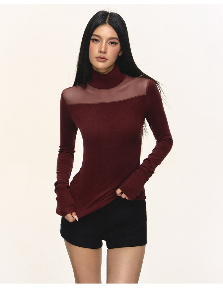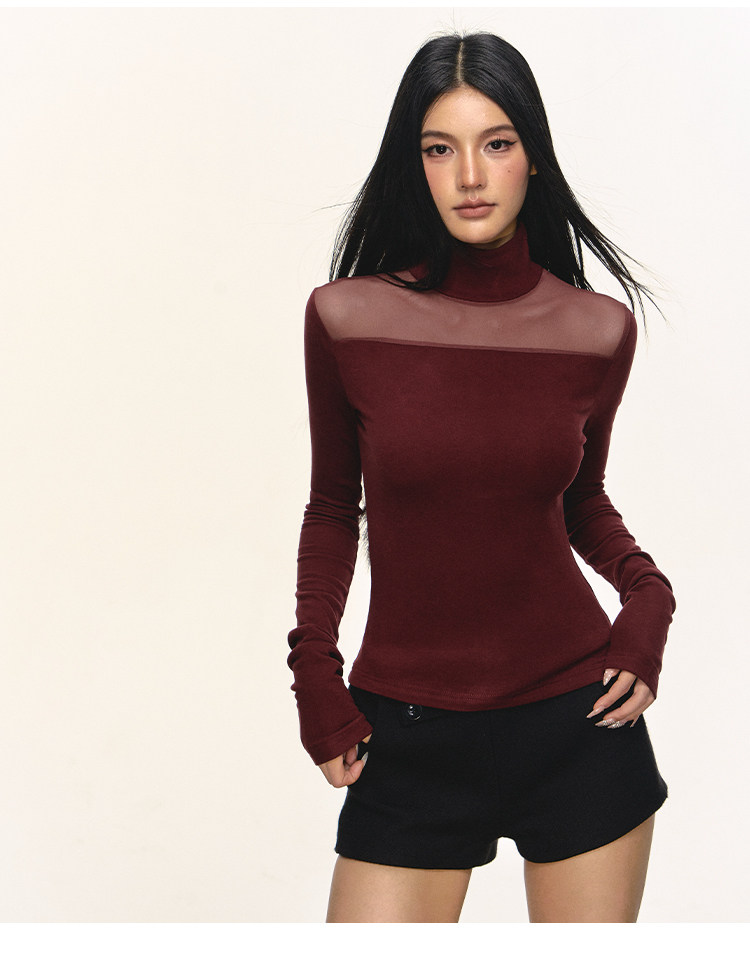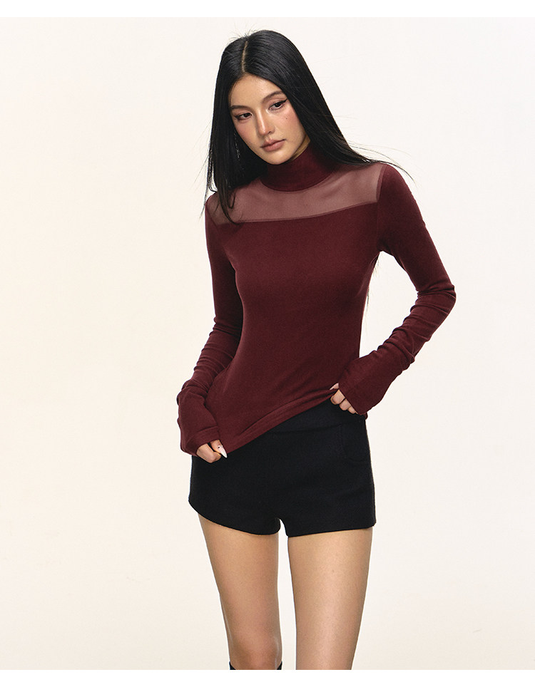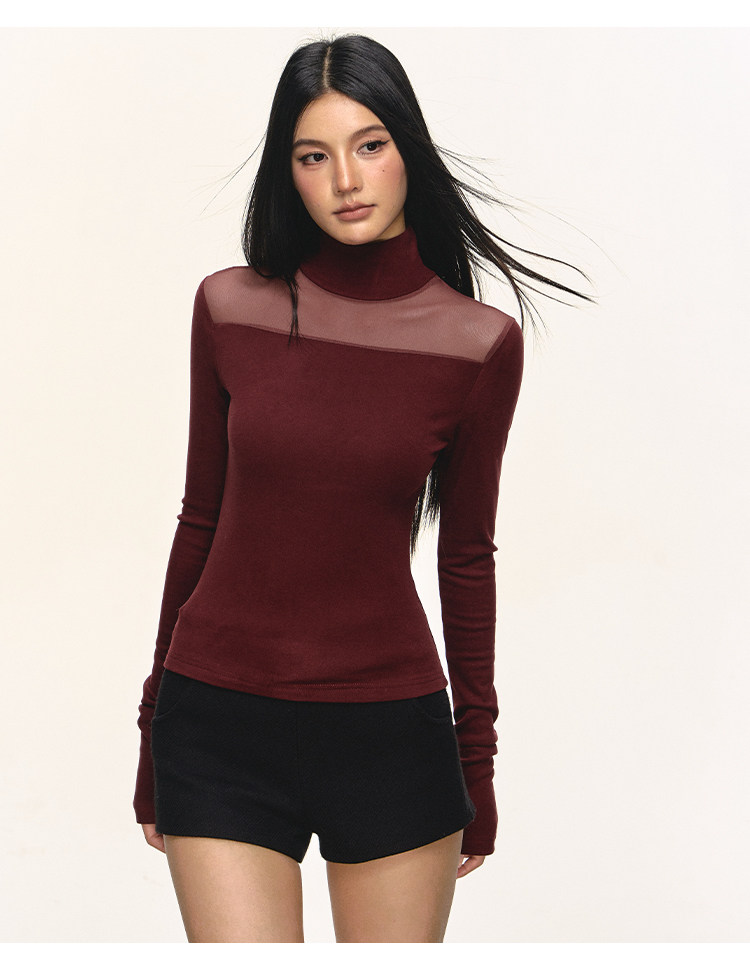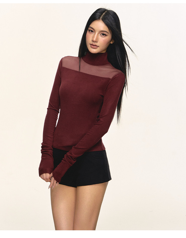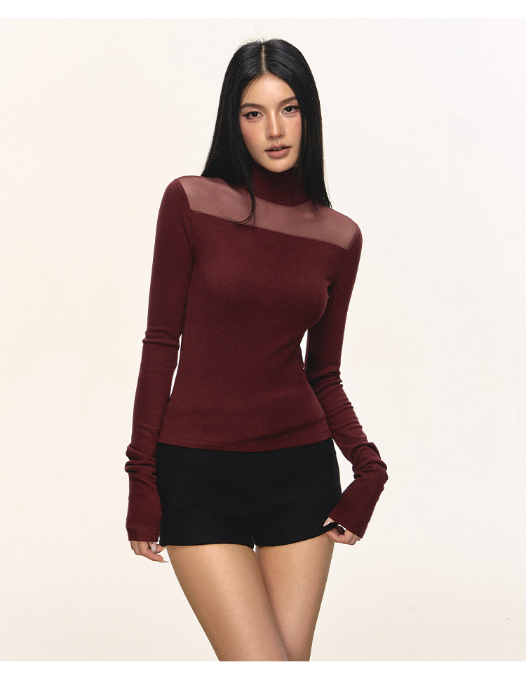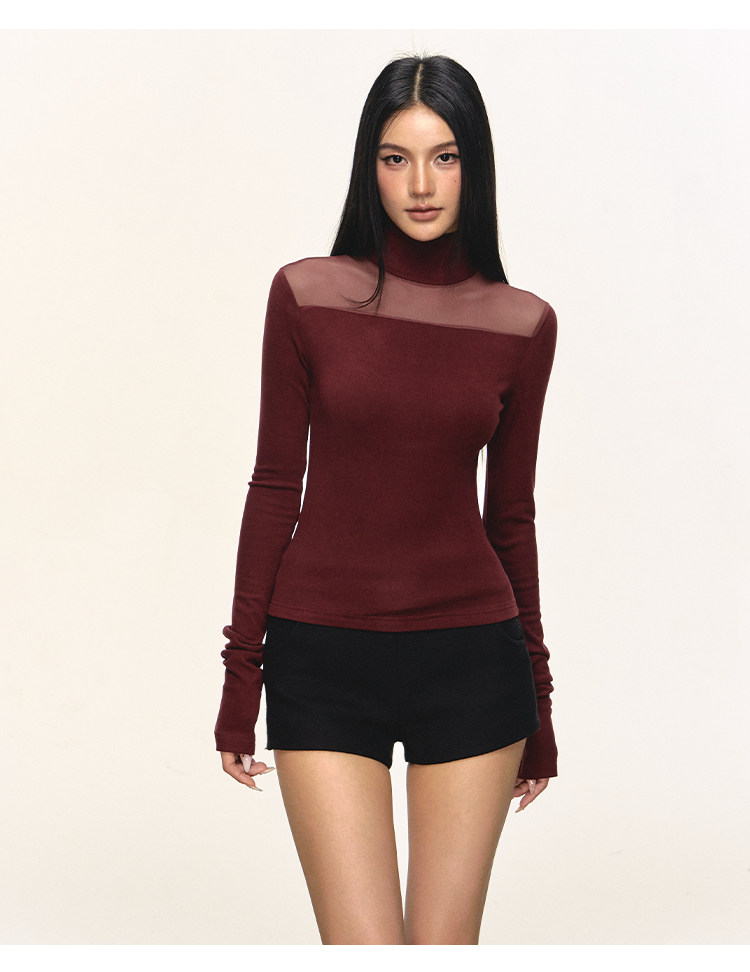 Anna Aneae High Neck Slim Skinny Knitted Bottom Long Sleeves