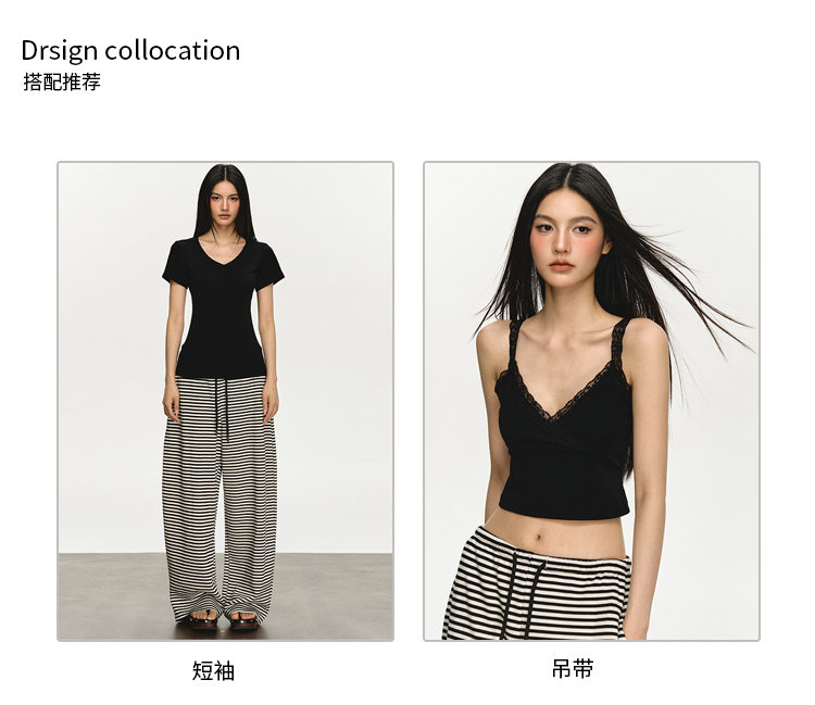 Anna Aneae Striped Lazy Loose Casual Straight Pants