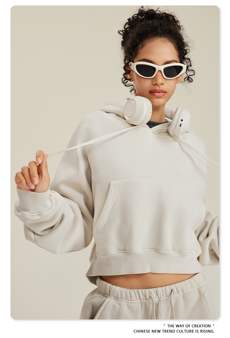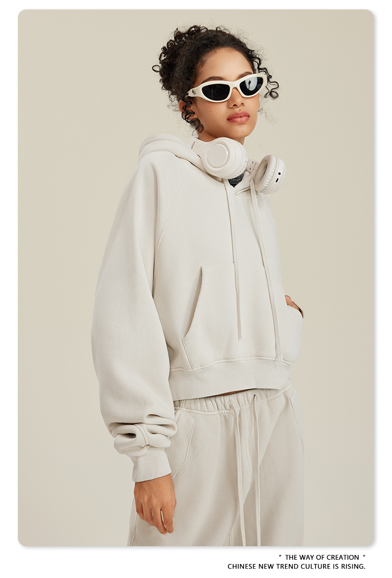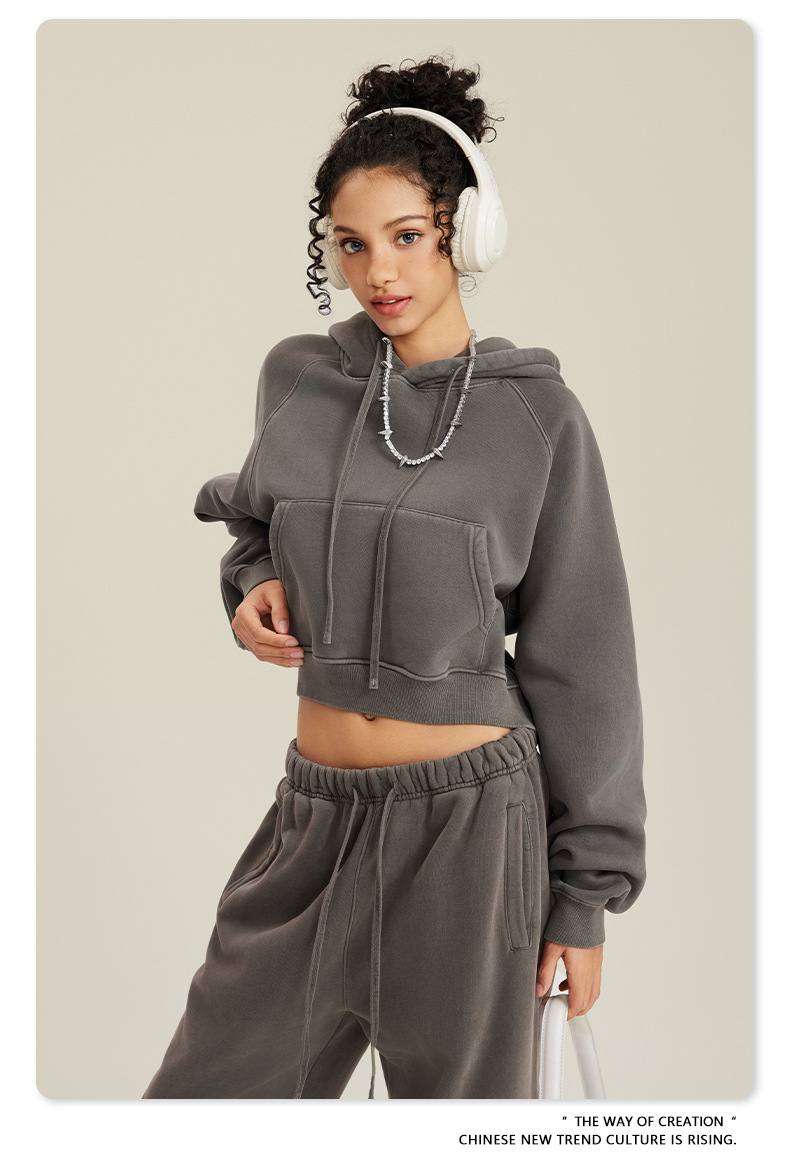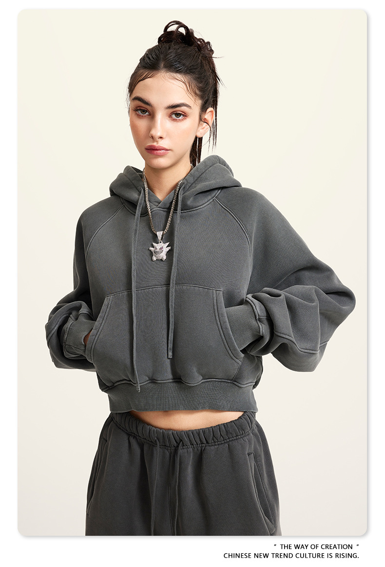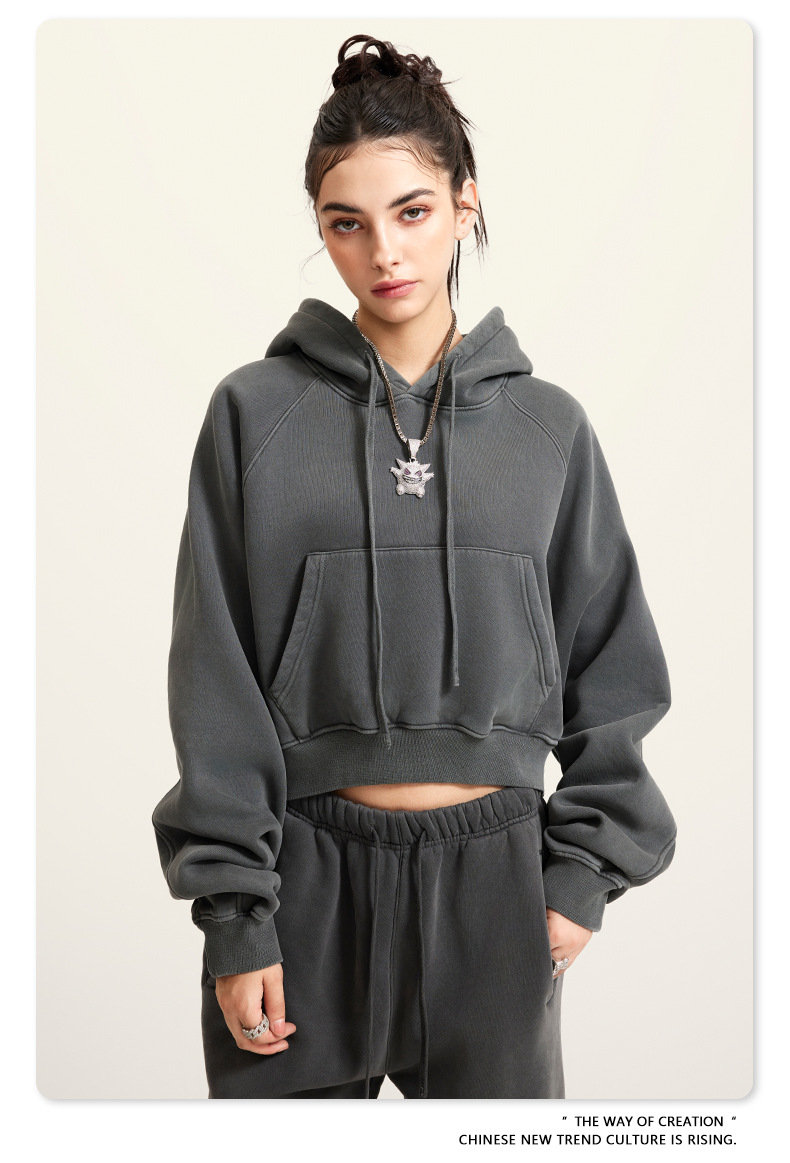 BE Women Raglan Washed Fleece Cropped Hoodie