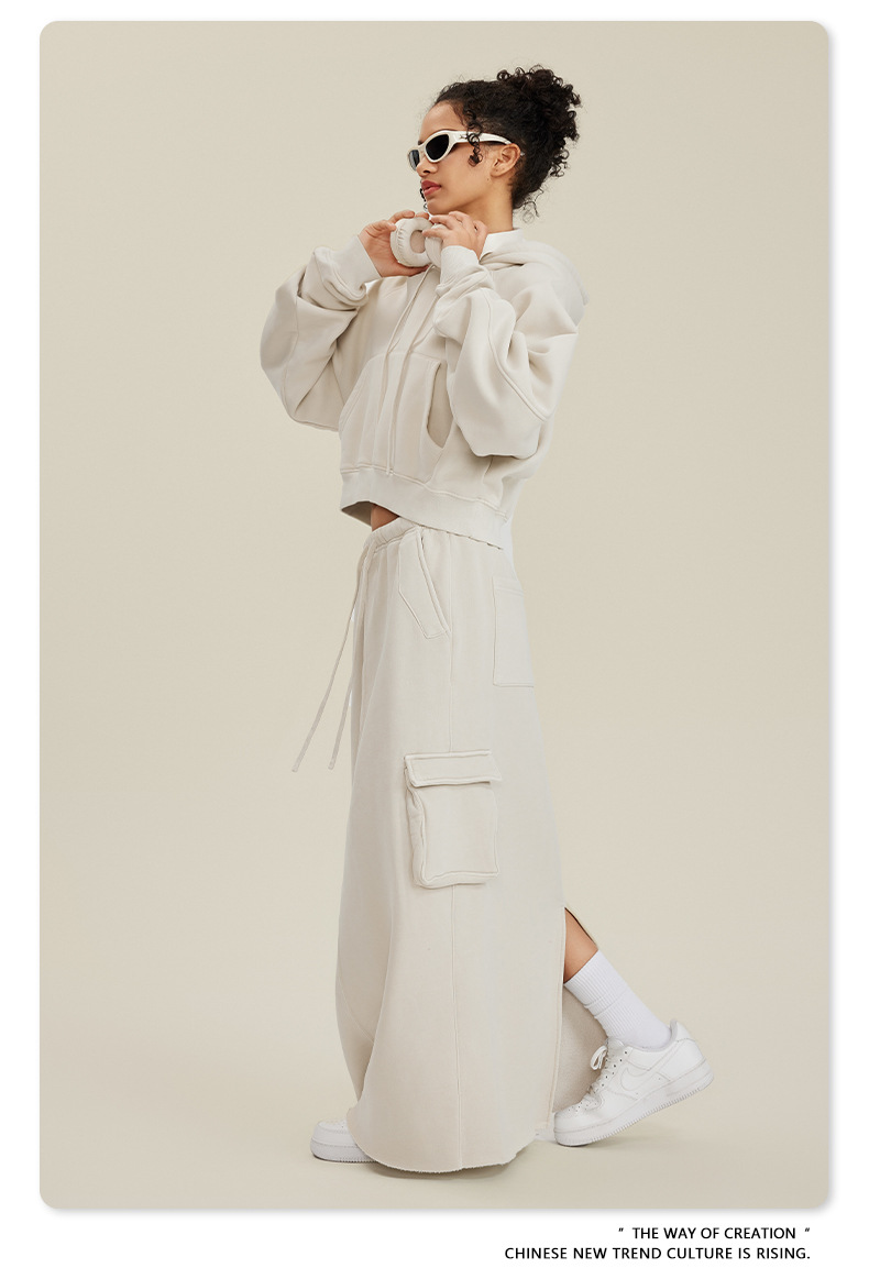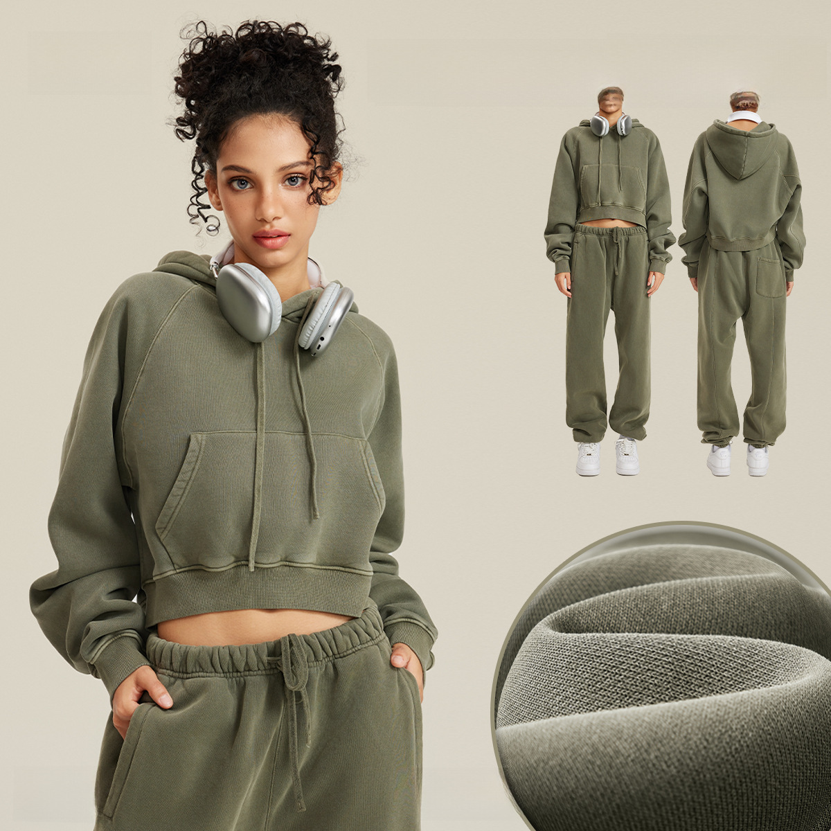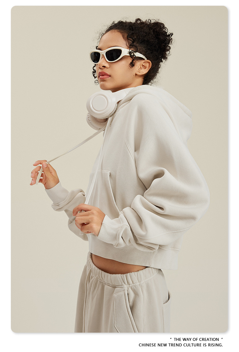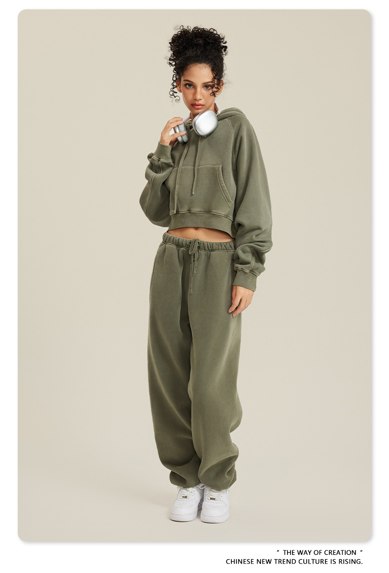 BE Women Raglan Washed Fleece Cropped Hoodie