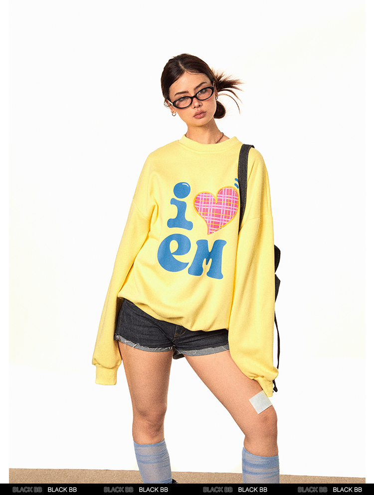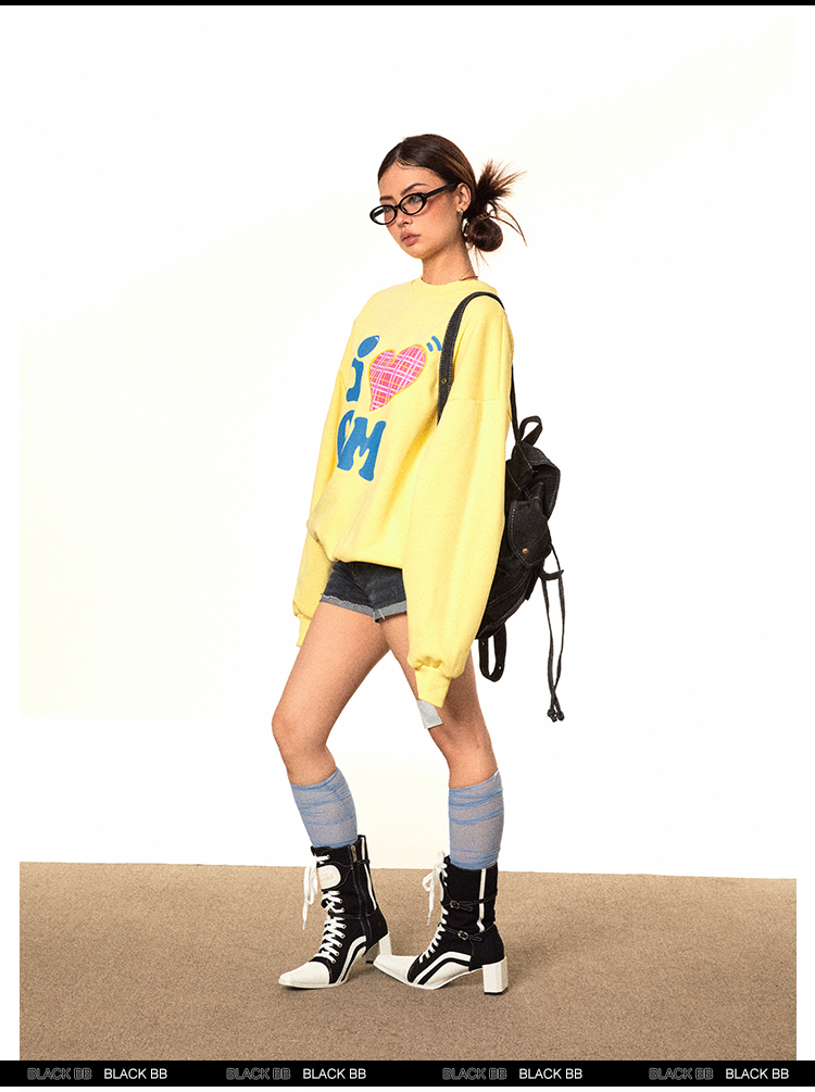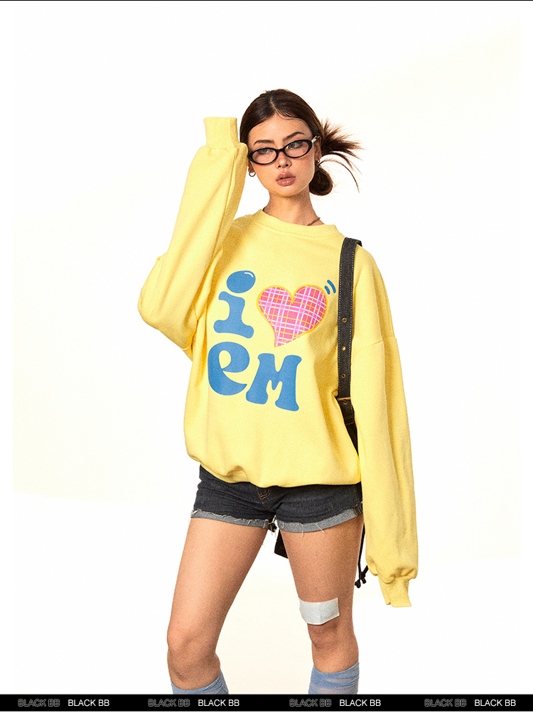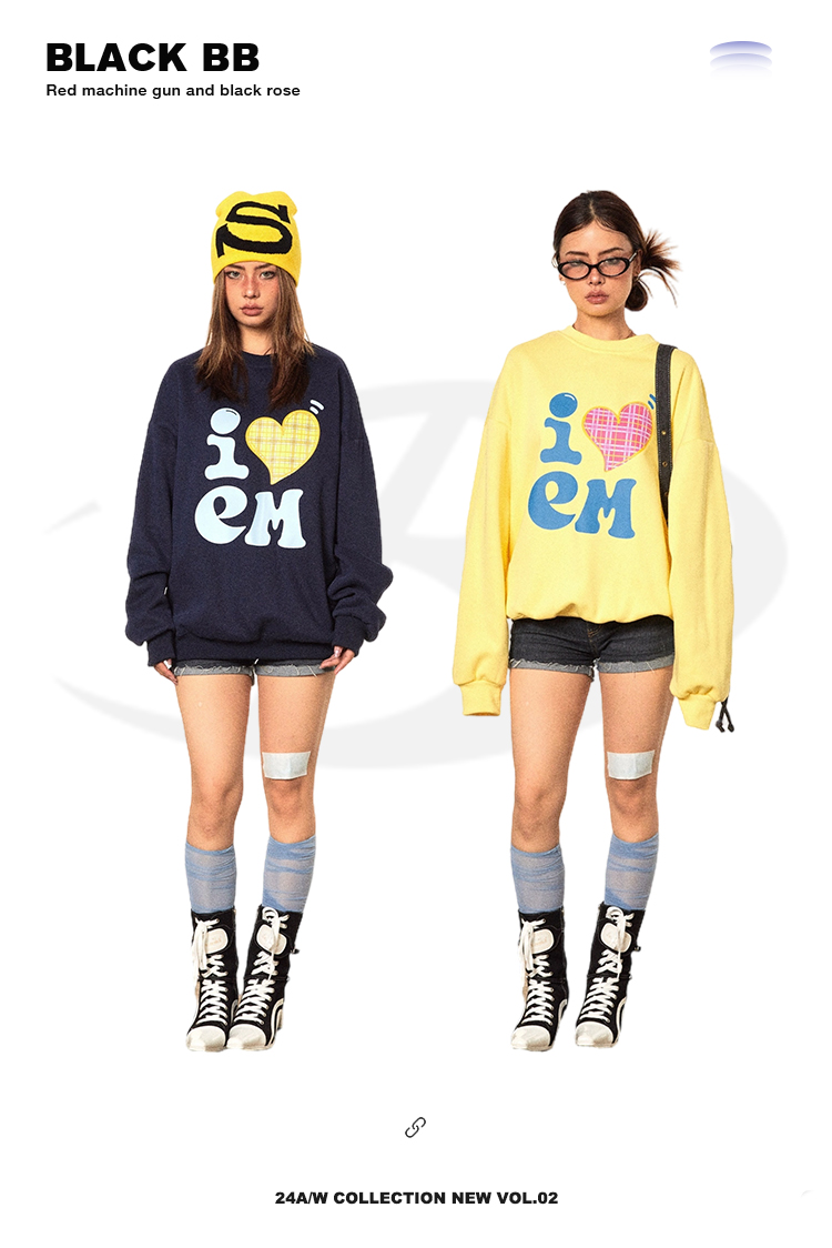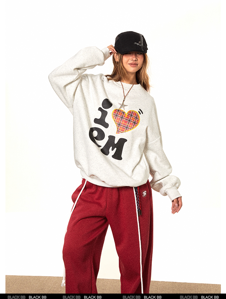 BLACKBB American Heart Print Crew Neck Sweatshirt