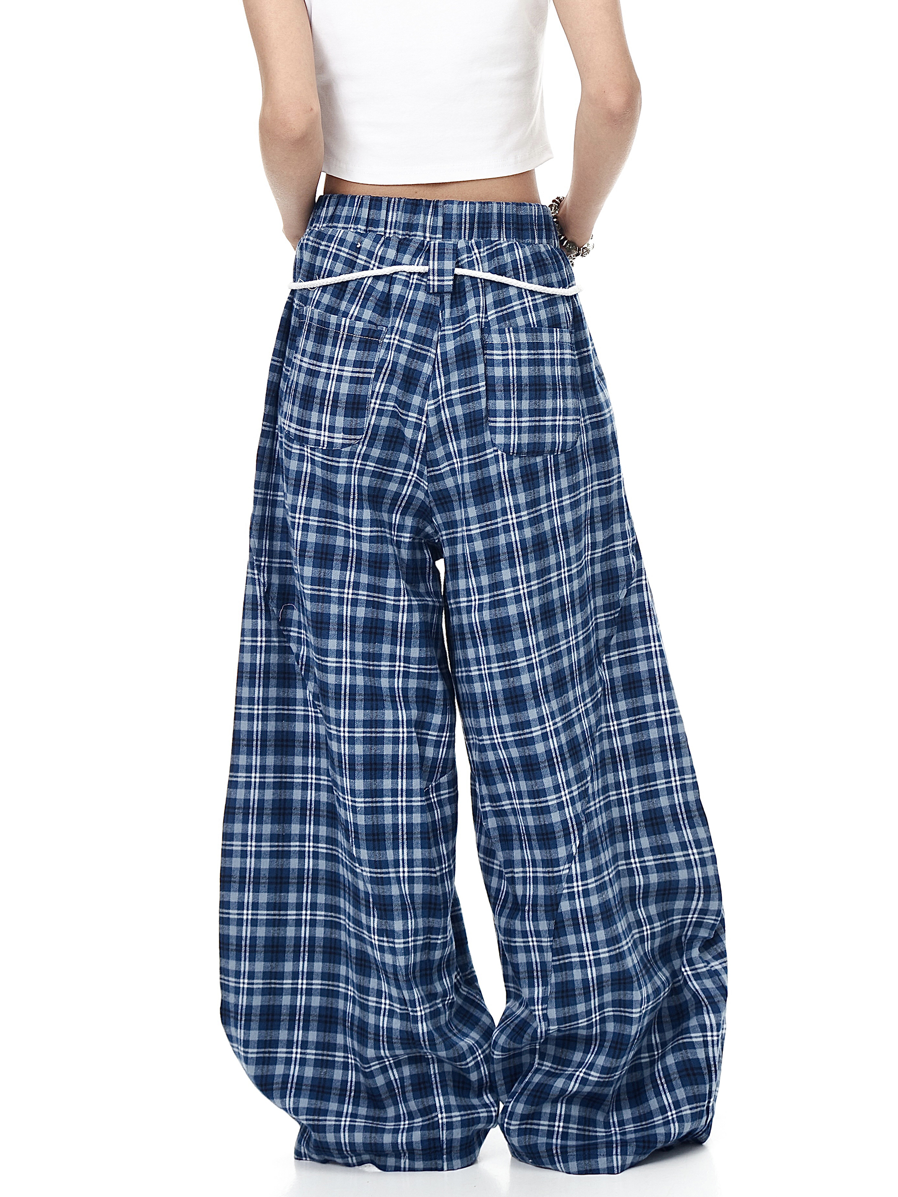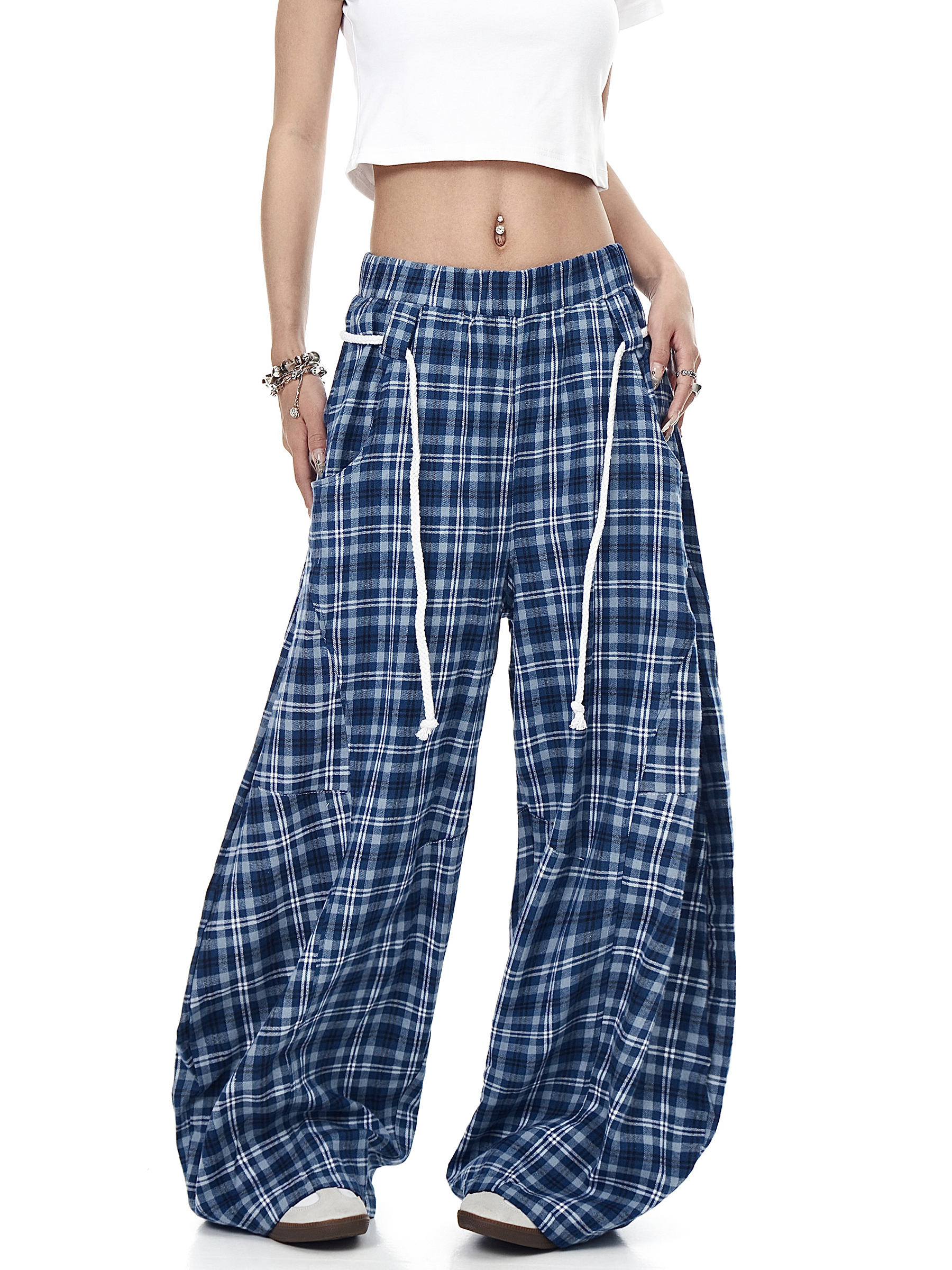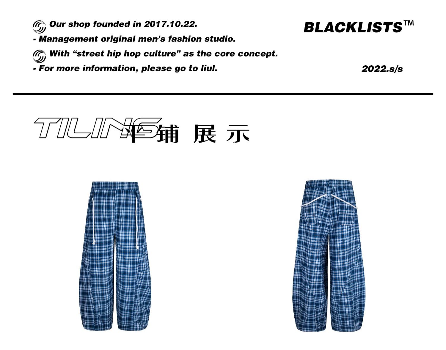 BLACKLISTS Casual Lazy Blue Checked Scimitar Pants