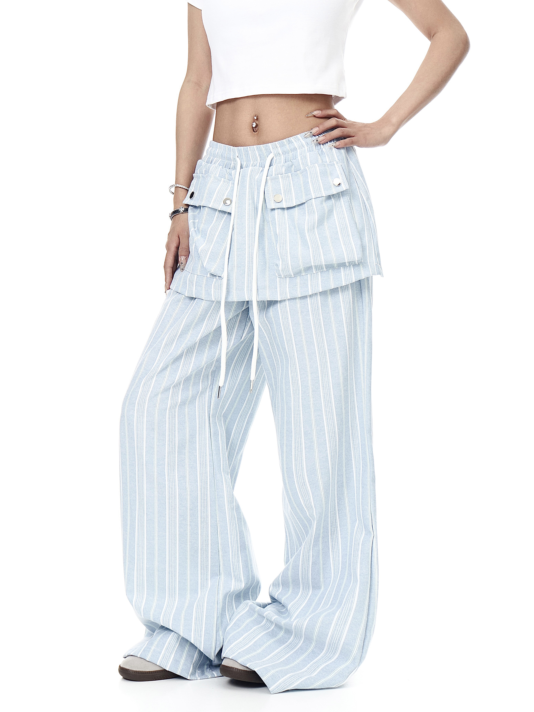 BLACKLISTS Lazy Wind Fake Two-piece Stacked Striped Pants