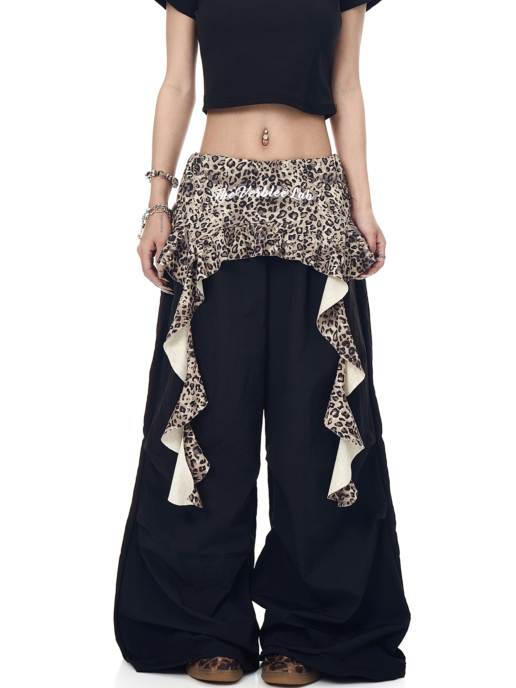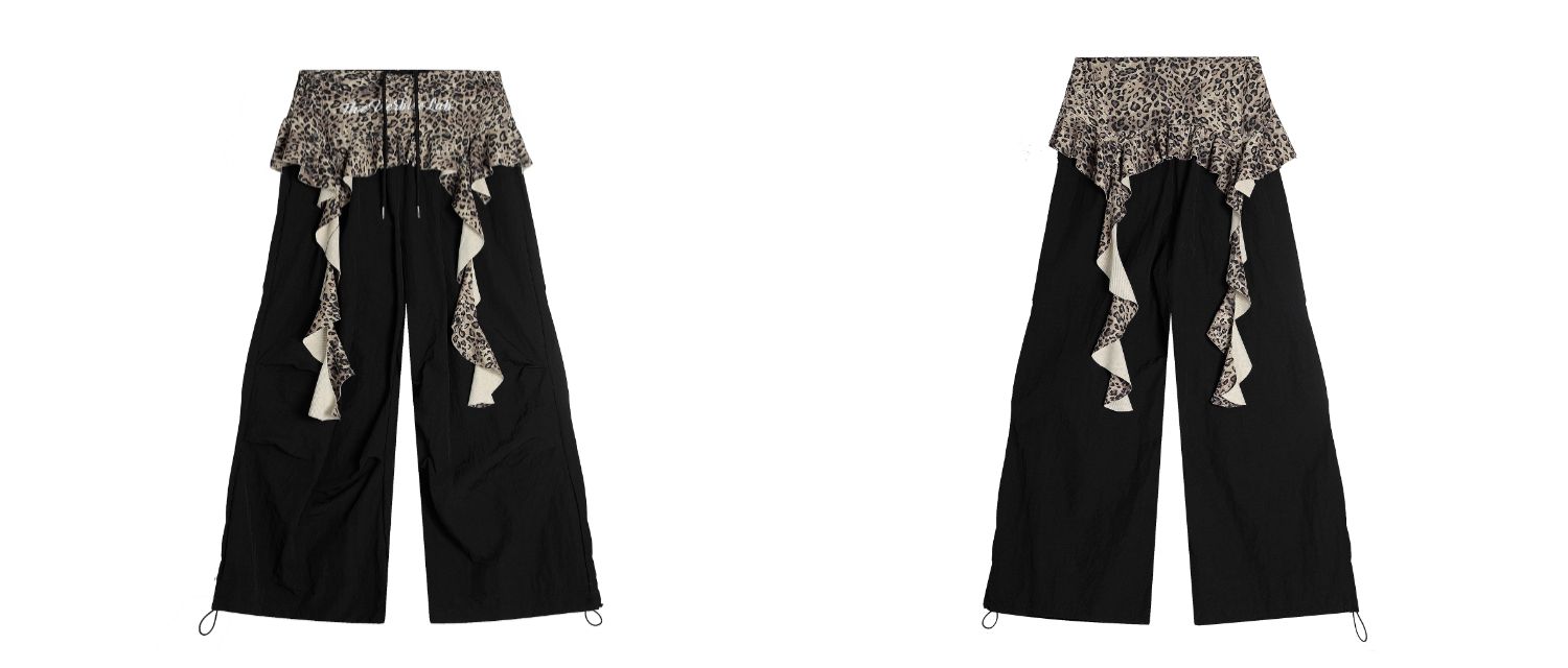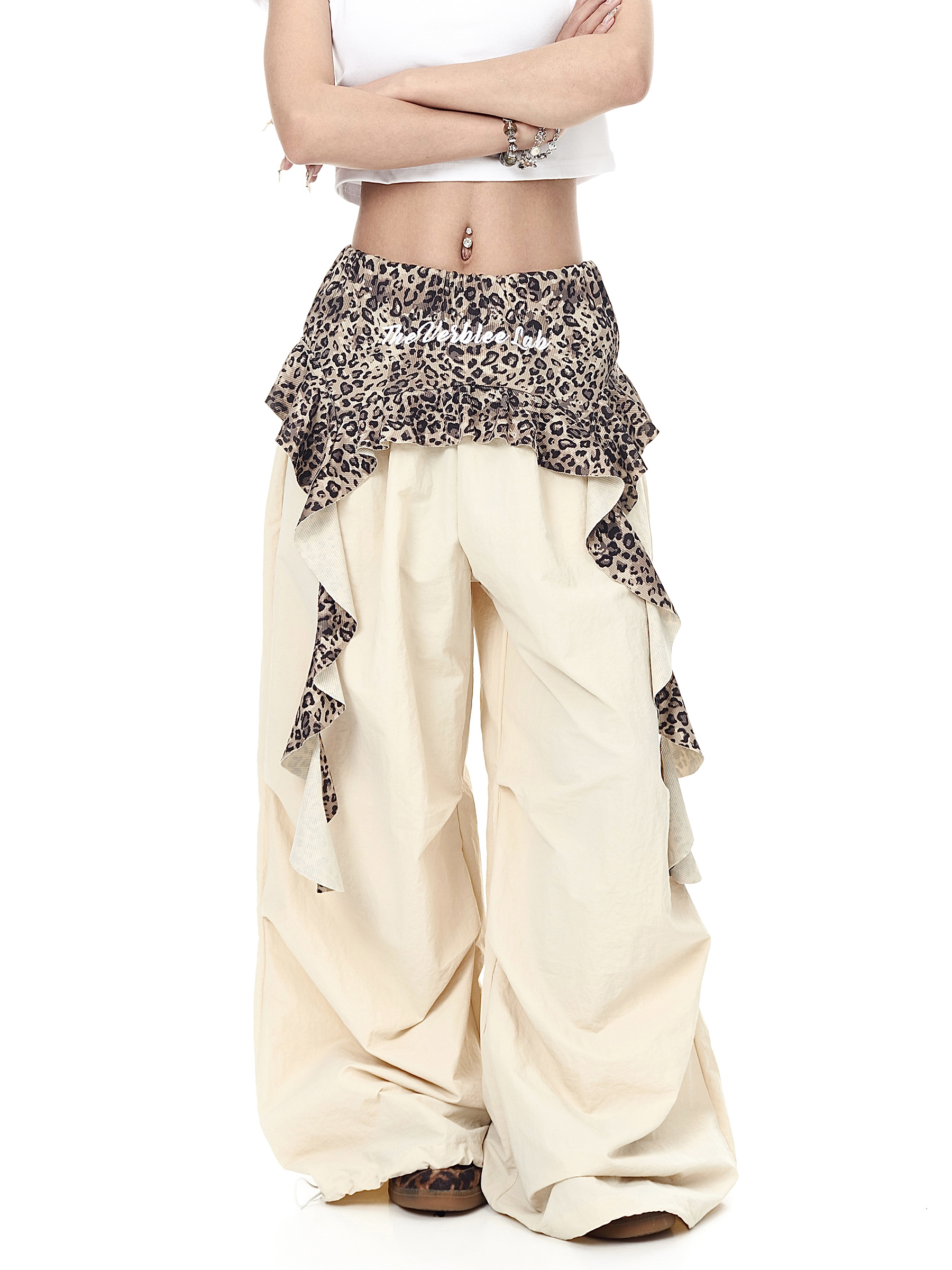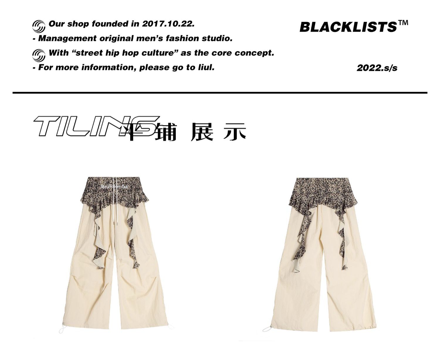 BLACKLISTS Leopard Print Splicing Pleats Stacked Fake Two-piece Pants