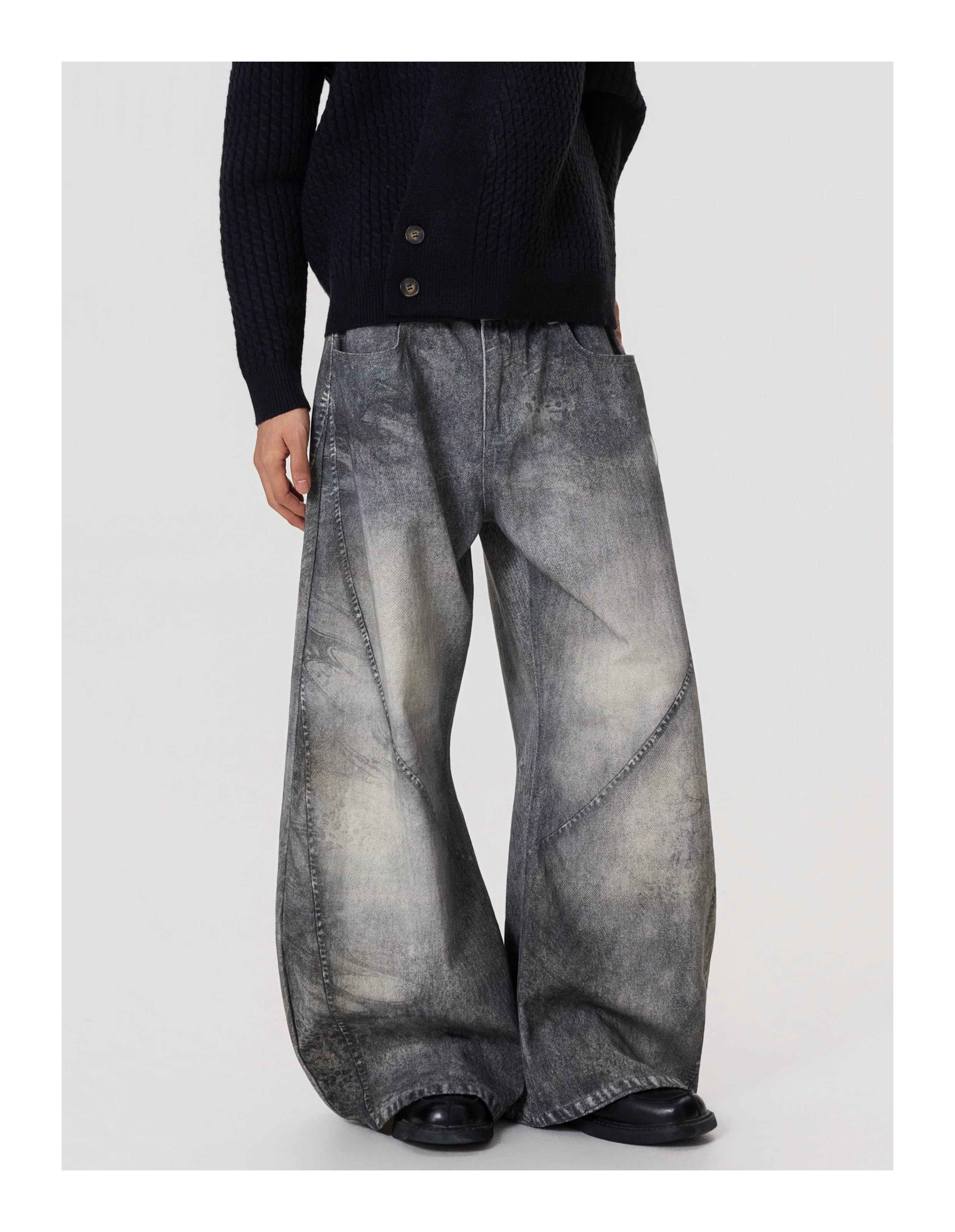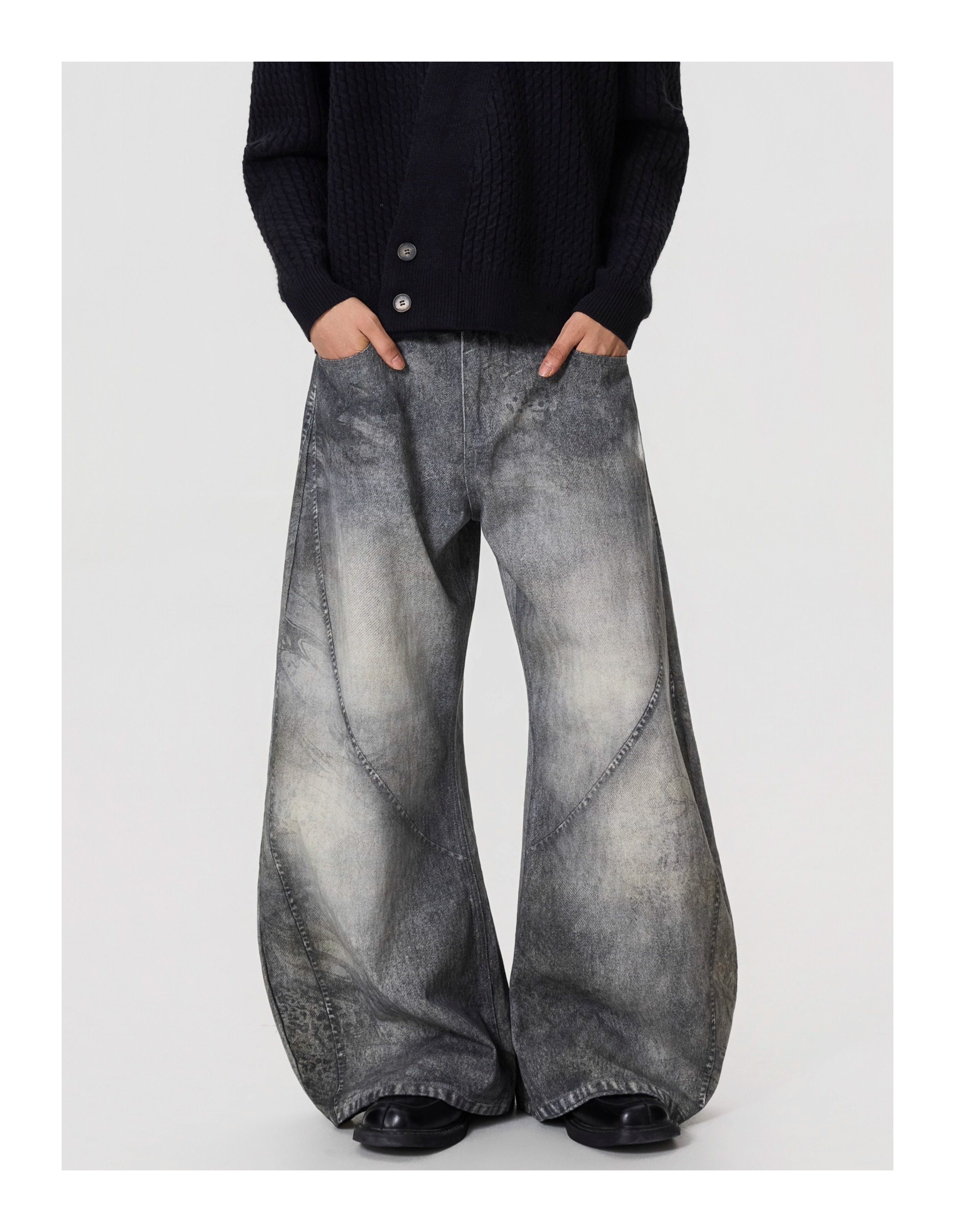 BTSG 3D Digital Printing Stitching Scimitar Jeans