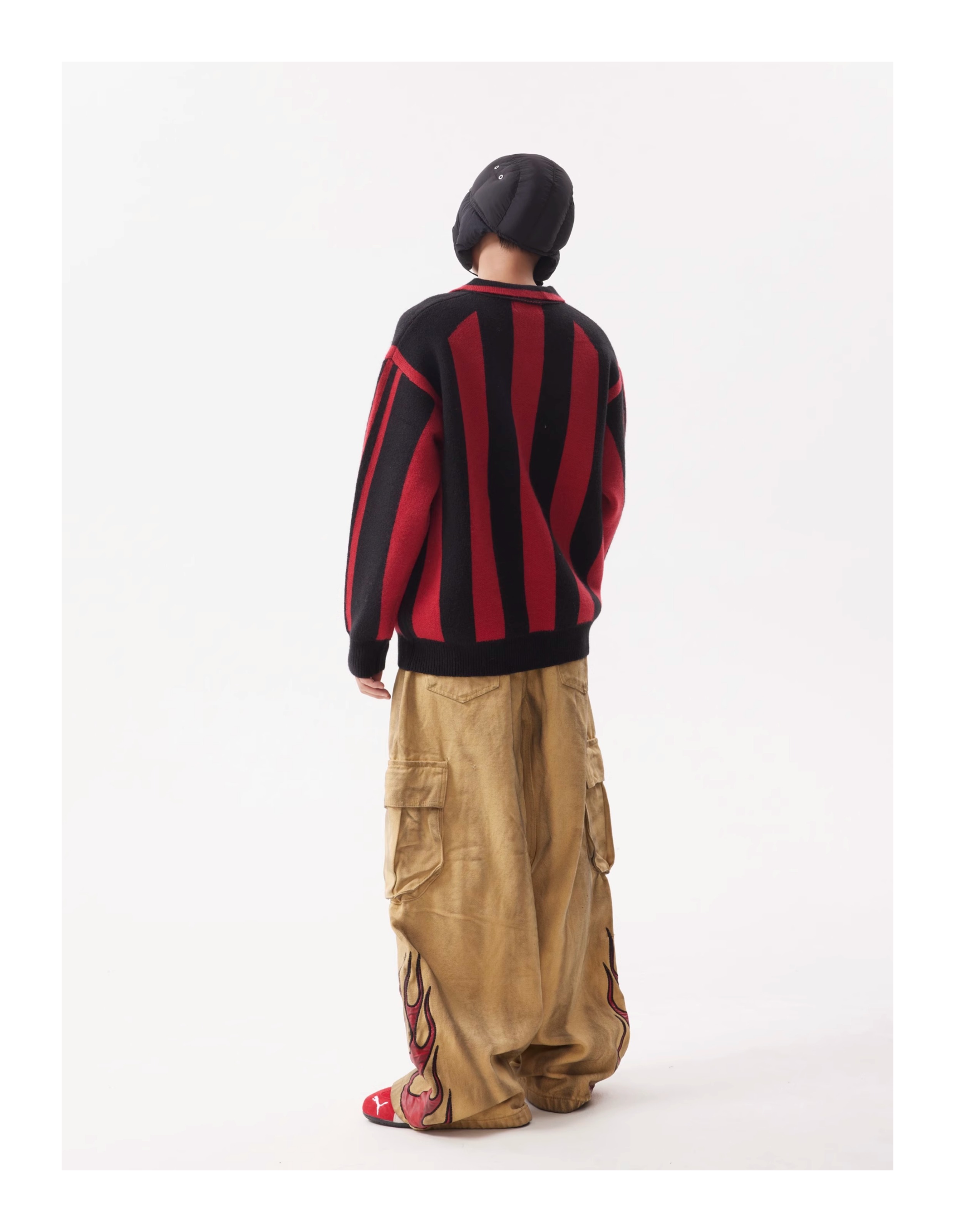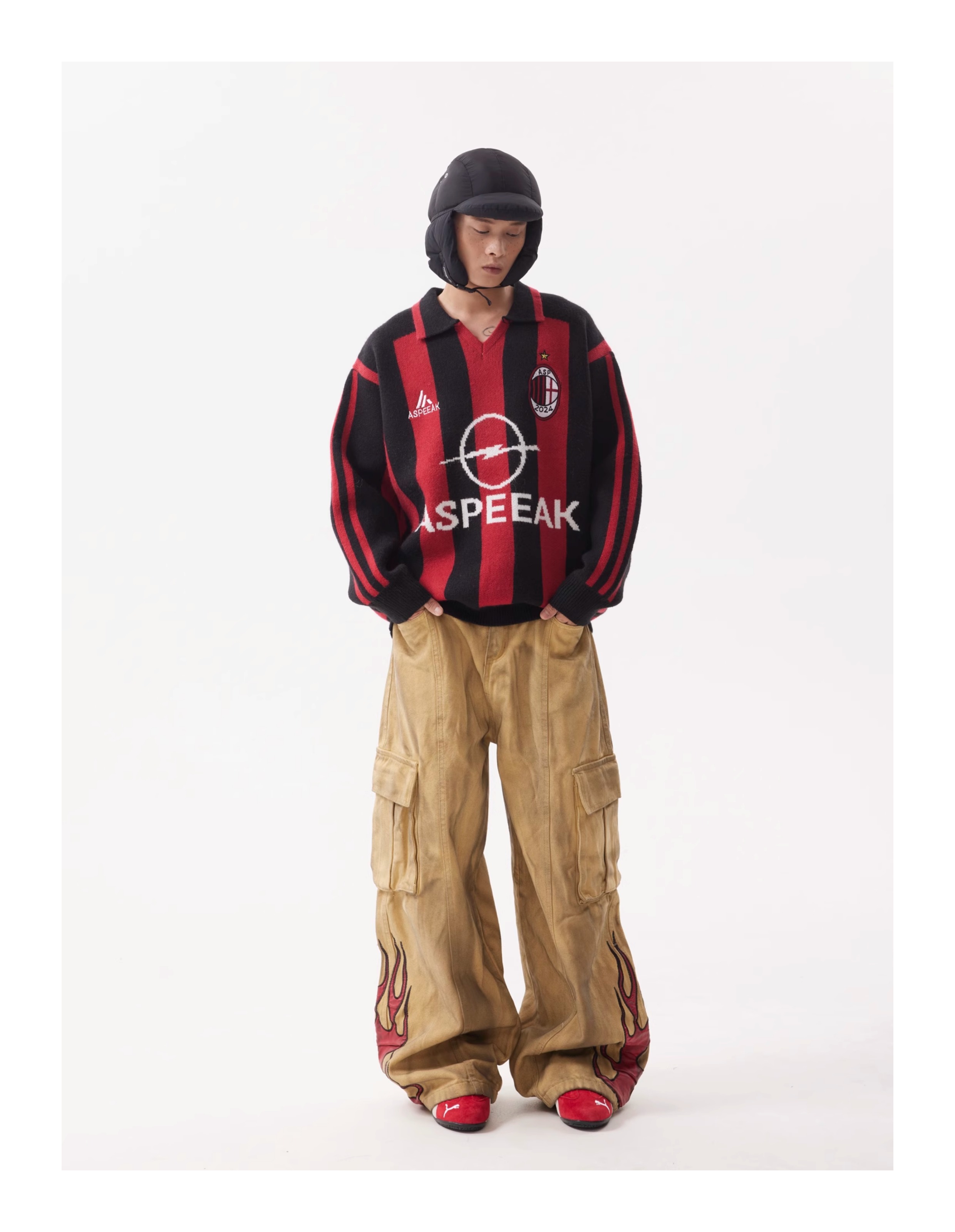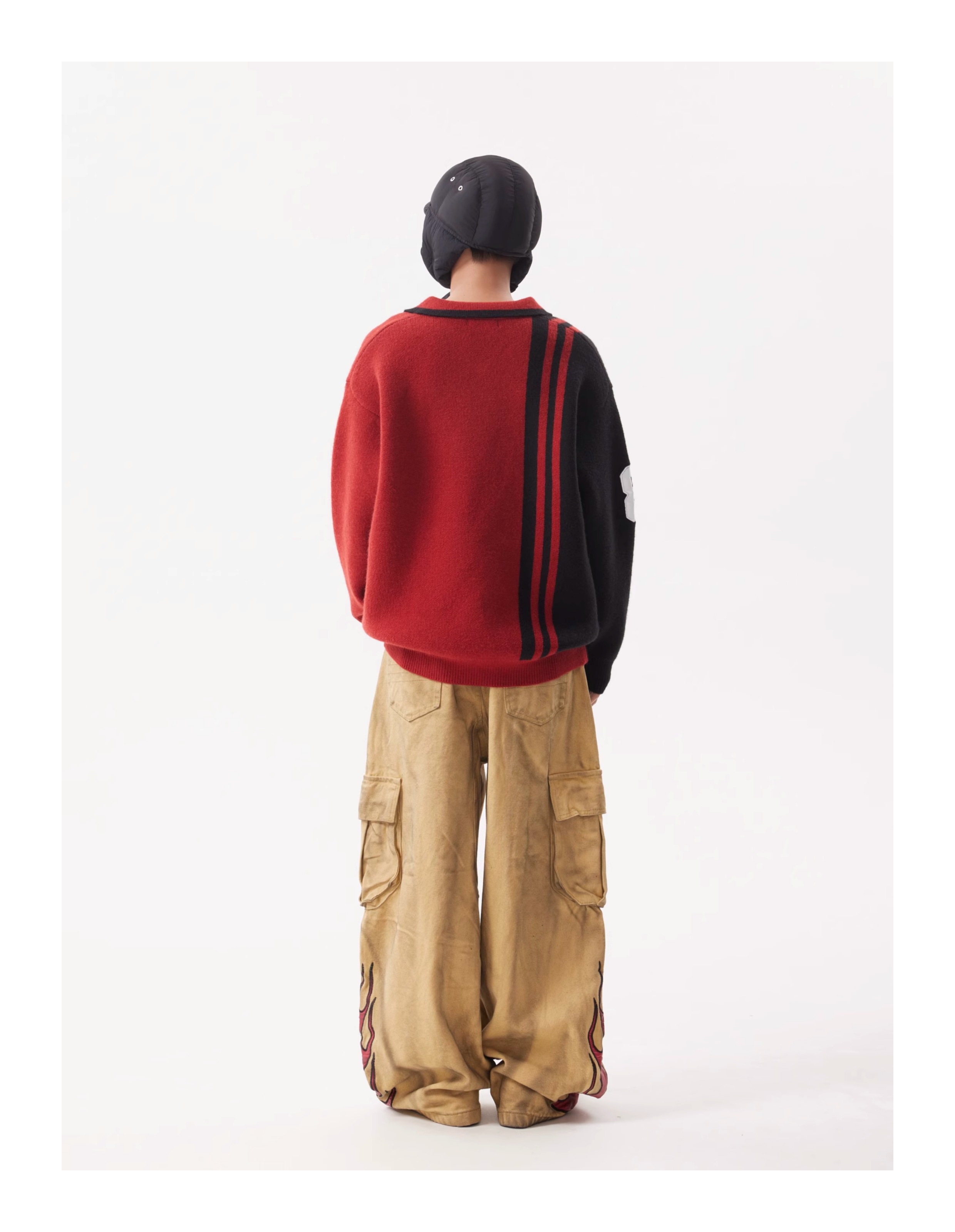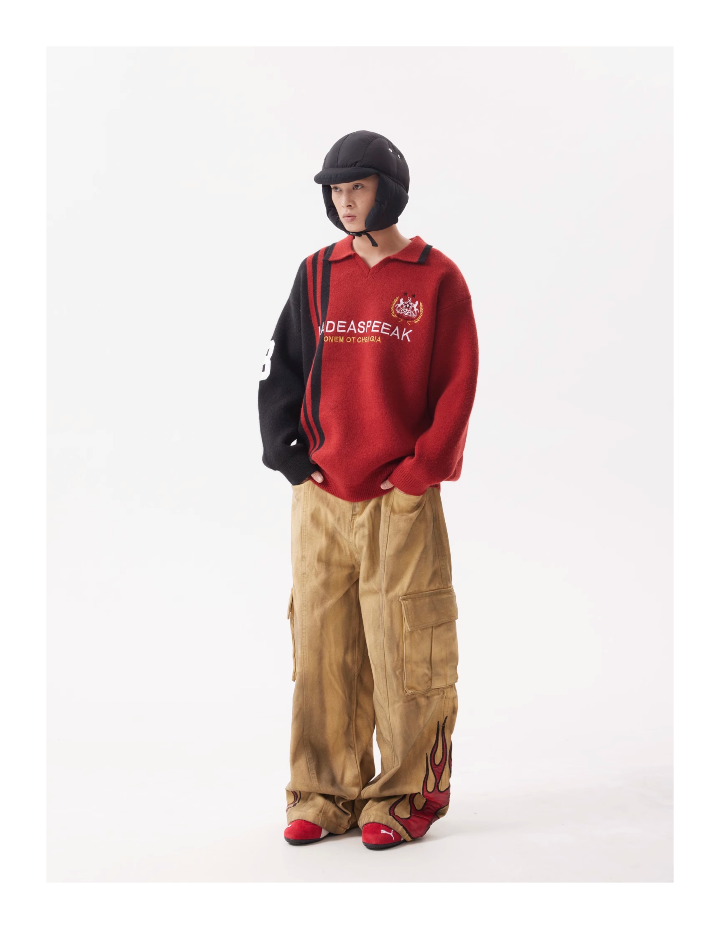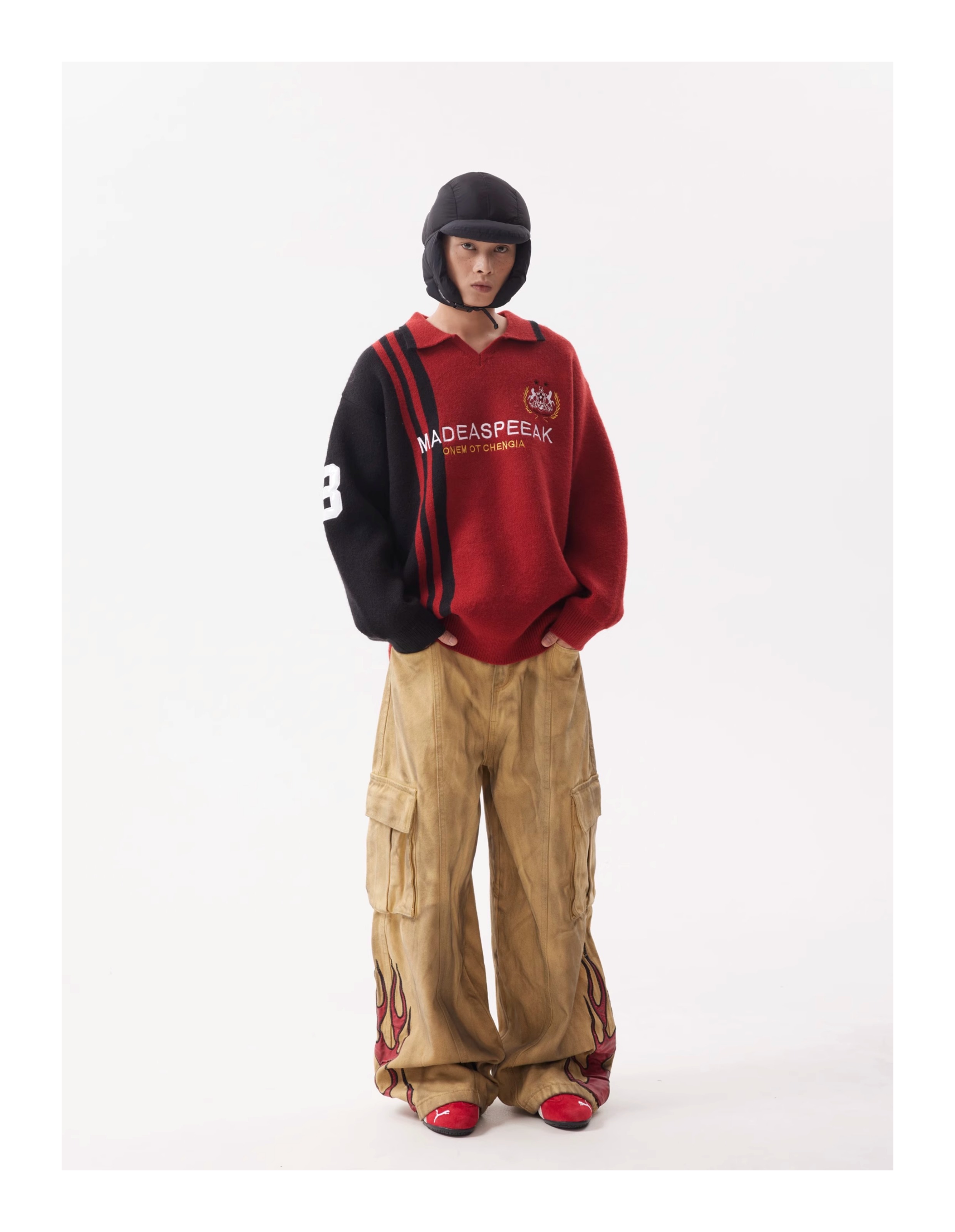 BTSG Leather Flame Embroidery wide-leg dirty jeans