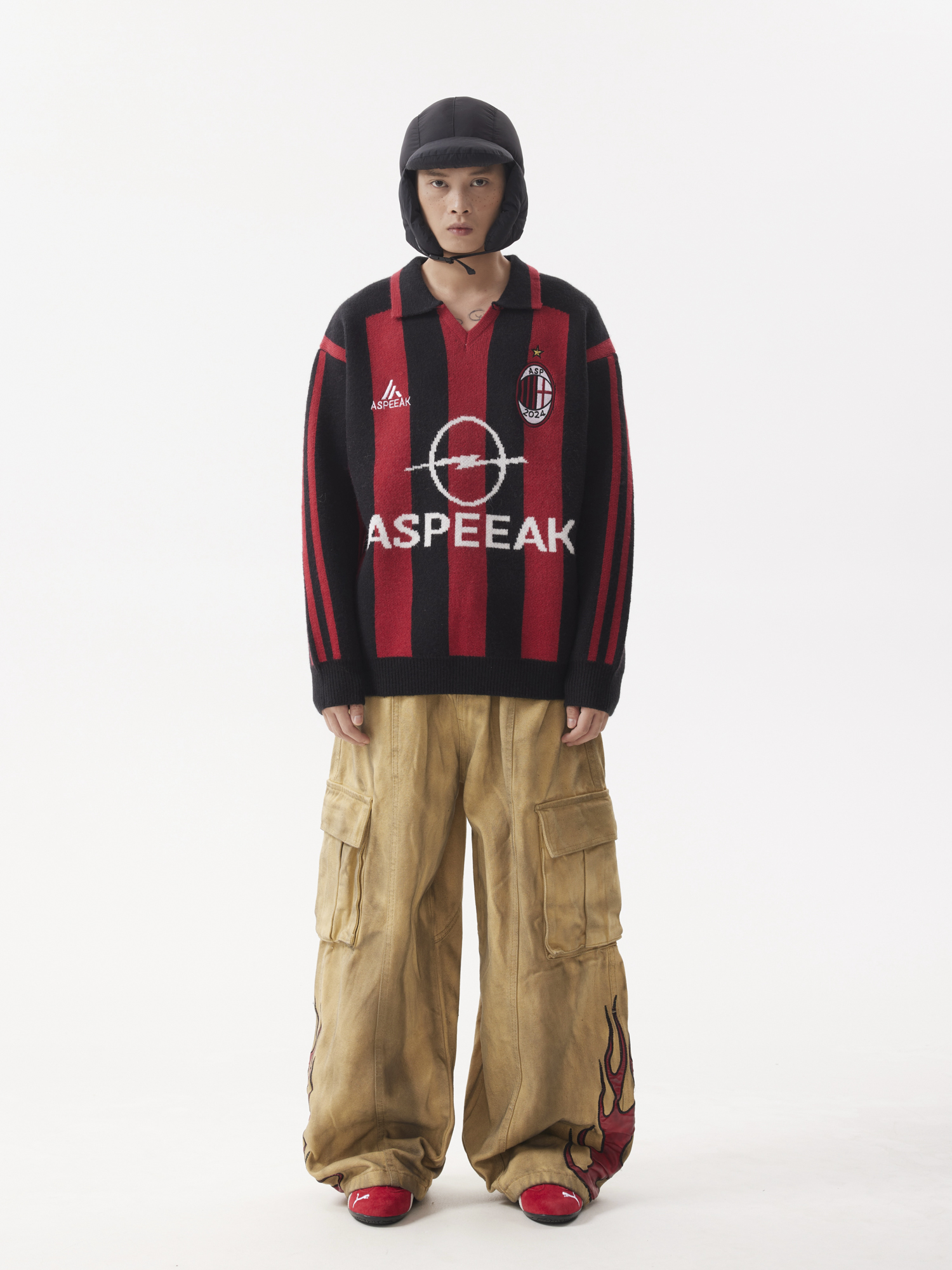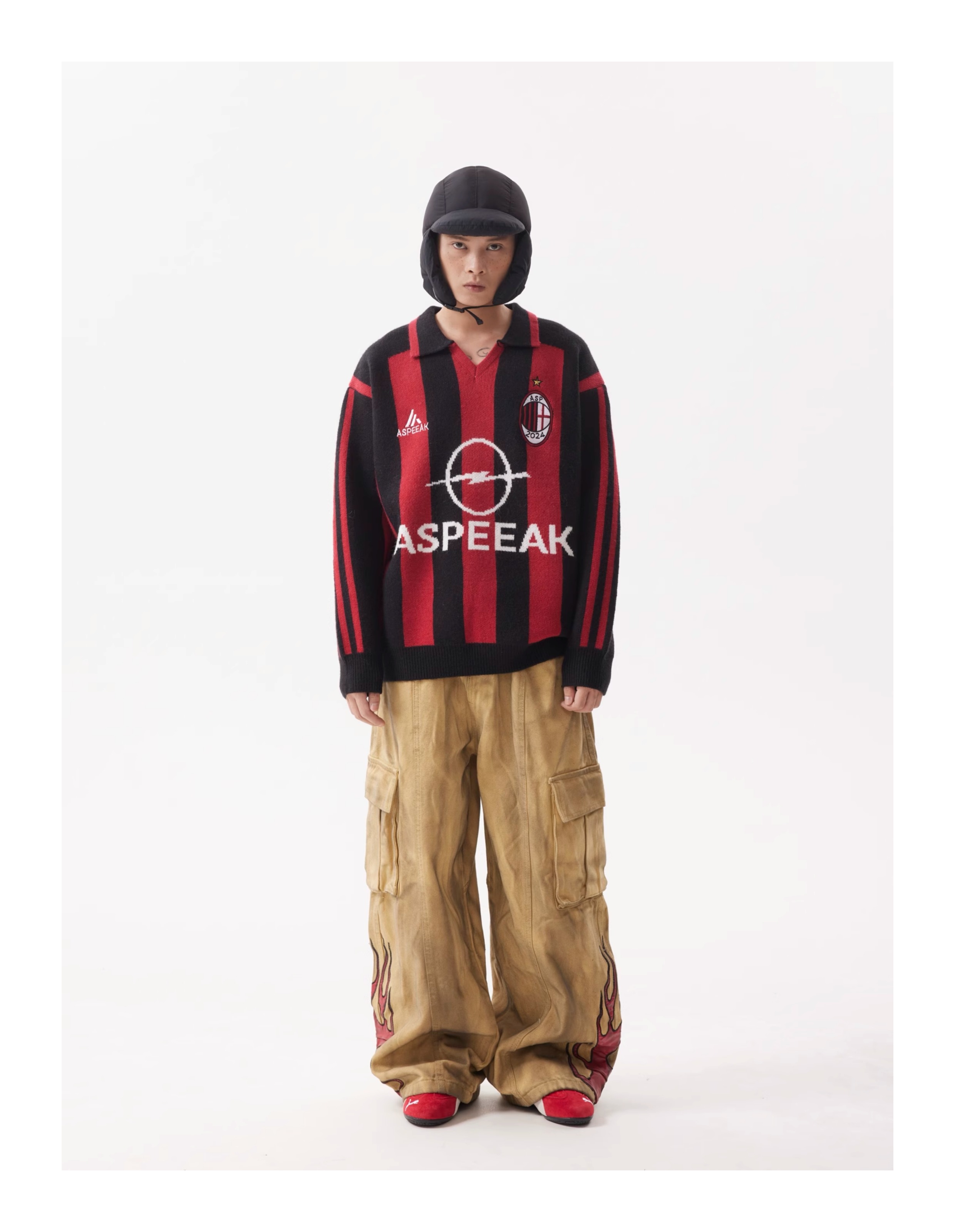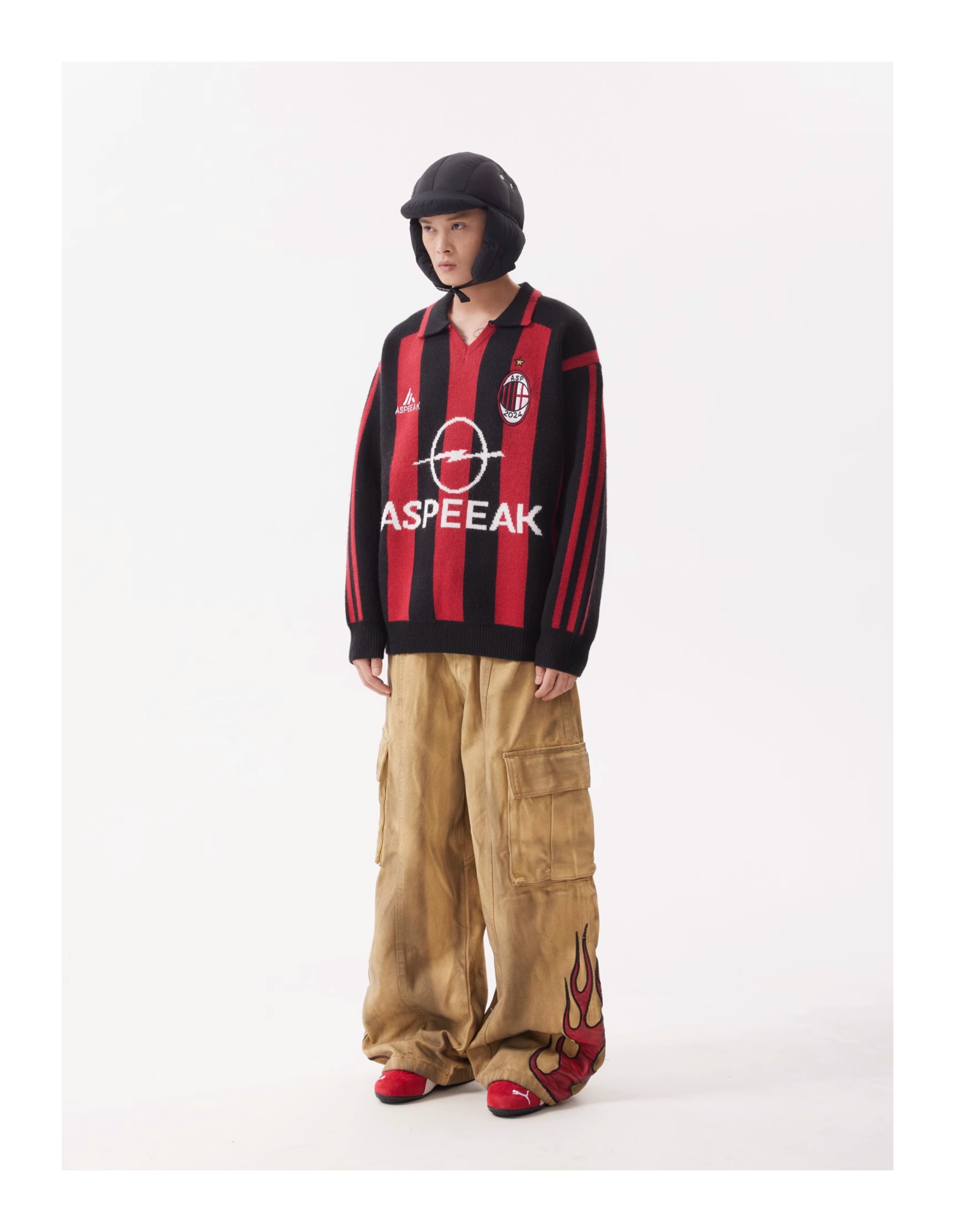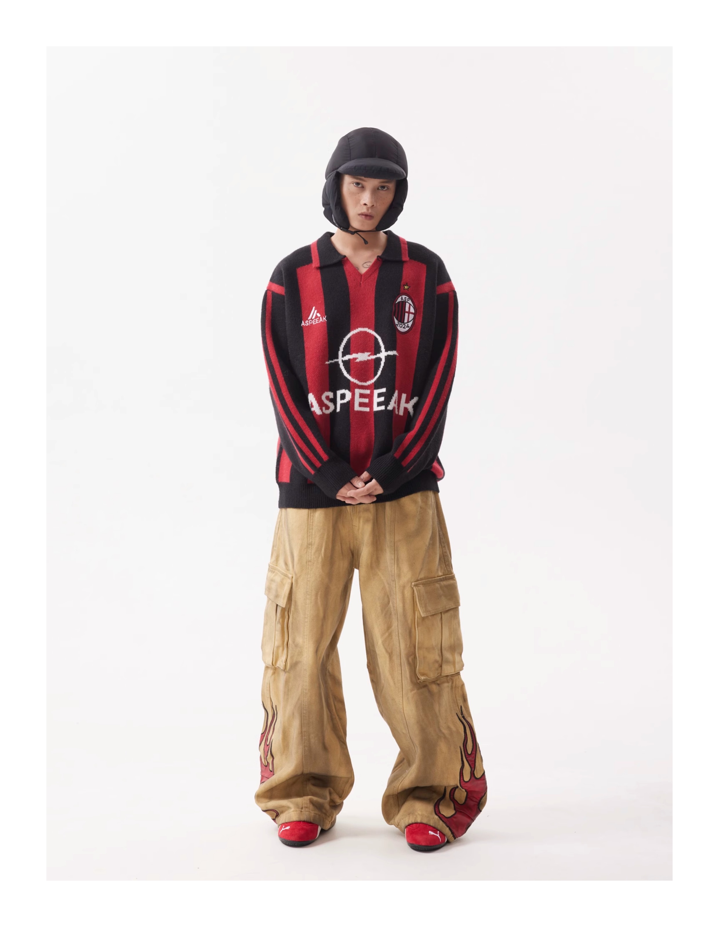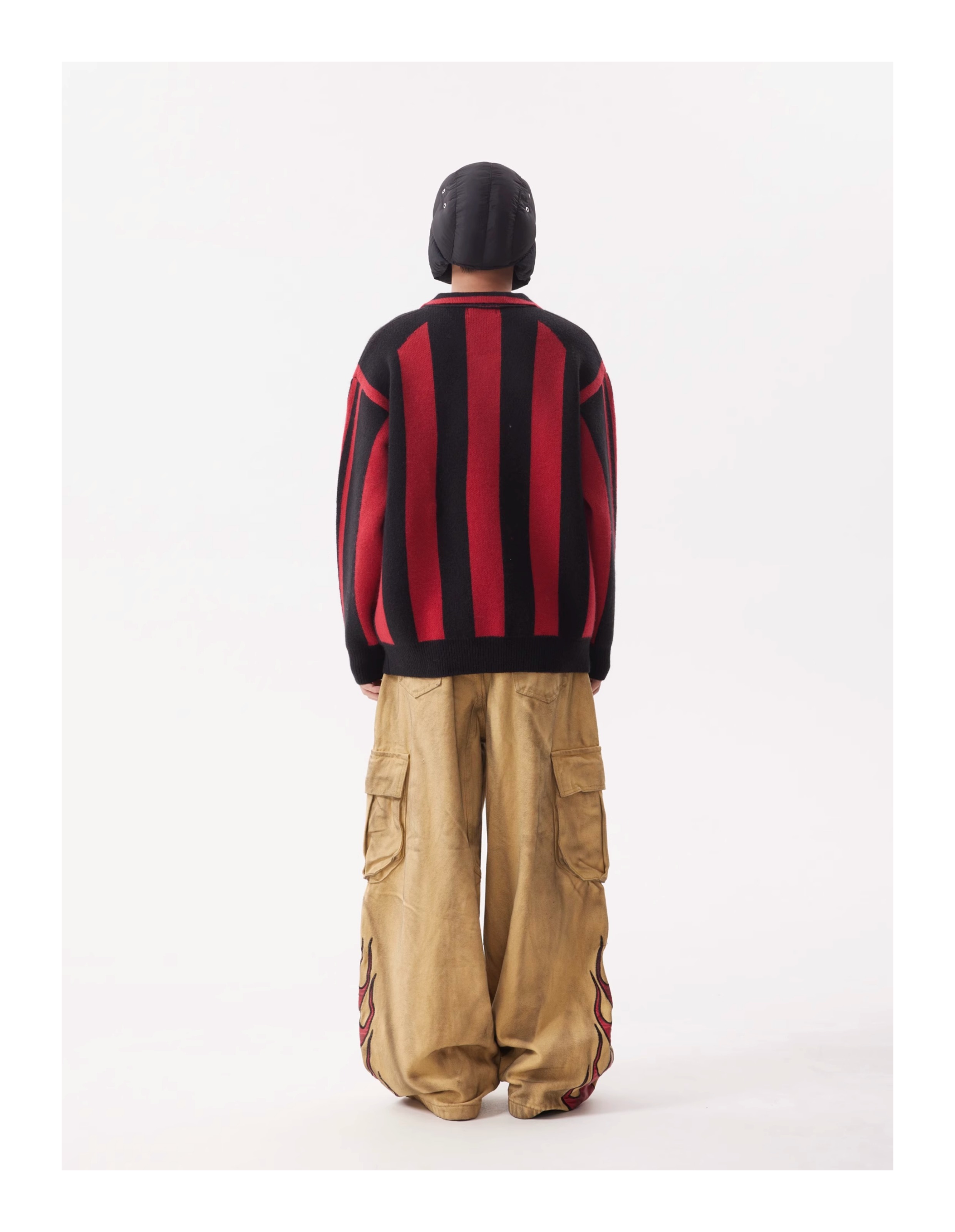 BTSG Leather Flame Embroidery wide-leg dirty jeans